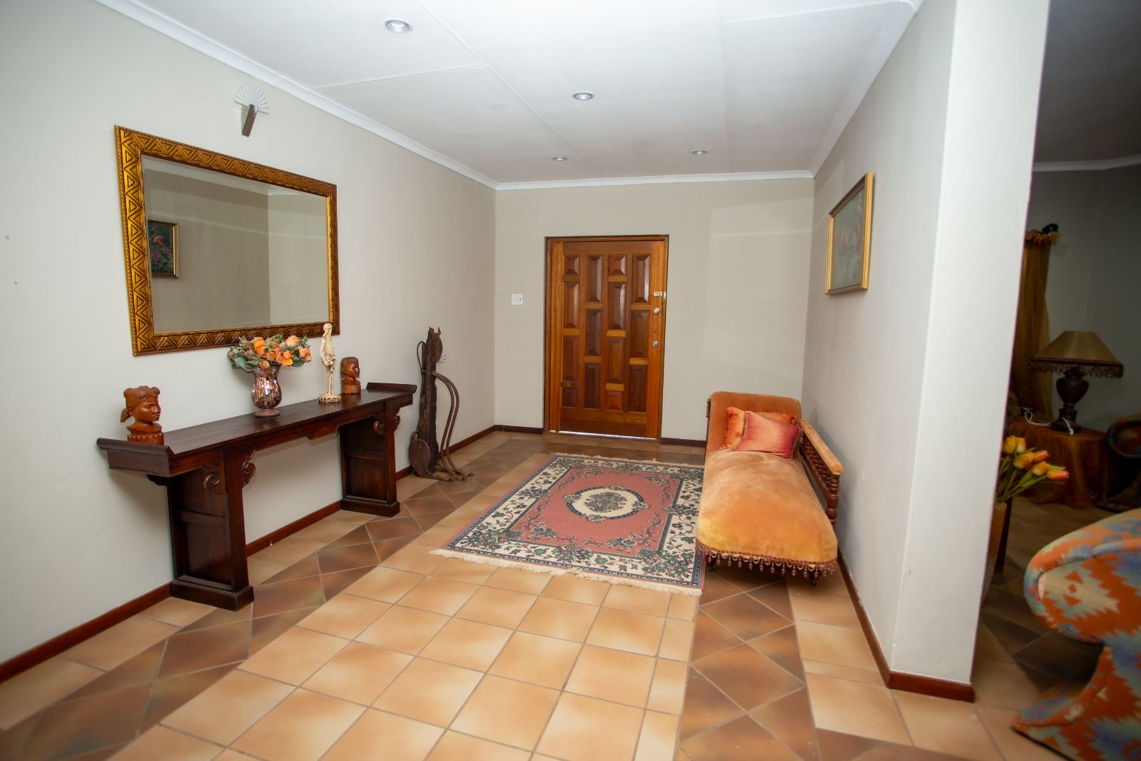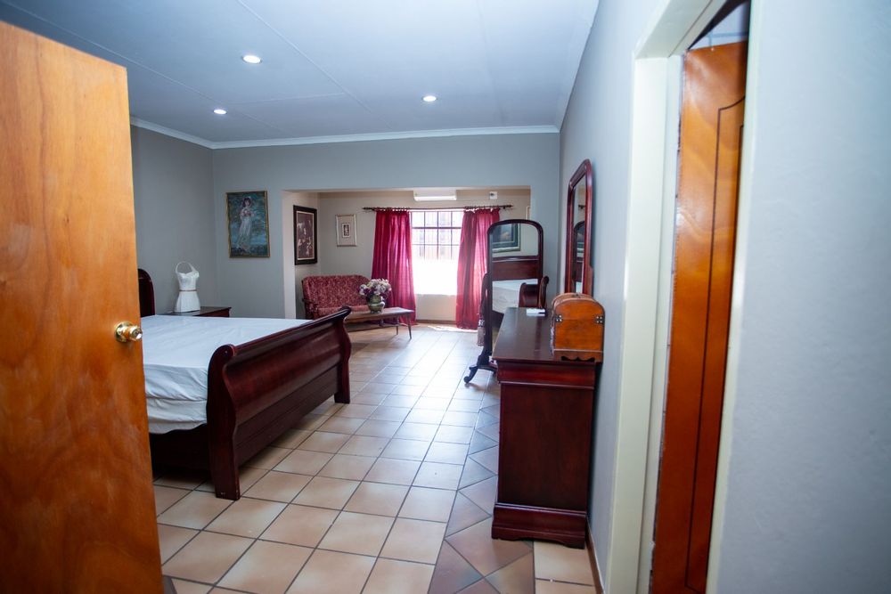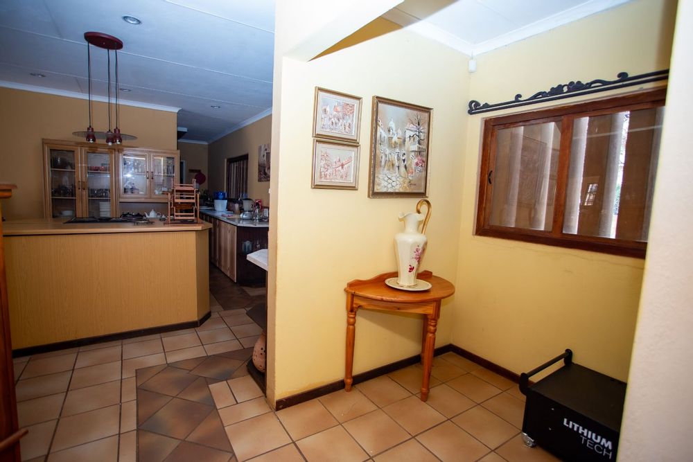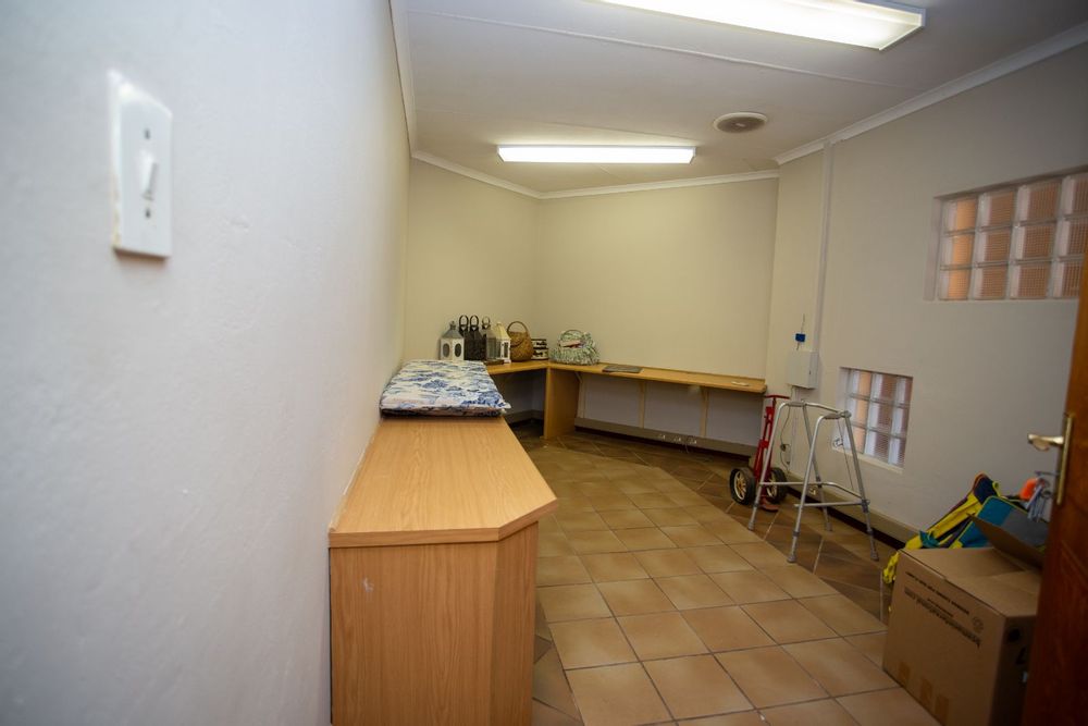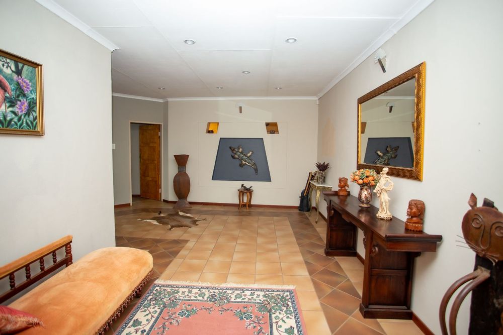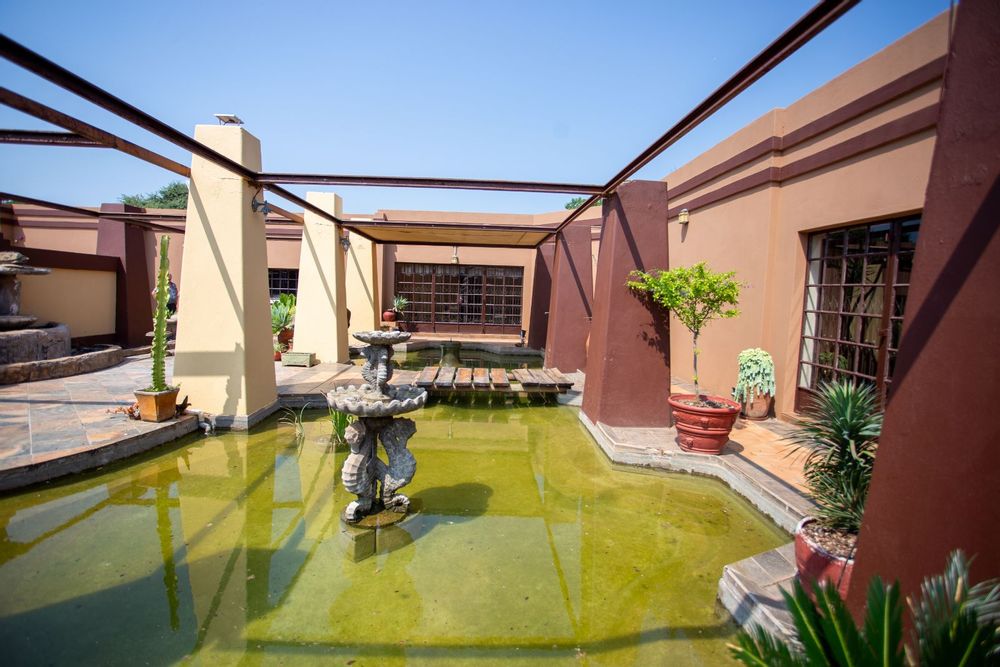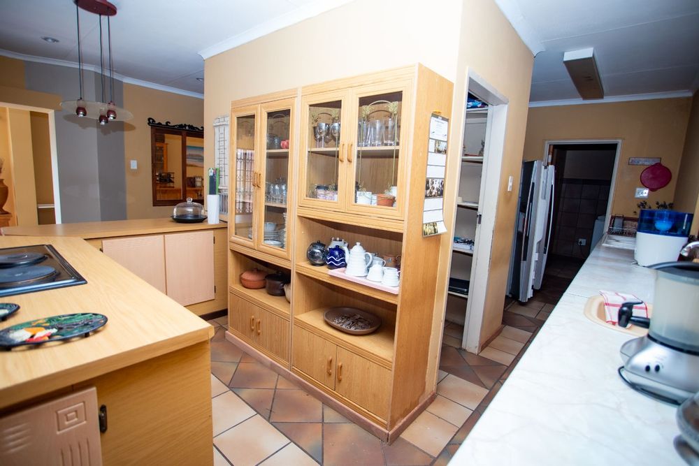 Step inside and be welcomed by a bright and spacious entrance leading to an array of living spaces. The home features a unique open-plan bookshelf area that can double as a cozy reading nook or additional living space, bathed in natural light. Multiple lounges, a TV room, and a charming dining corner create the perfect setting for both relaxation and entertaining. The well-designed kitchen, complete with a pantry, scullery, and laundry, ensures functionality meets style.