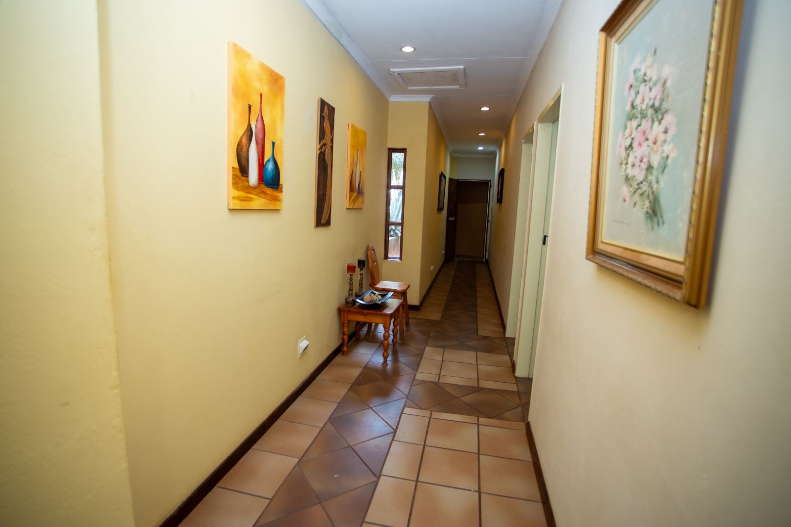 The hallway leads to four spacious bedrooms, each offering a peaceful retreat. The main suite is a private haven, featuring a walk-in closet, an en-suite bathroom, and an exclusive relaxation area. Need extra income? A separate study/office space can easily be converted into a self-contained flat.