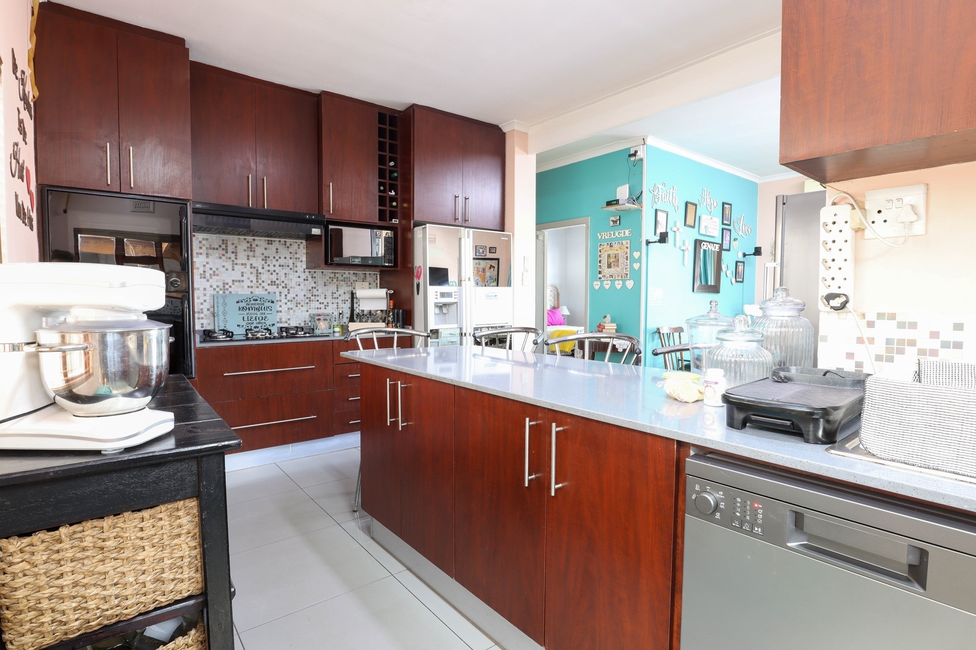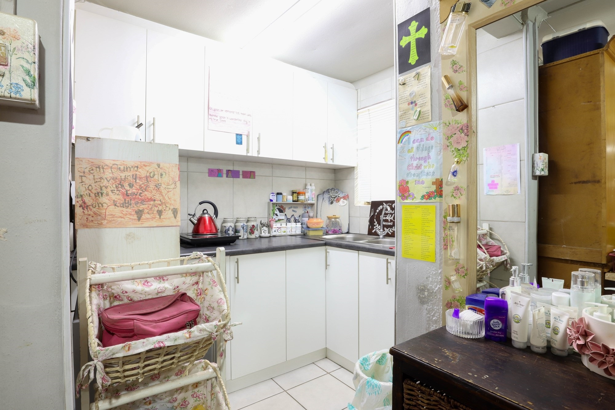 The separate 3-bedroom flat with flexible living spaces has a private entrance and 1-car private garage for added independence. The flatlet is currently operating as a Beauty Salon.
