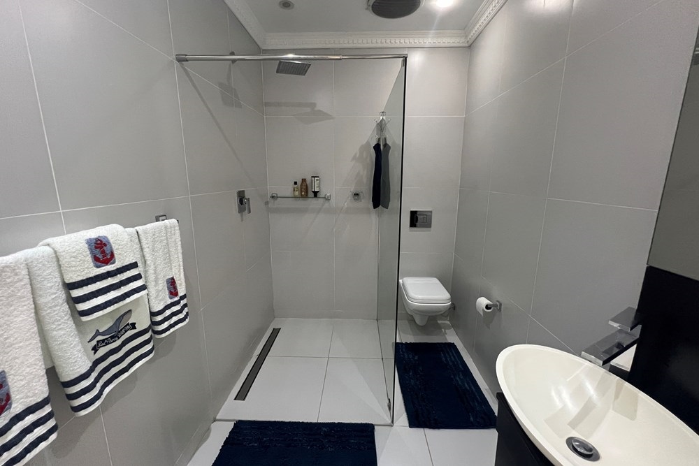 Upstairs, the grand master bedroom boasts an open-concept bathroom and private access to the pool area, providing stunning sea views and a tranquil space to enjoy your morning coffee. Two additional bedrooms share a full family bathroom. In addition, this home offers a separate guest suite with an ensuite bathroom for family or friends wanting to sleep over.