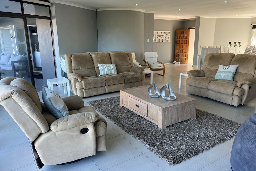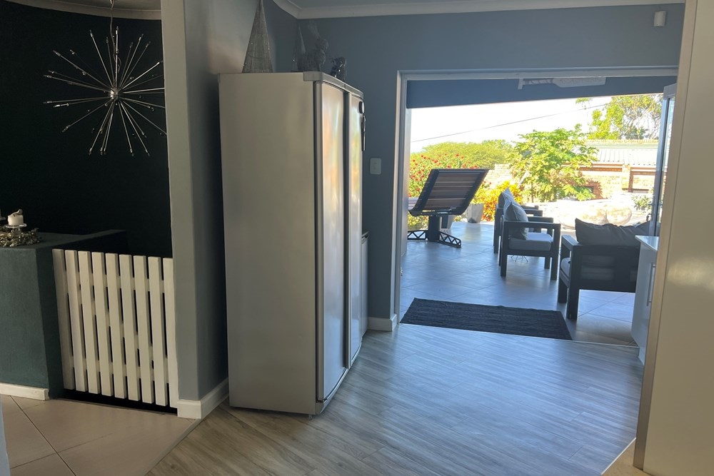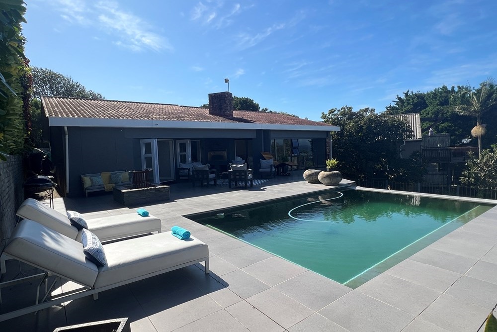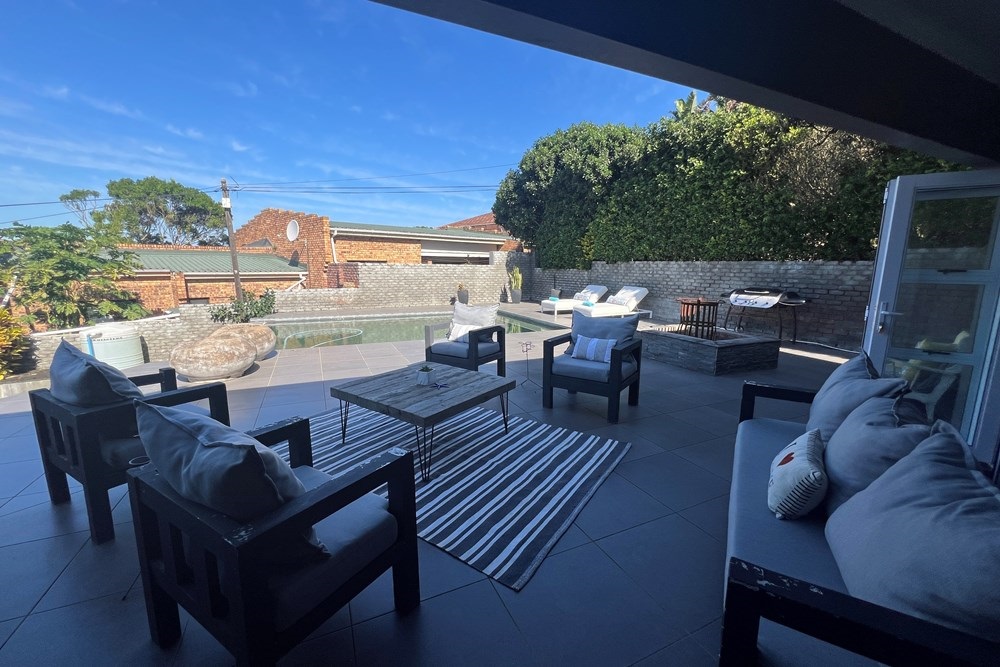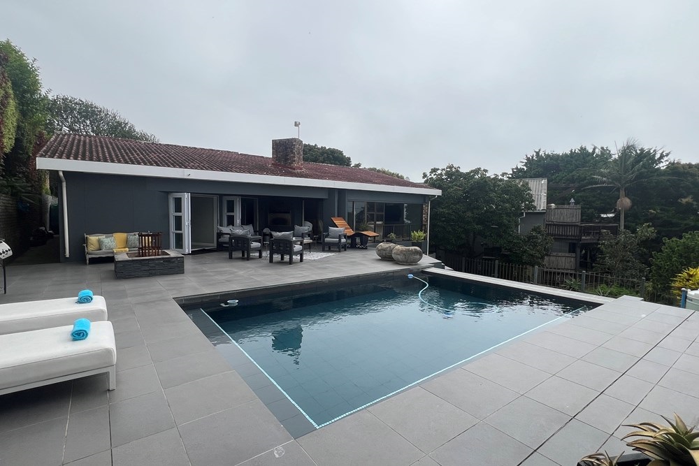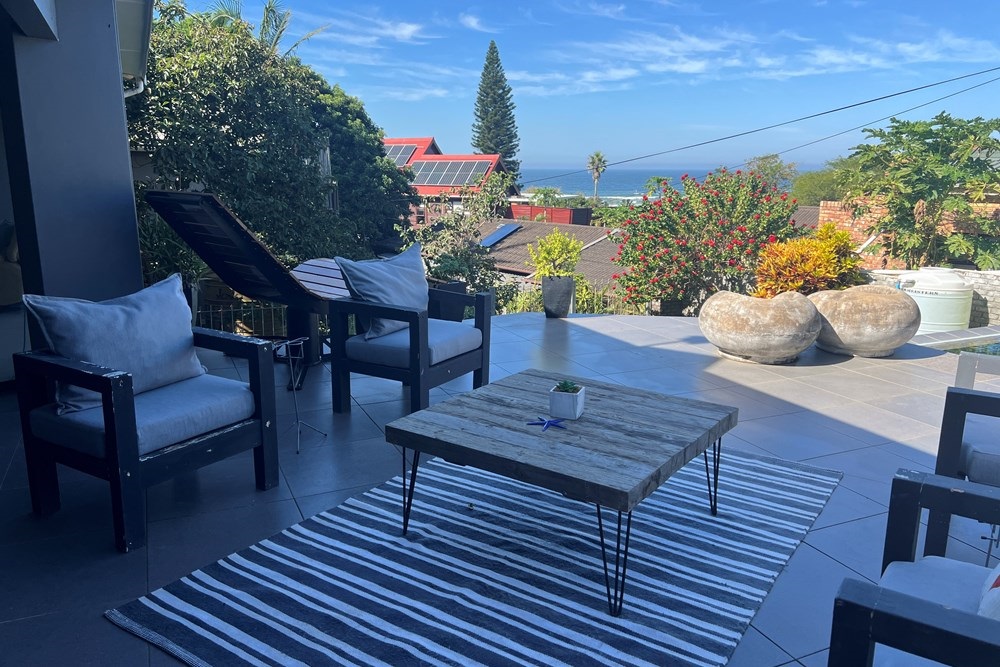 Luxury meets coastal charm in this spacious residence, offering breathtaking ocean views and a short walk to the sandy shores. The gourmet kitchen is a chef`s dream, leading seamlessly onto a pool deck with a sparkling pool and built-in braai – the ultimate entertainment zone.