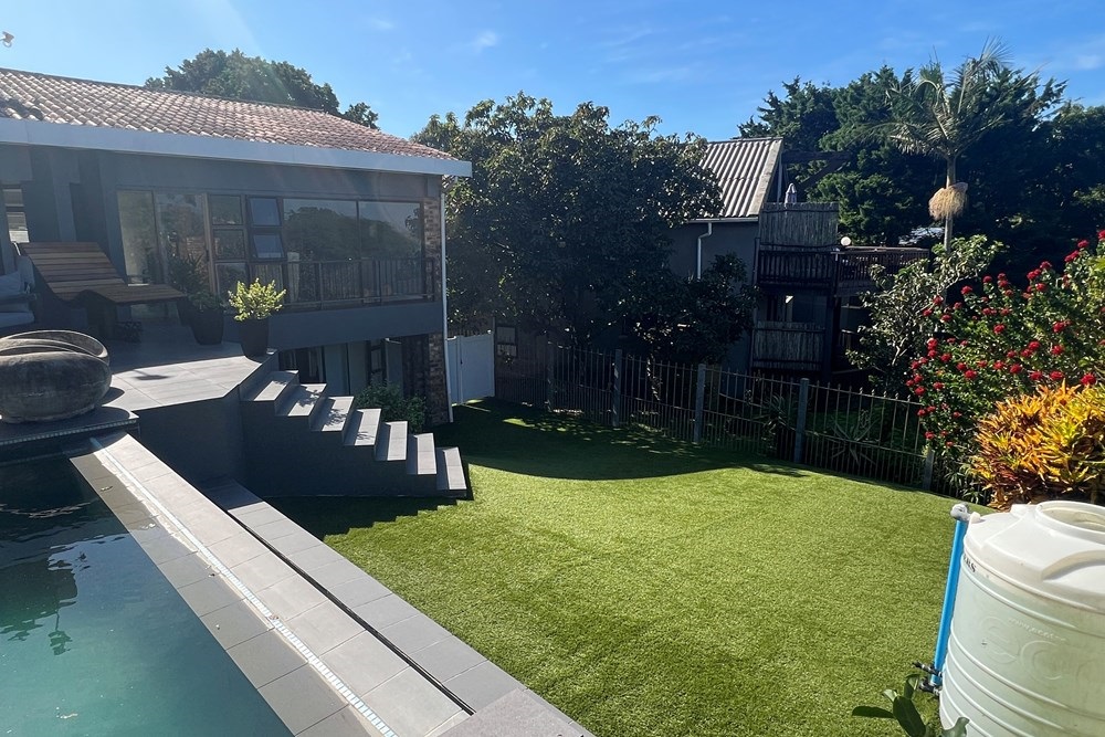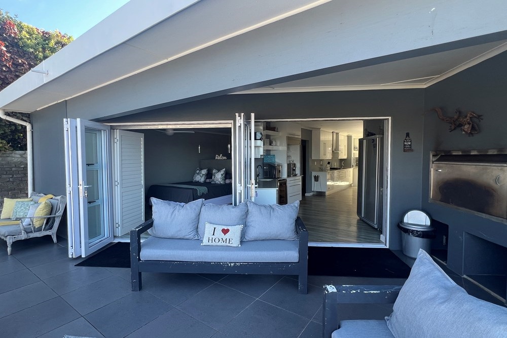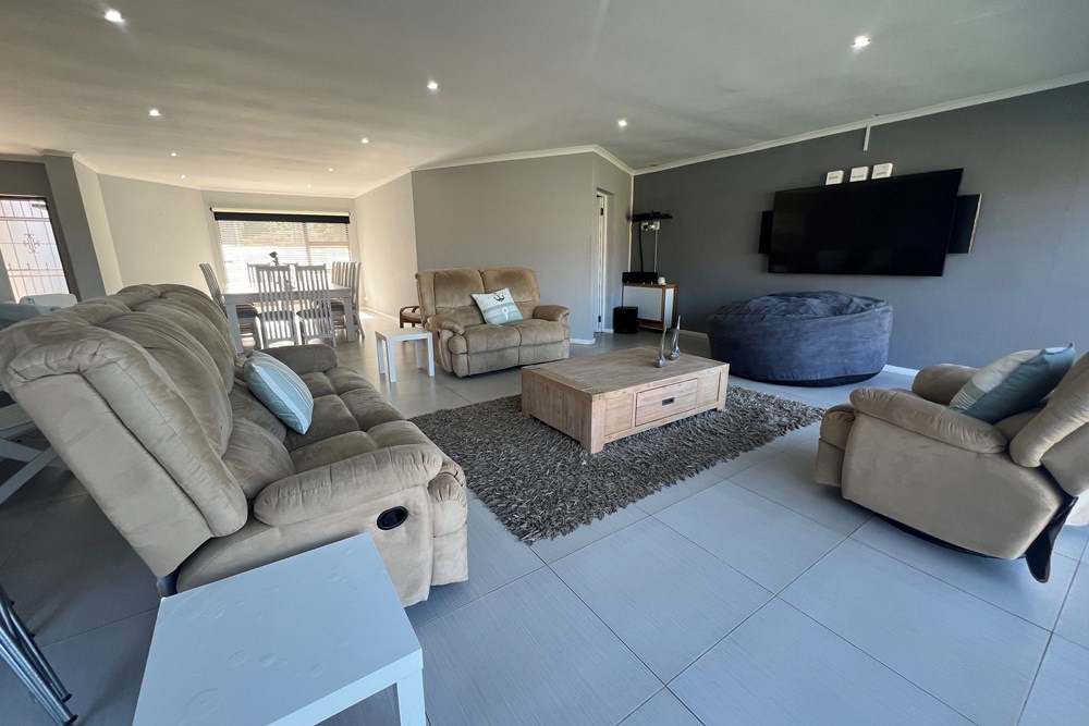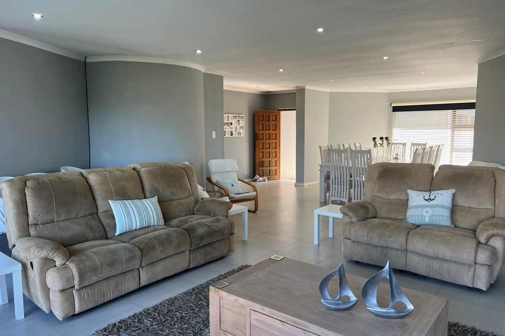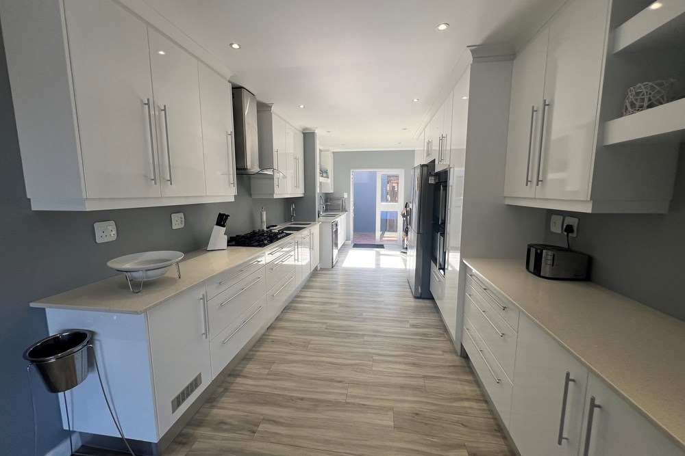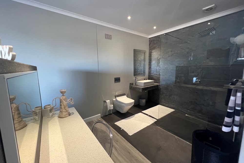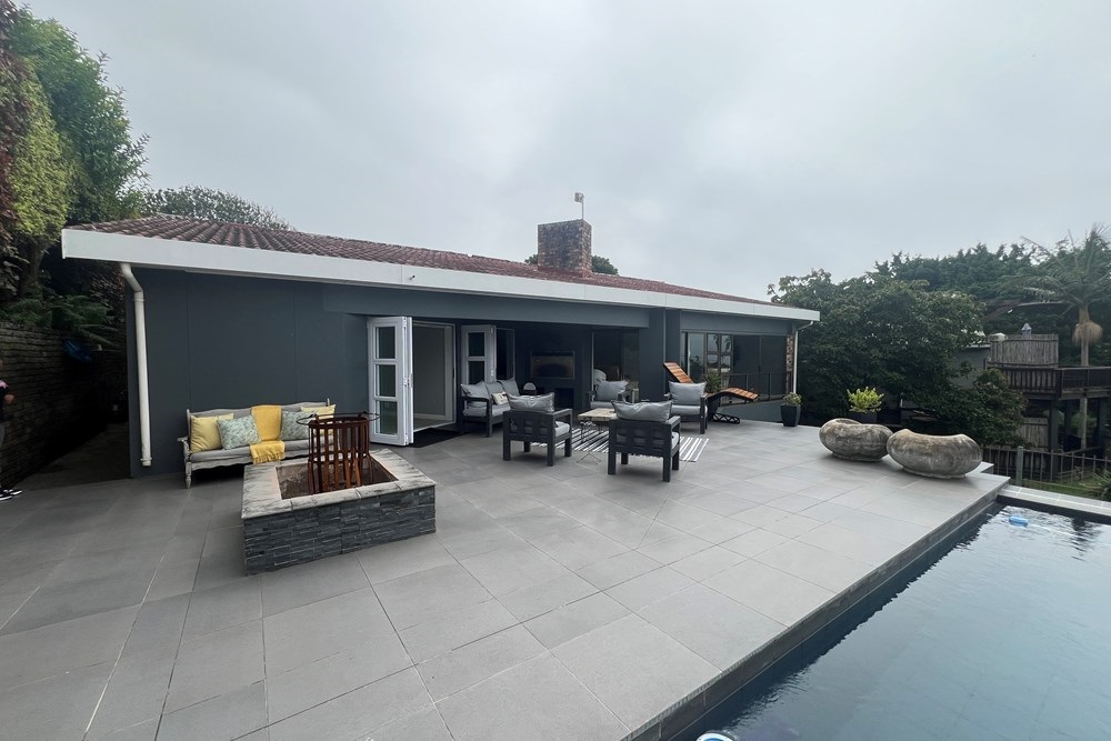 Luxury meets coastal charm in this spacious residence, offering breathtaking ocean views and a short walk to the sandy shores. The gourmet kitchen is a chef`s dream, leading seamlessly onto a pool deck with a sparkling pool and built-in braai – the ultimate entertainment zone.