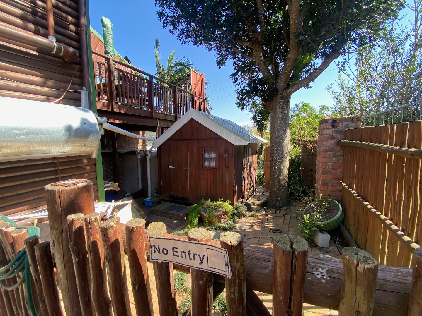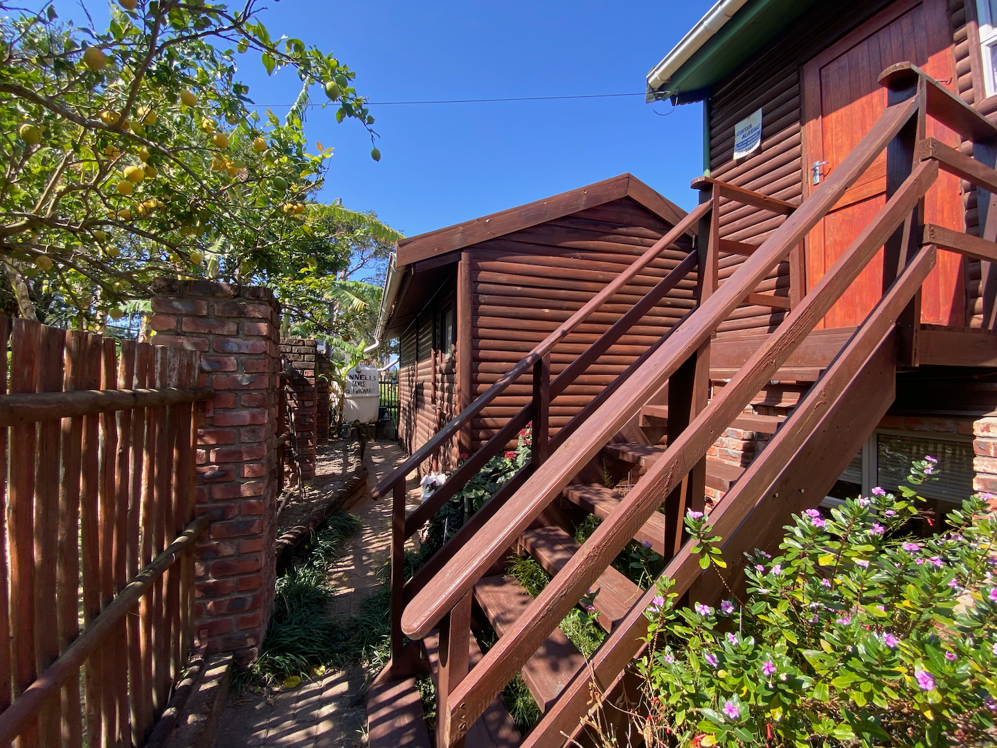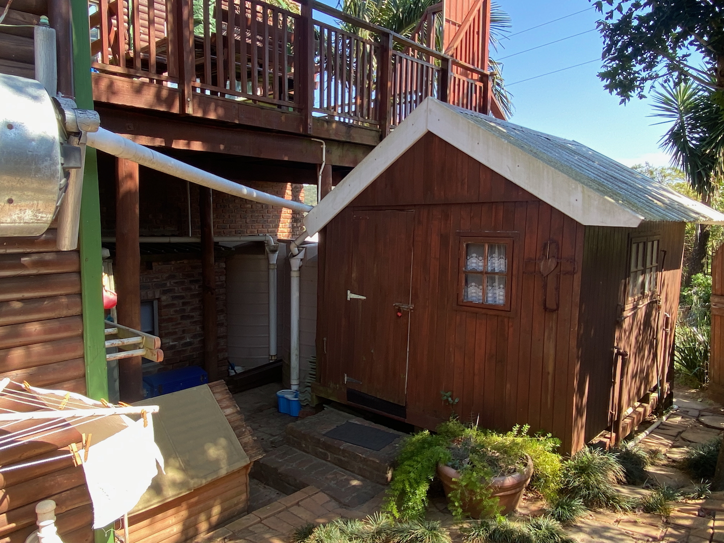 Downstairs, a separate entrance leads to a double carport for your vehicles and a garden for your furry friends. A Wendy house serves as a laundry to support your business operations.