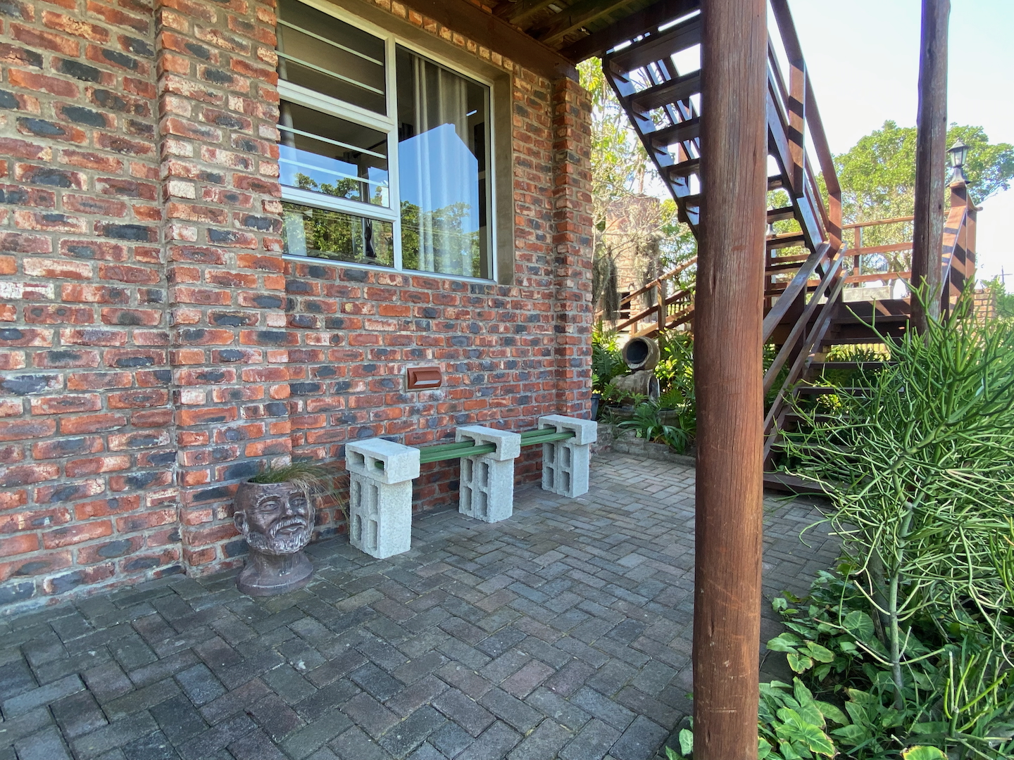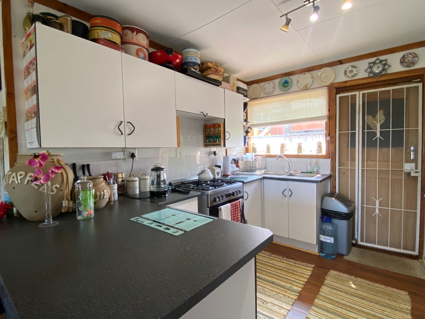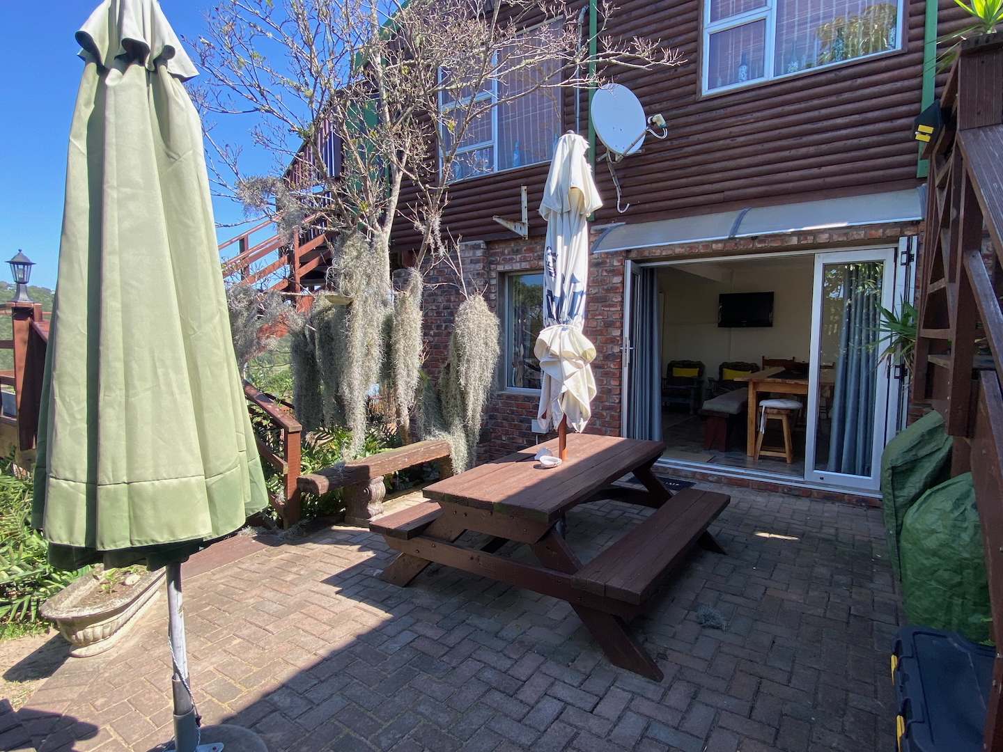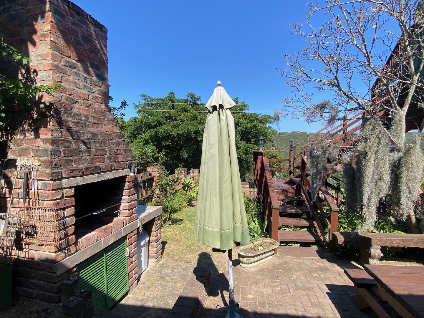 As you enter through two motorized gates, you'll find gated parking space for up to four vehicles. The main unit features a well-appointed kitchen and a scullery equipped with a washer, dryer, and dishwasher. The open-plan design seamlessly connects the dining and lounge areas, leading to a charming paved area complete outdoor table and a built-in braai. This main unit includes a comforable bedroom and a separate bathroom with a shower over the bathtub.