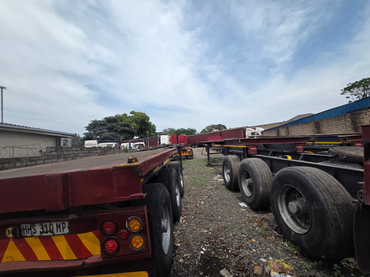 Ample Parking: Large yard with abundant space for trucks and vehicles