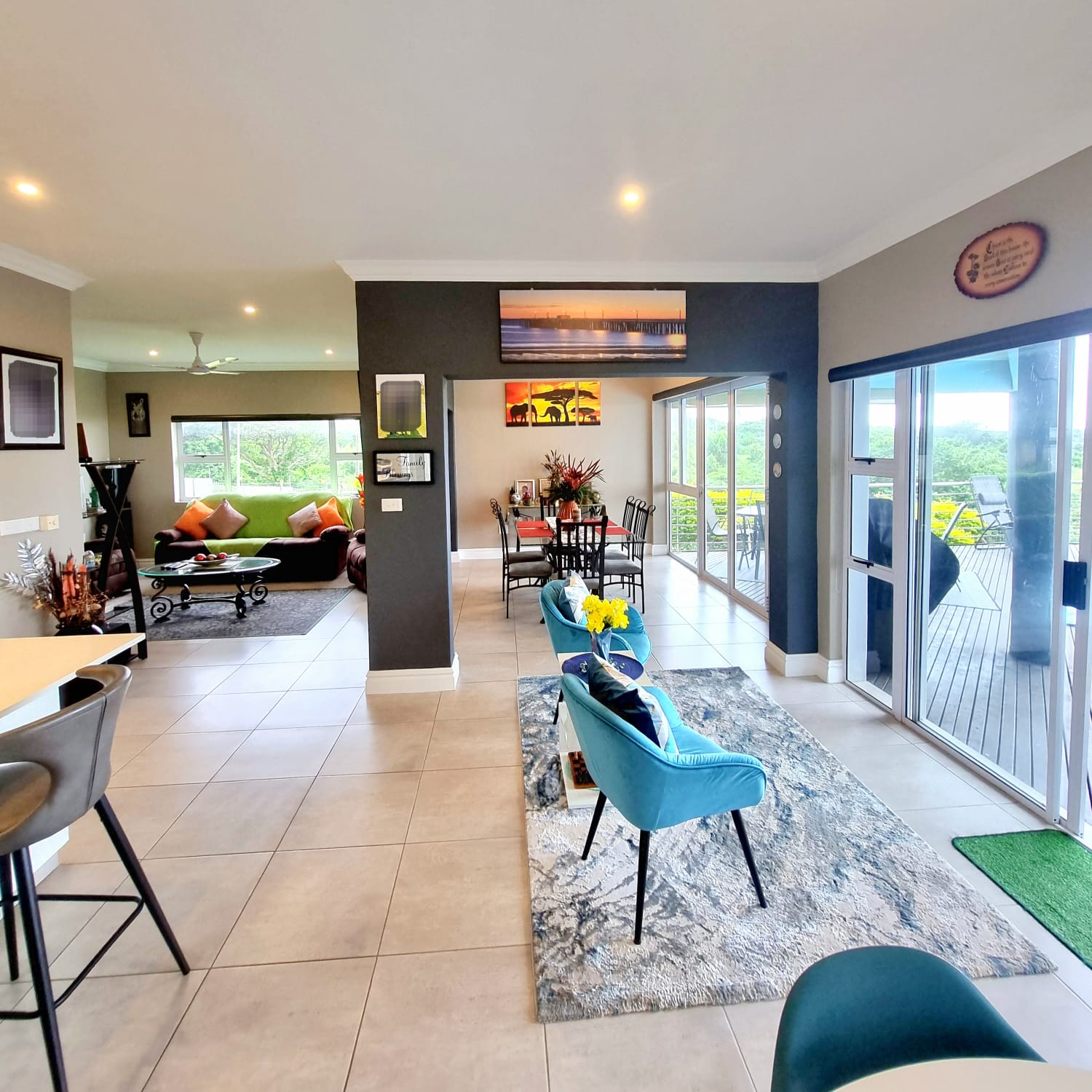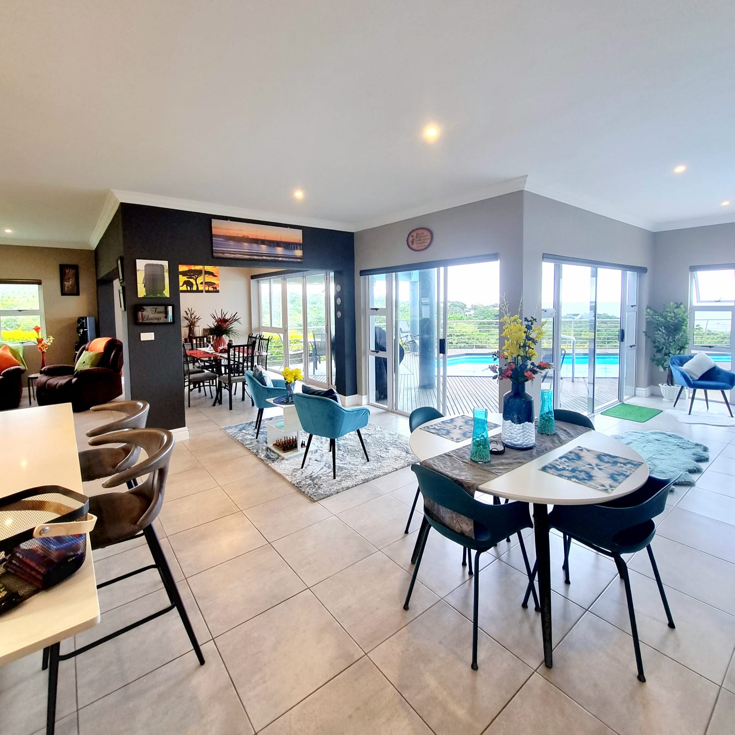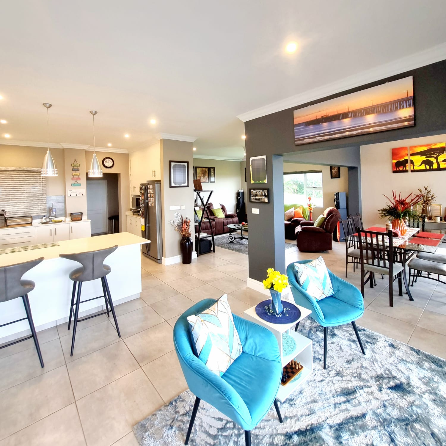 Upon entering, you're welcomed into a grand foyer that sets the tone for the elegance that permeates every corner of this home. The expansive open-plan layout seamlessly integrates the kitchen, scullery, dining room, and TV lounge, creating an inviting space perfect for both relaxation and entertainment.