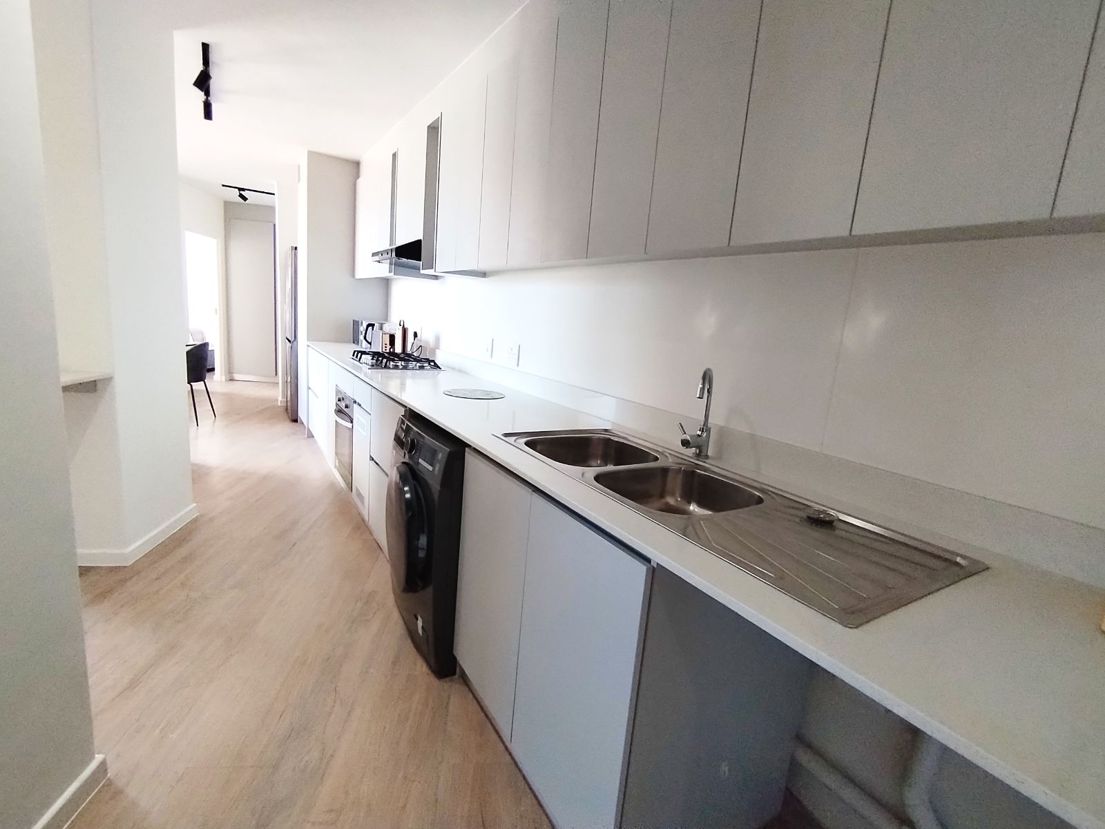 2 bedrooms with built in cupboards, a beautiful kitchen and sleek look.