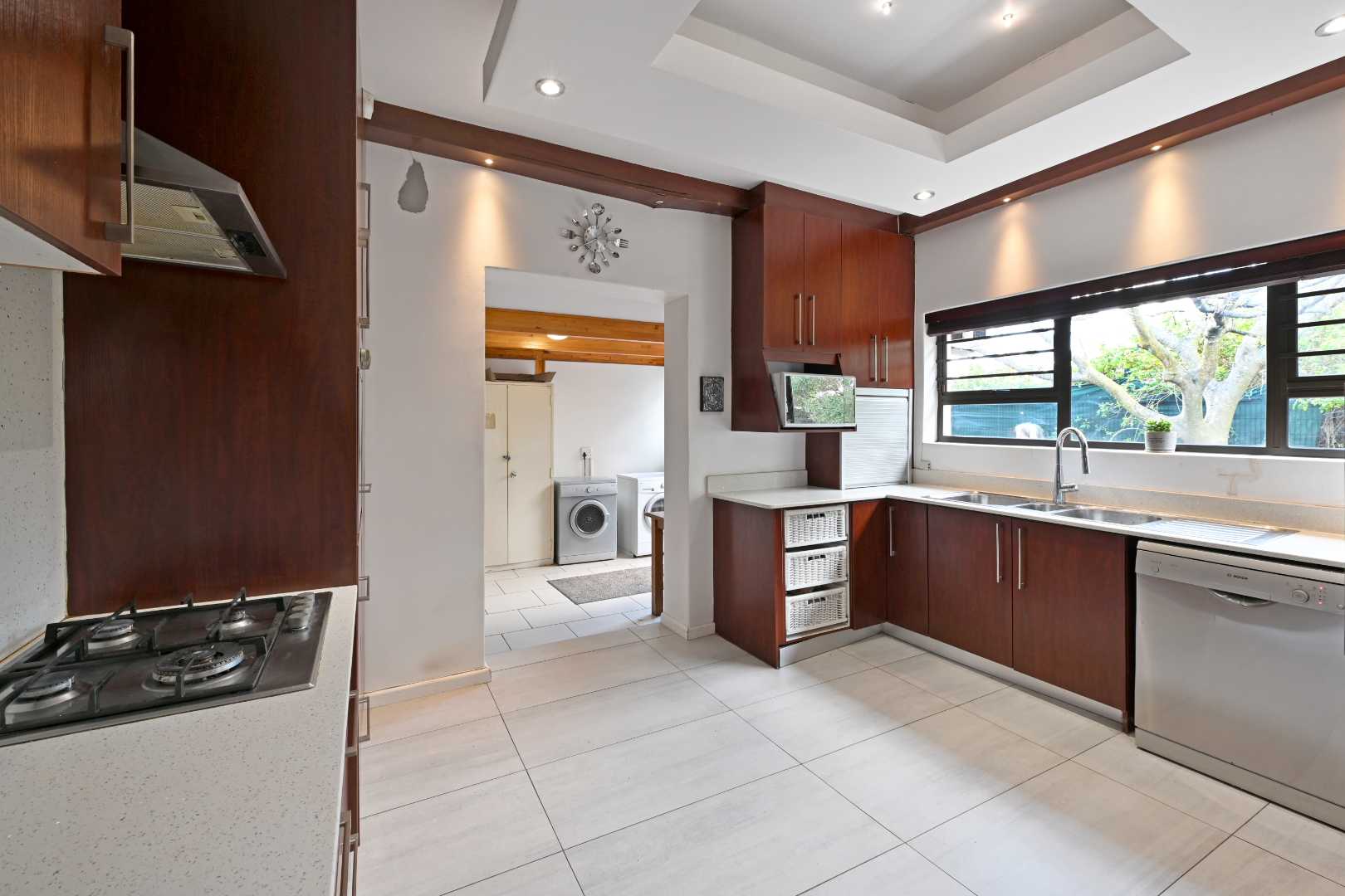 The spacious master bedroom offers a peaceful escape, while the kitchen is a cook's dream, featuring a gas stove, eye-level oven, extractor fan, plenty of storage, and plumbing for all your appliances. A separate laundry area keeps things tidy, with space for even more convenience.
