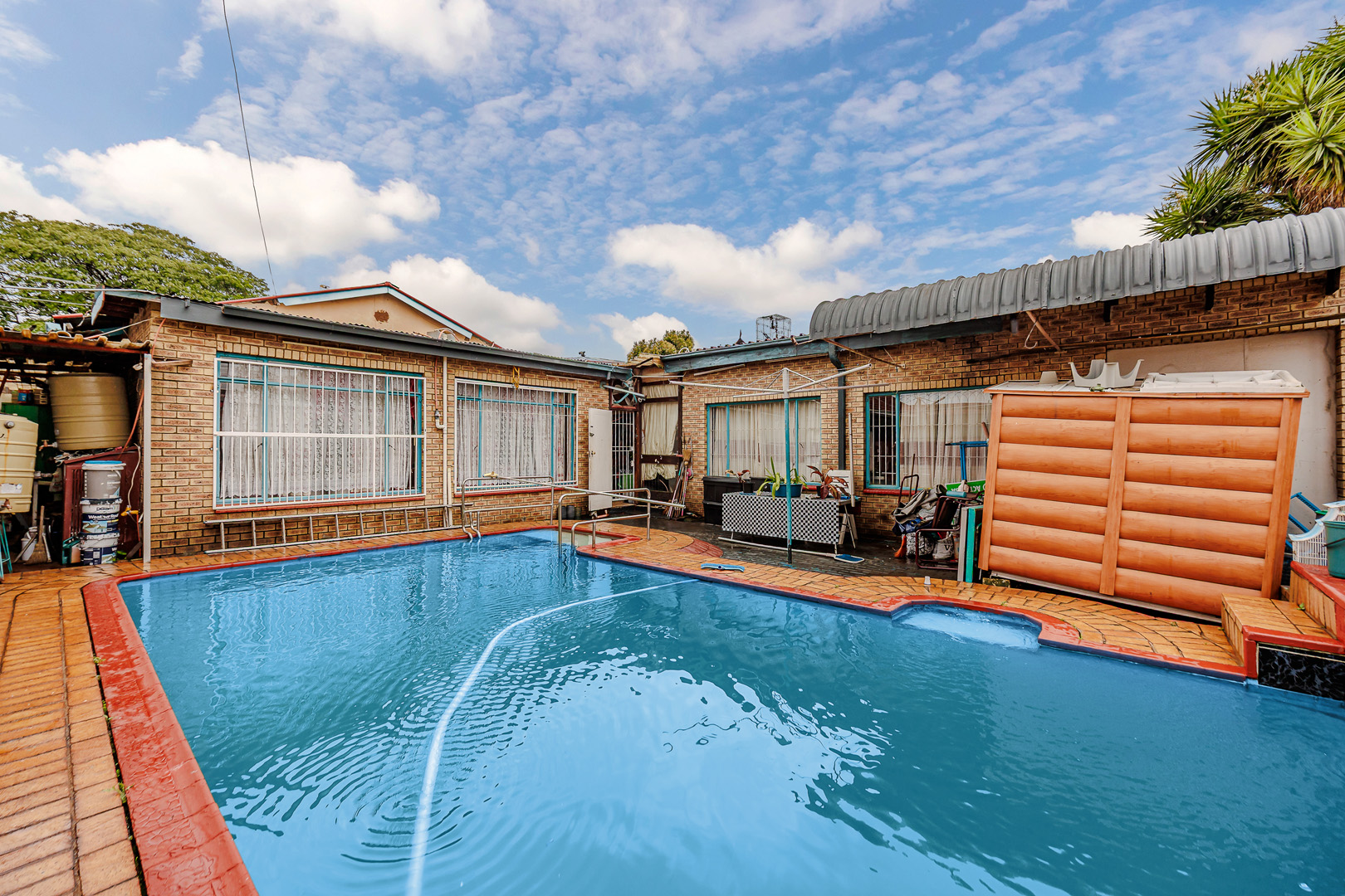 The property features three generously sized bedrooms and a secure garage for your convenience. The well-maintained swimming pool provides an ideal setting for both relaxation and entertaining guests. This home is perfect for families or investors looking for great value.