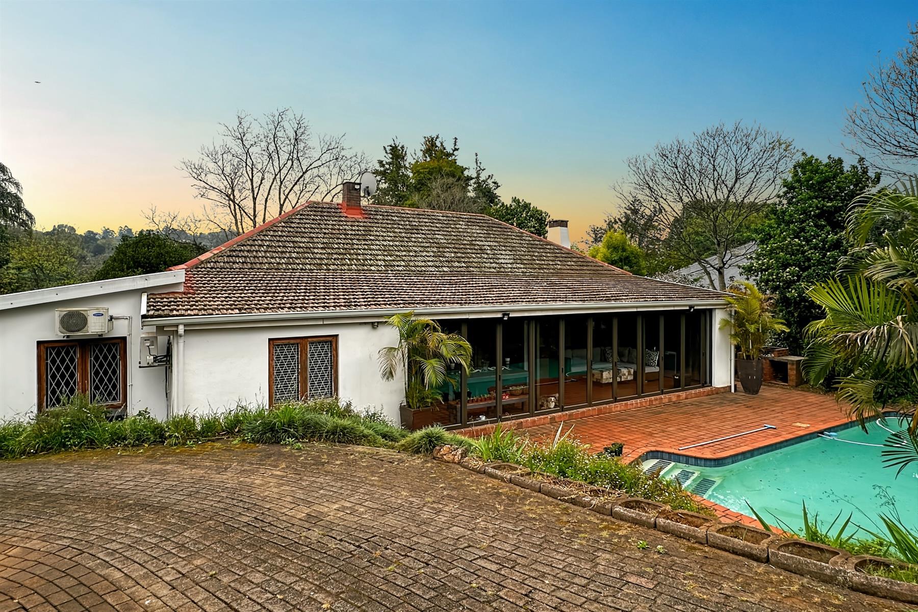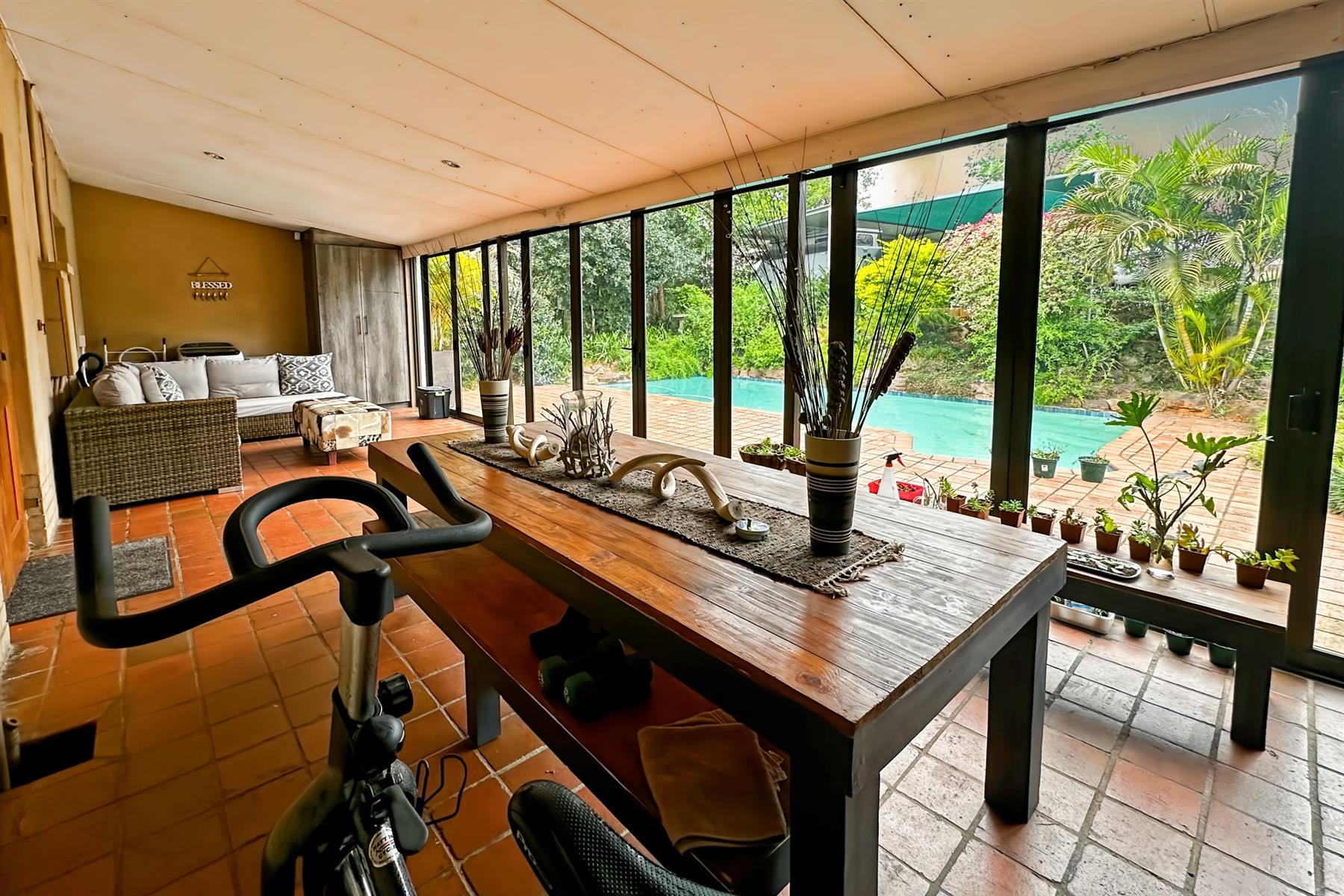 Enjoy two entertainment areas — one with elevated views and the other opening through stackable doors to a sparkling pool, perfect for family gatherings and summer braais.