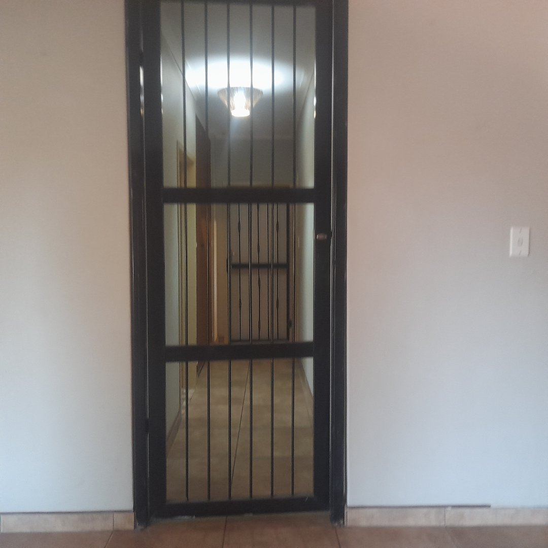 Security is a priority here, with burglar bars, two safety doors, and fencing securing the property.
