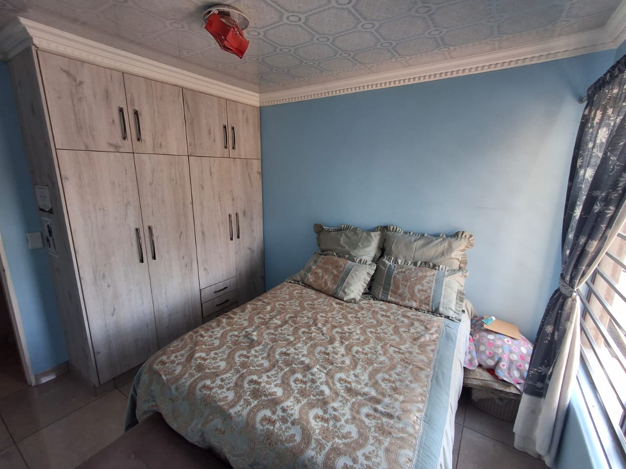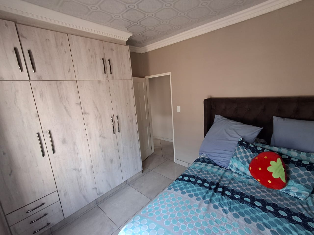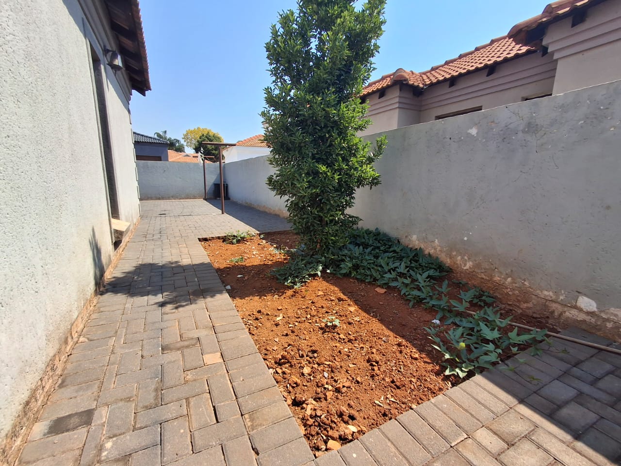 The home includes a modern kitchen fitted with a gas stove, while the solar geyser ensures energy efficiency. The garden is equipped with an irrigation system, making upkeep effortless. A small, neat garden and a paved area in front of the house complete this attractive and practical property.