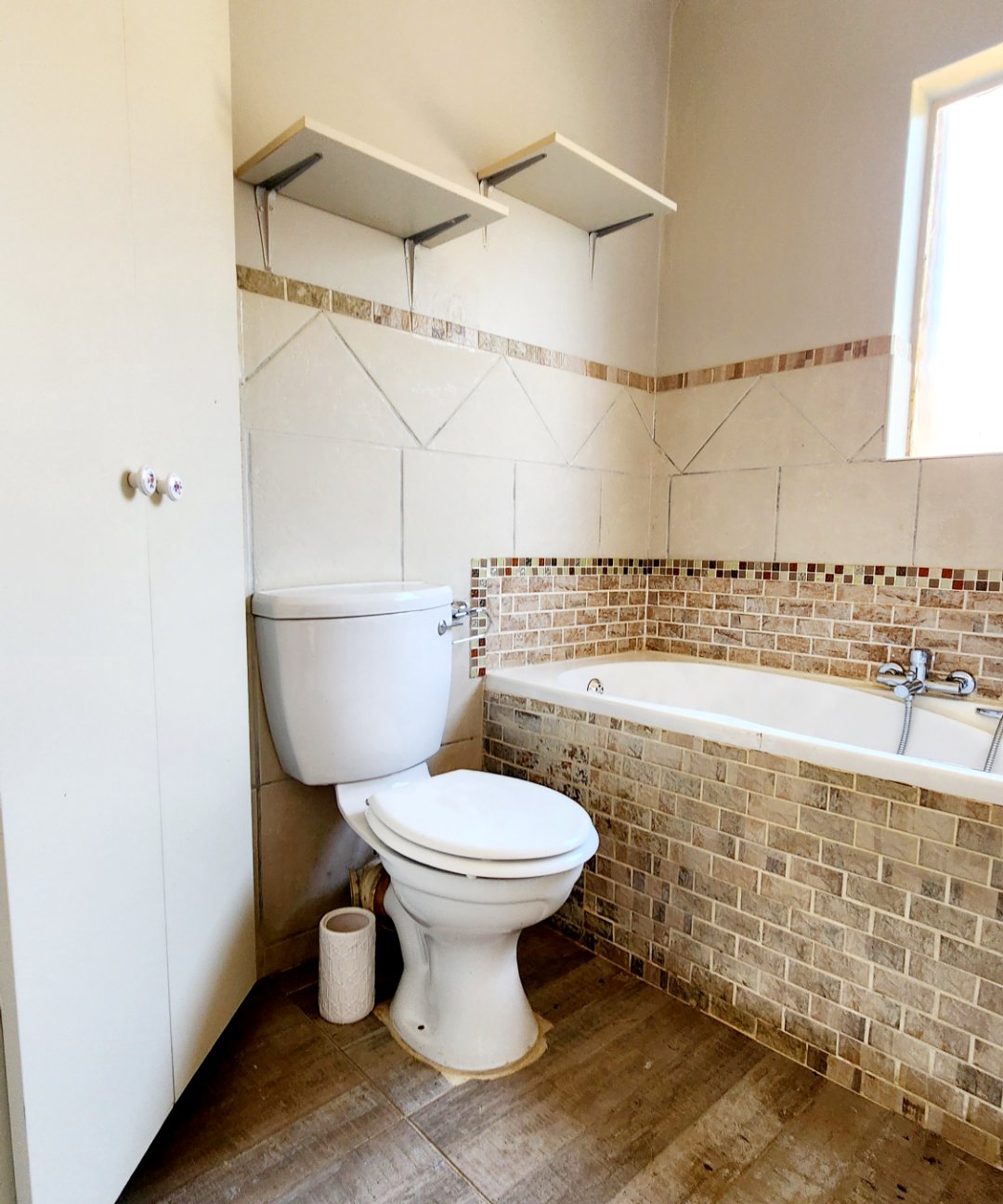 The main en-suite bathroom includes a shower, basin, and toilet. The second bathroom features a bath, basin, and toilet.