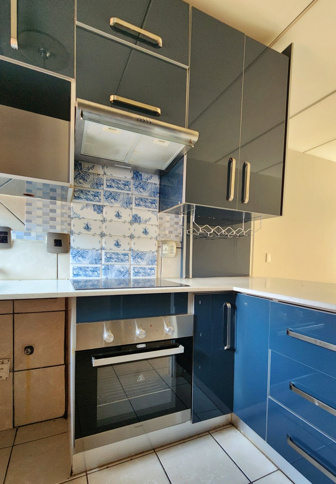 The kitchen offers ample cupboard space and provision for two appliances, making it both functional and stylish.