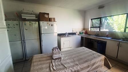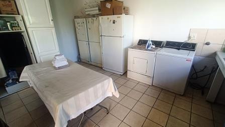 The expansive kitchen is equipped with a separate scullery and a smaller area for preparing functions, ensuring seamless hosting experiences. Additional amenities include a spacious laundry room for added convenience.
