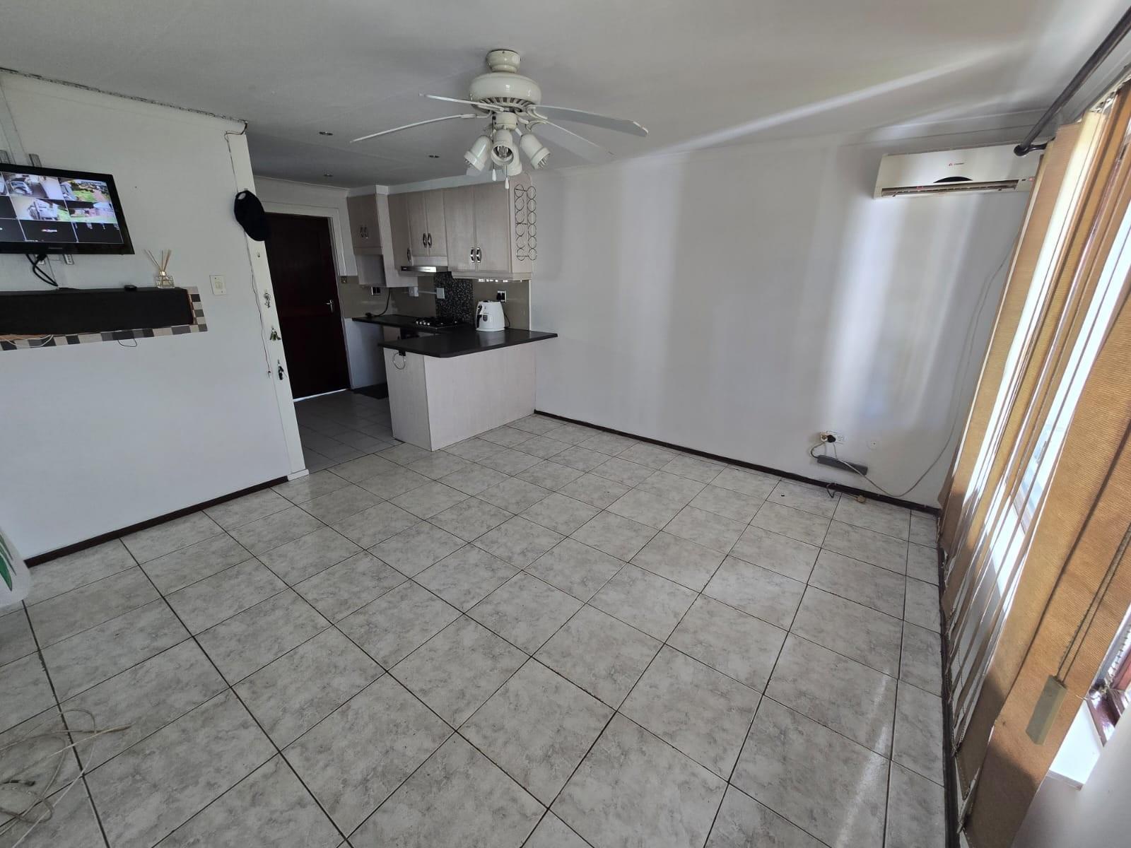 The comfortable lounge flows into a functional kitchen equipped with a gas hob and extractor fan, making daily living both efficient and enjoyable. Tiled floors throughout provide durability and easy upkeep.
