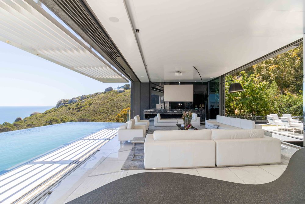 Outdoor living is a defining element of the property. Multiple terraces and viewing points allow for uninterrupted sunsets and a strong connection to Clifton’s dramatic coastline. The elevated position provides rare privacy while keeping every space open to the ocean and surrounding landscape.