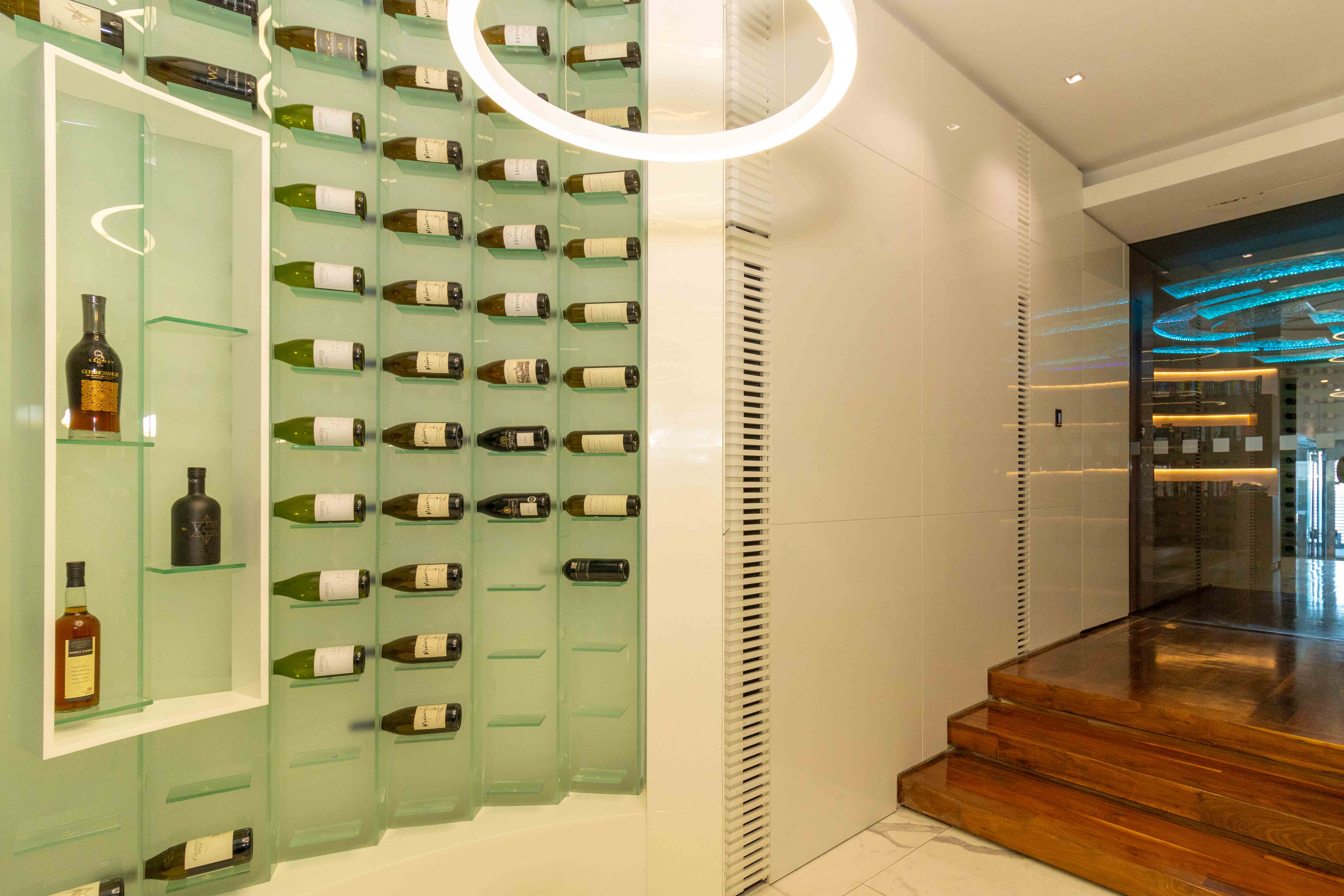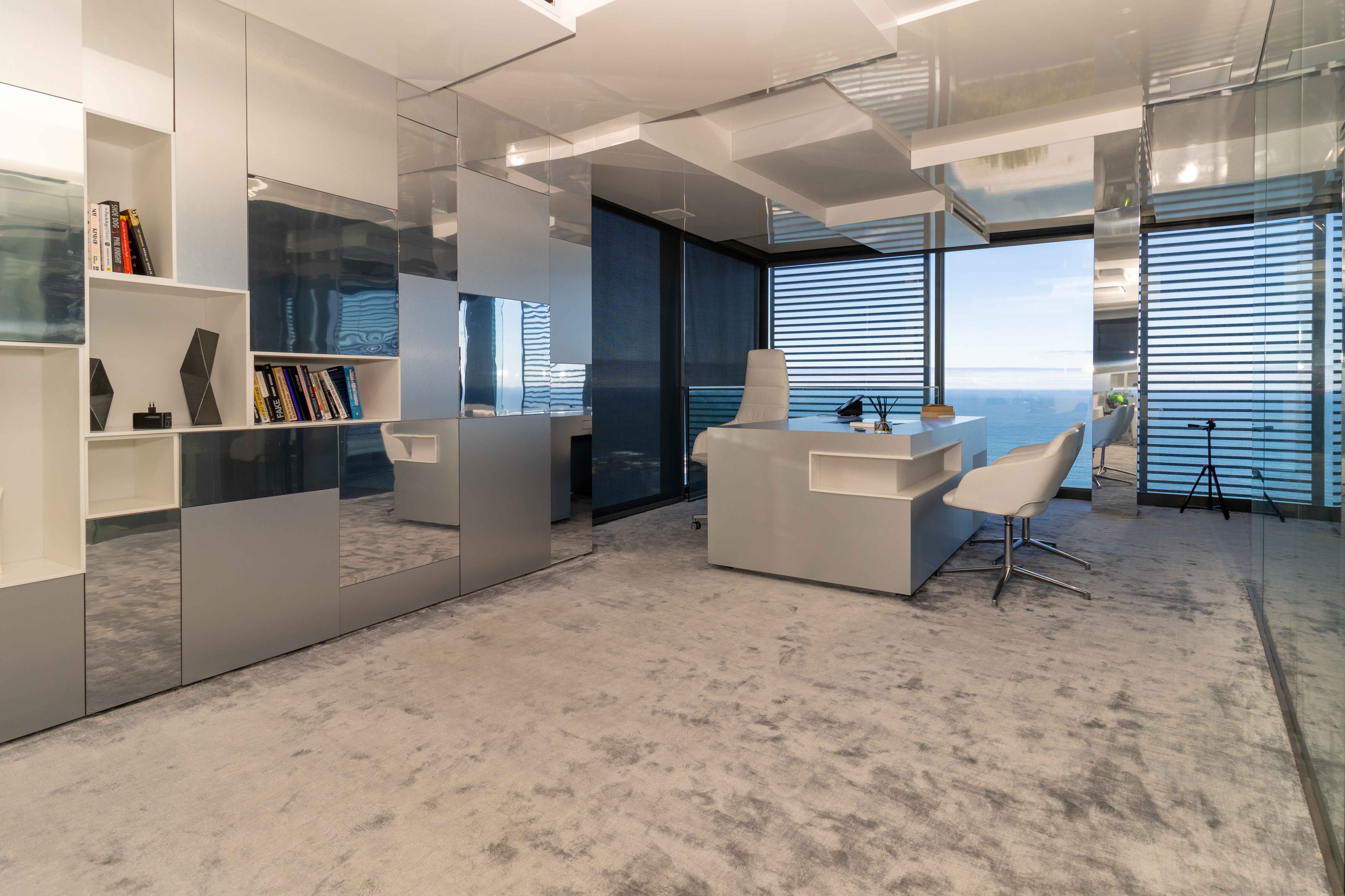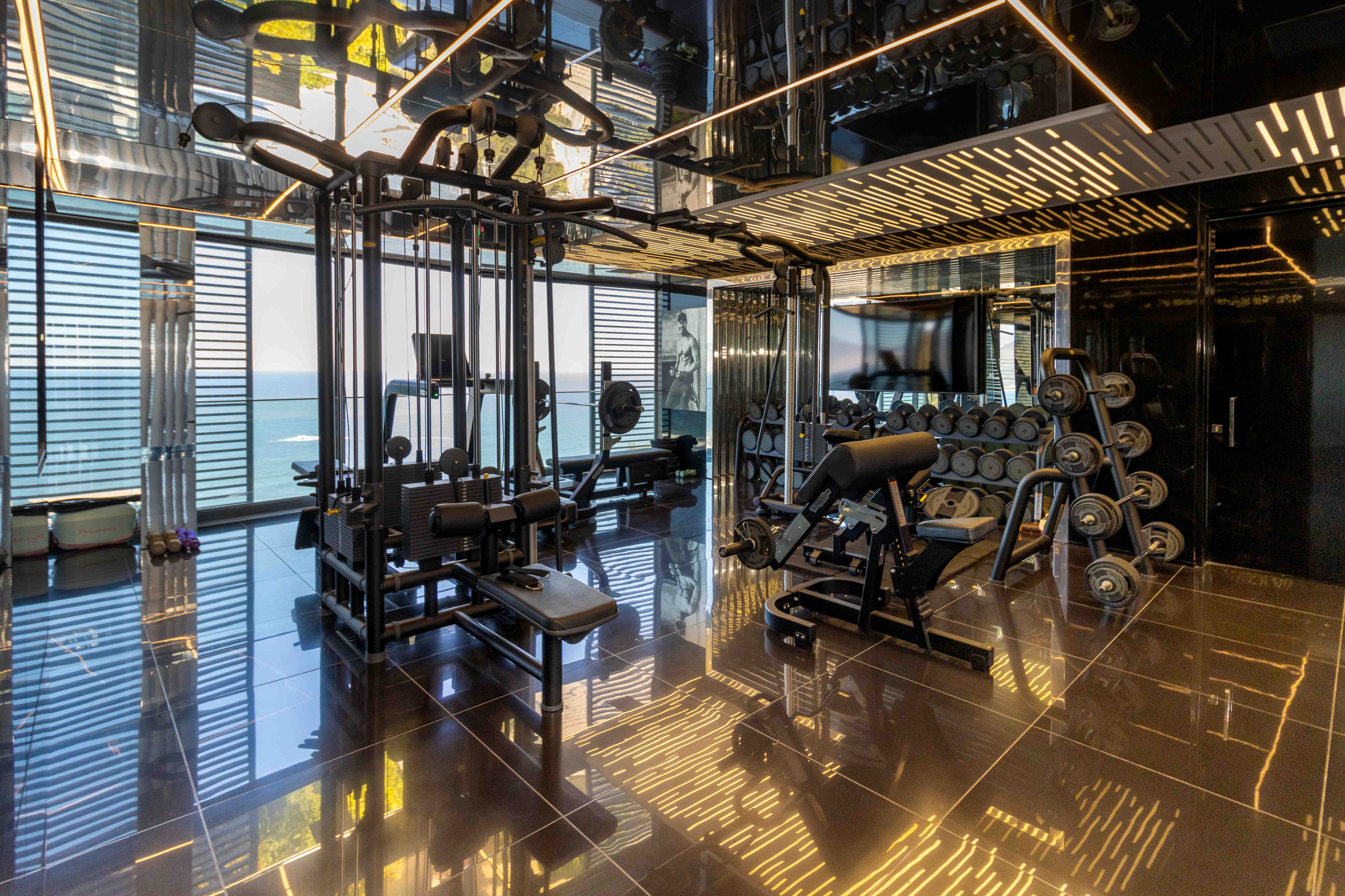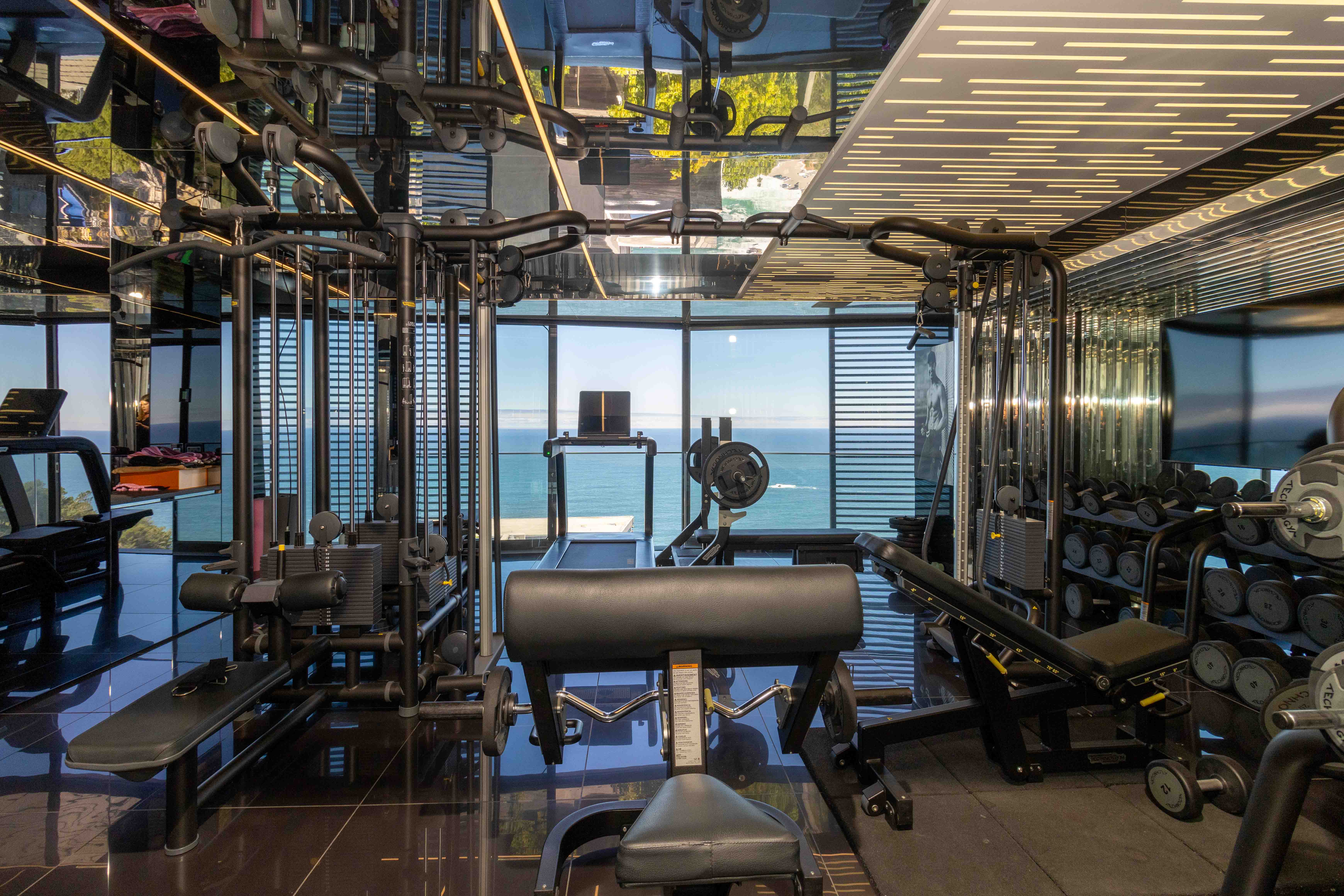Double-volume living areas flow effortlessly to expansive outdoor spaces. Floor-to-ceiling glass panels slide back to reveal a rim-flow infinity pool that appears to merge with the ocean below. The home includes a private cinema, a wellness suite, a fully equipped gym and a collection of entertainment and relaxation zones designed for a resort-like coastal lifestyle.