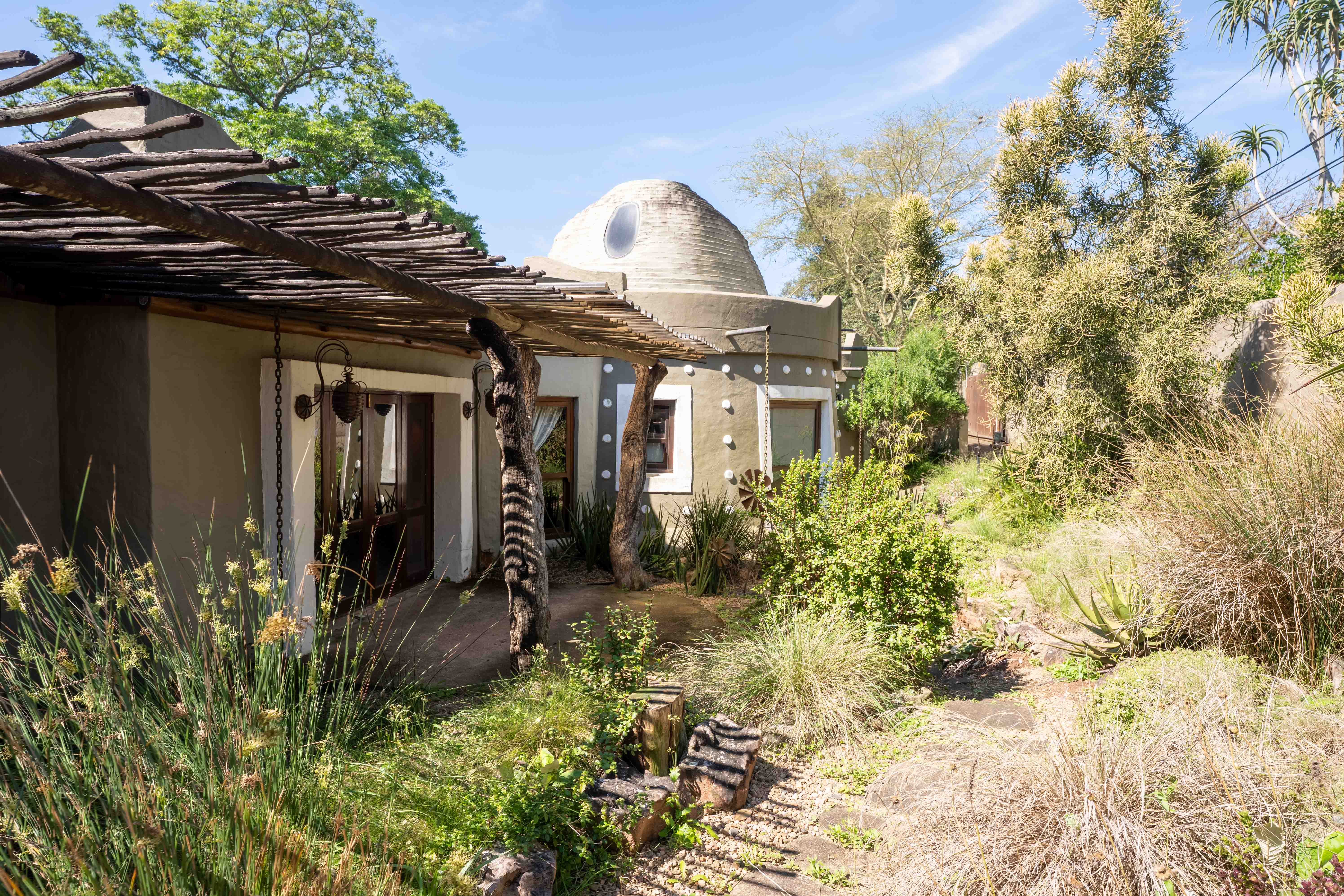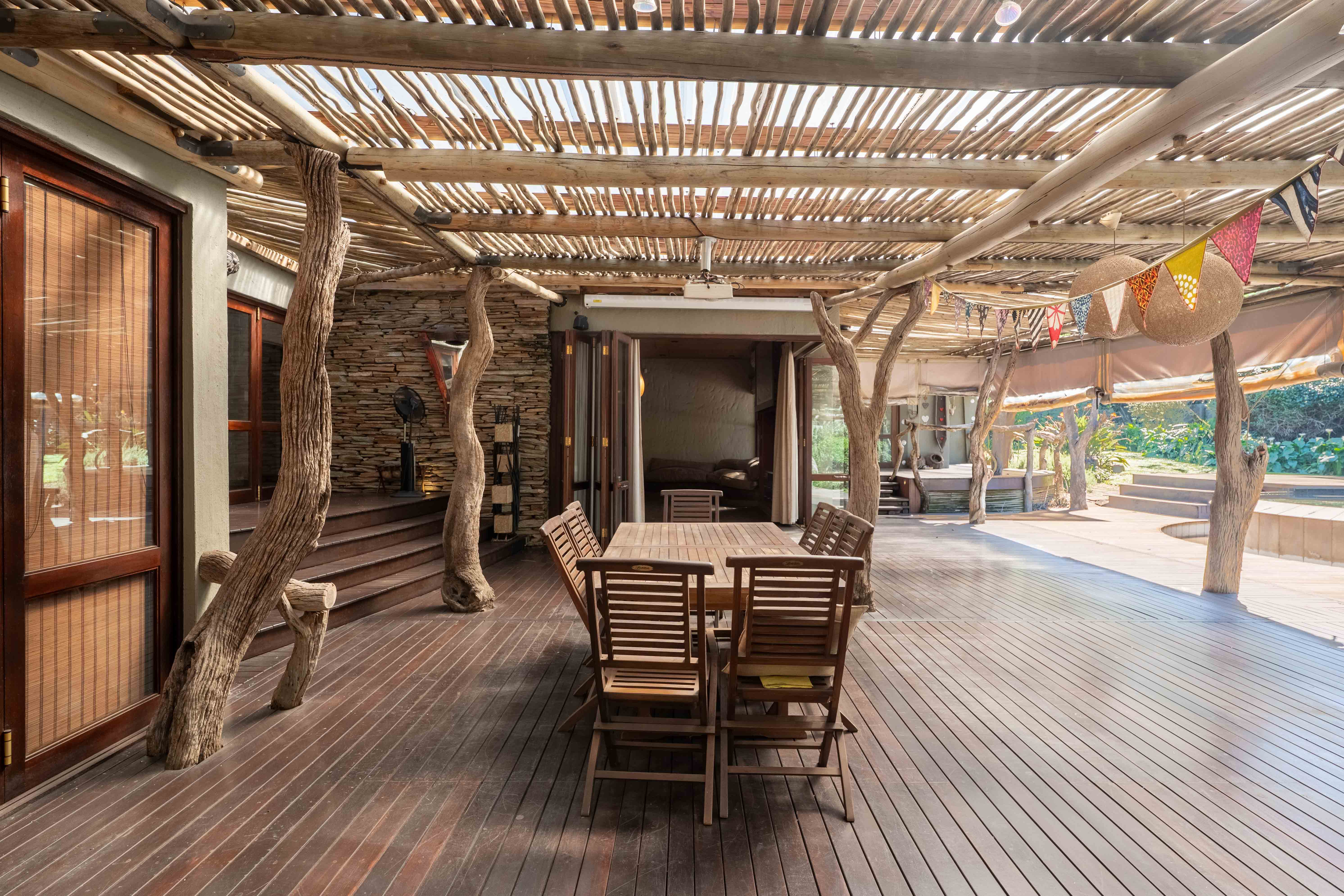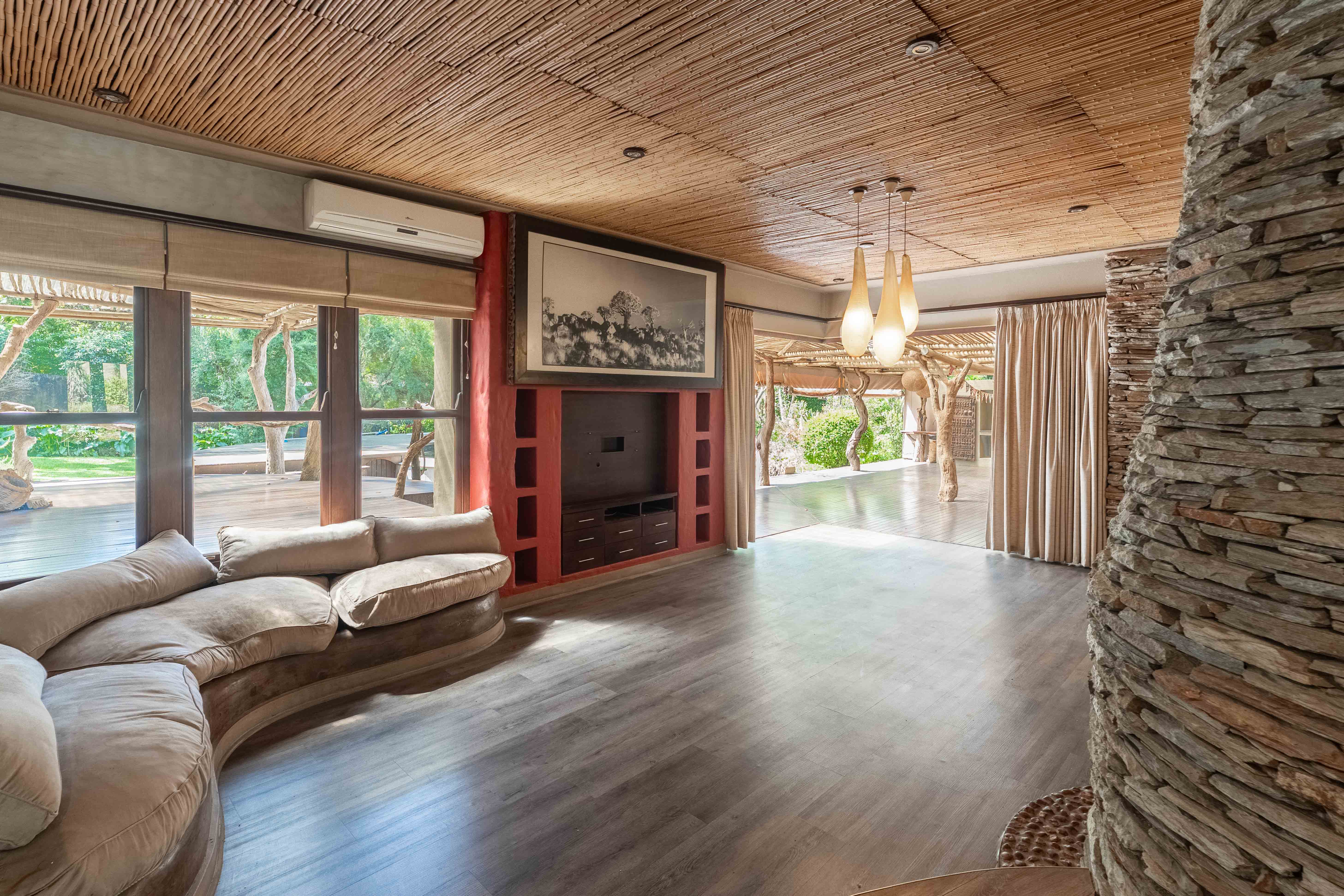 Discover the charm and sophistication of this remarkable home, a property where rustic elegance meets modern luxury, inspired by the essence of the African wilderness. From its striking hand carved West African doors to the thoughtfully curated interiors, this home is brimming with character and style.