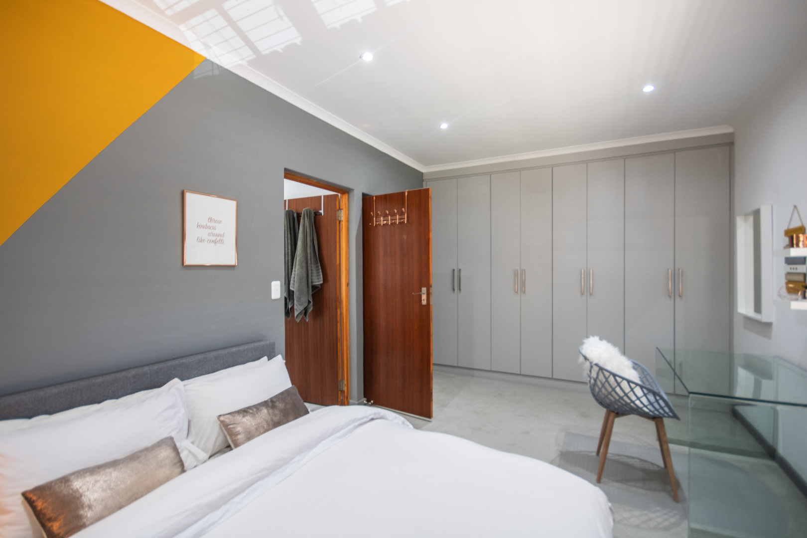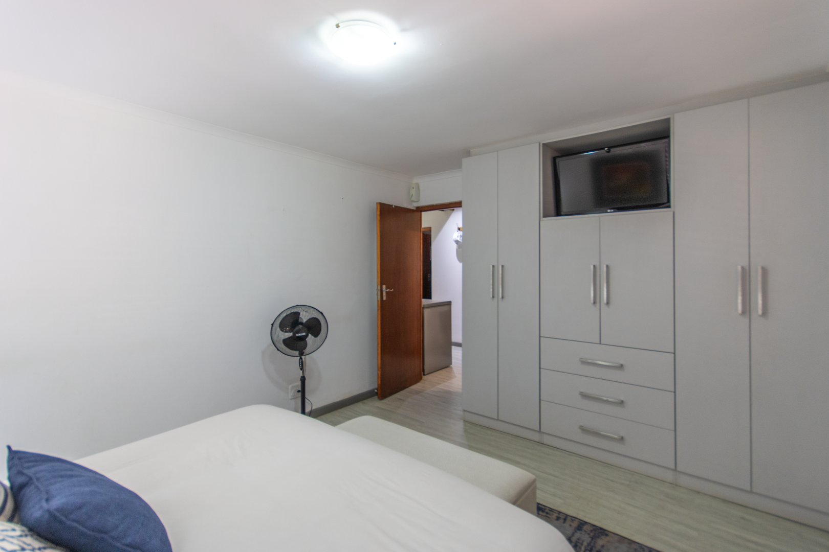 For those who love to entertain, the home includes a dedicated mancave, complete with a private bar and built-in braai. This versatile space is perfect for hosting guests and creating unforgettable memories. The heart of the home extends to the expansive living area, where stacker doors open to a beautifully landscaped outdoor setting. Whether you’re enjoying a relaxed evening or hosting a lively summer gathering, the entertainment spaces cater to every occasion.