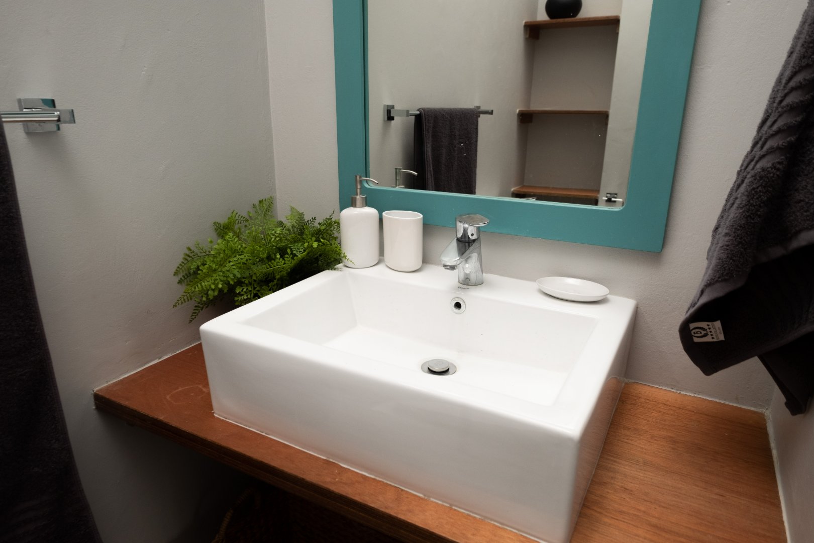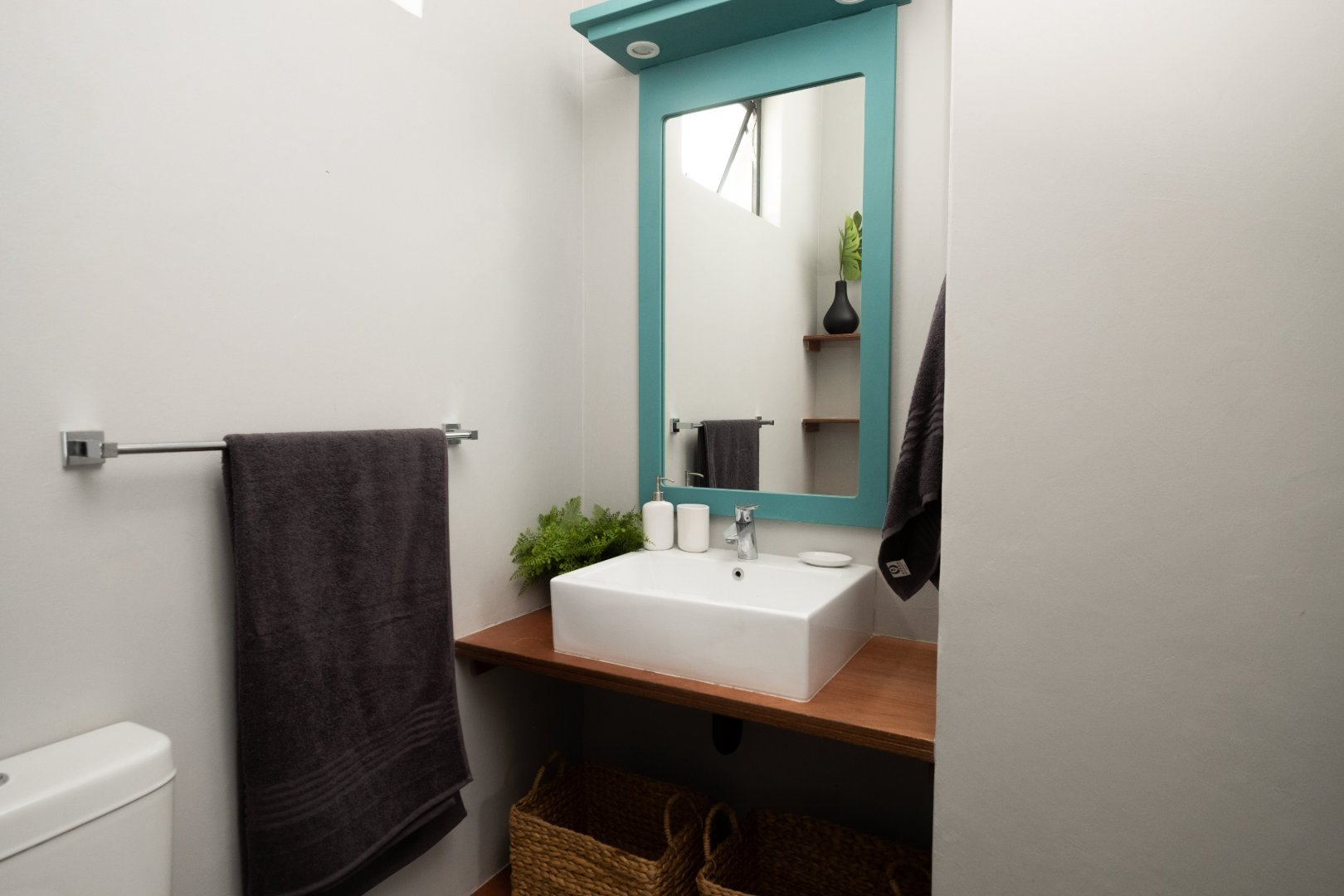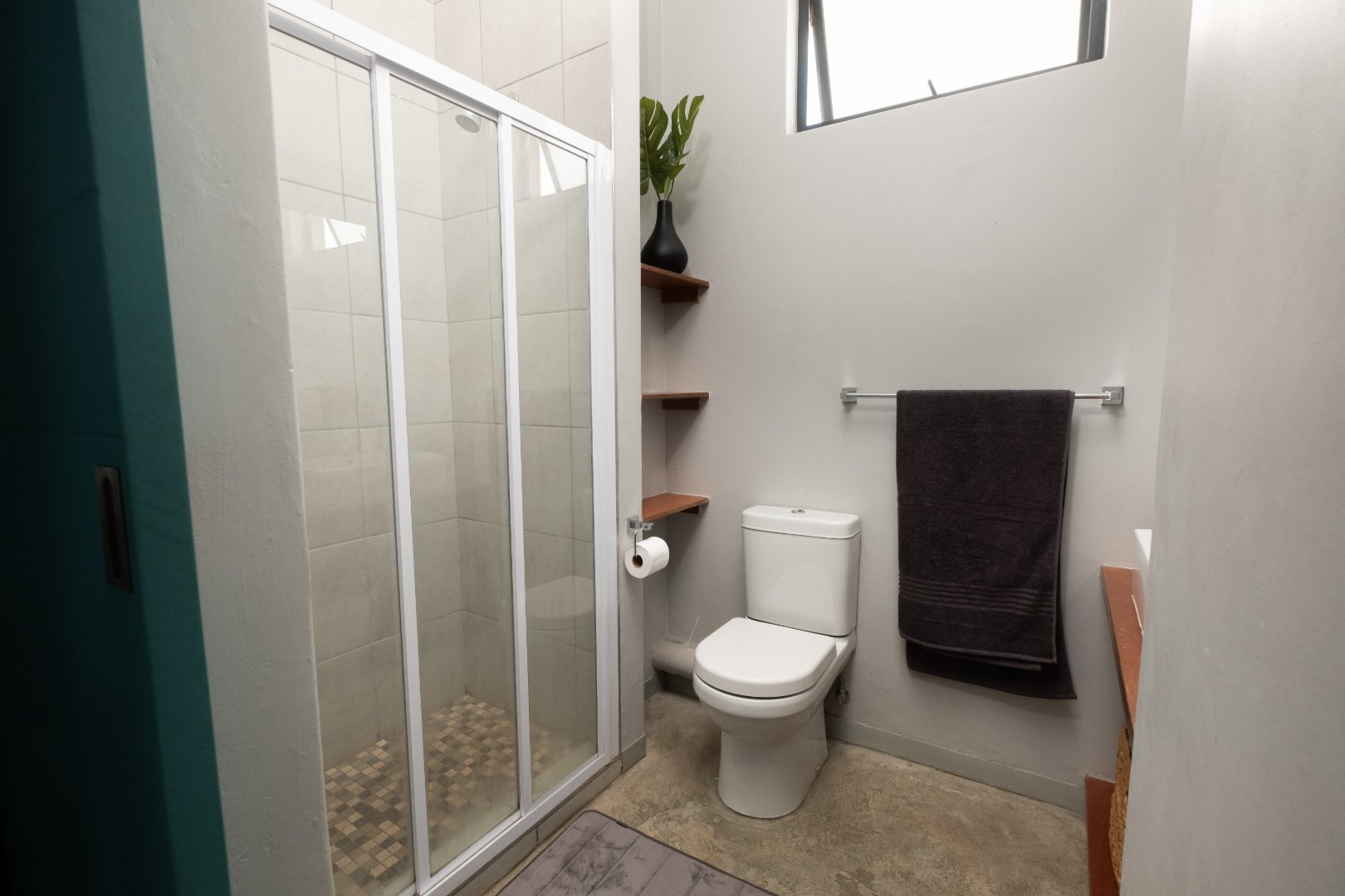 Open plan living and bedroom, tiles, Shower with toilet and Basin, small but effective kitchen.