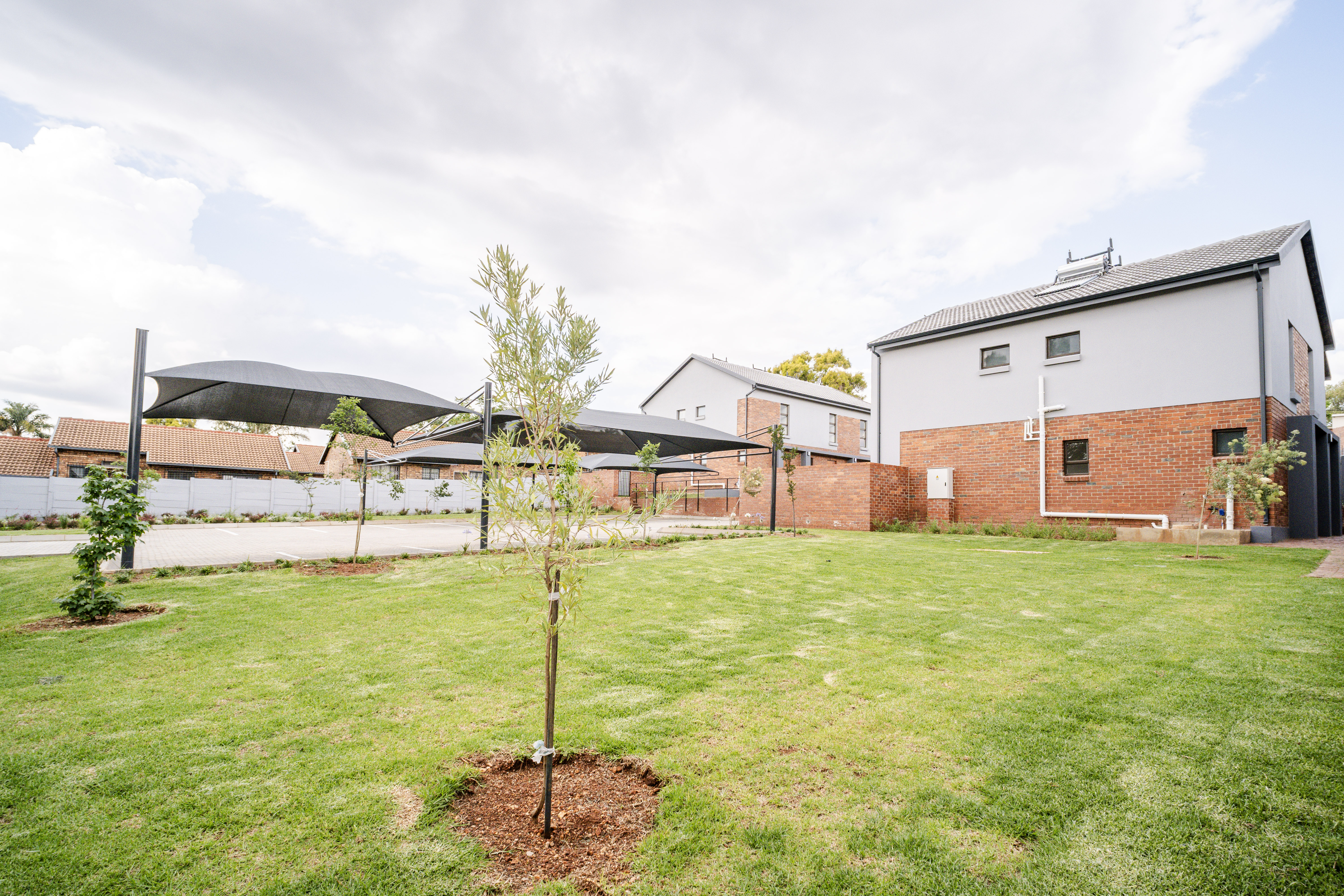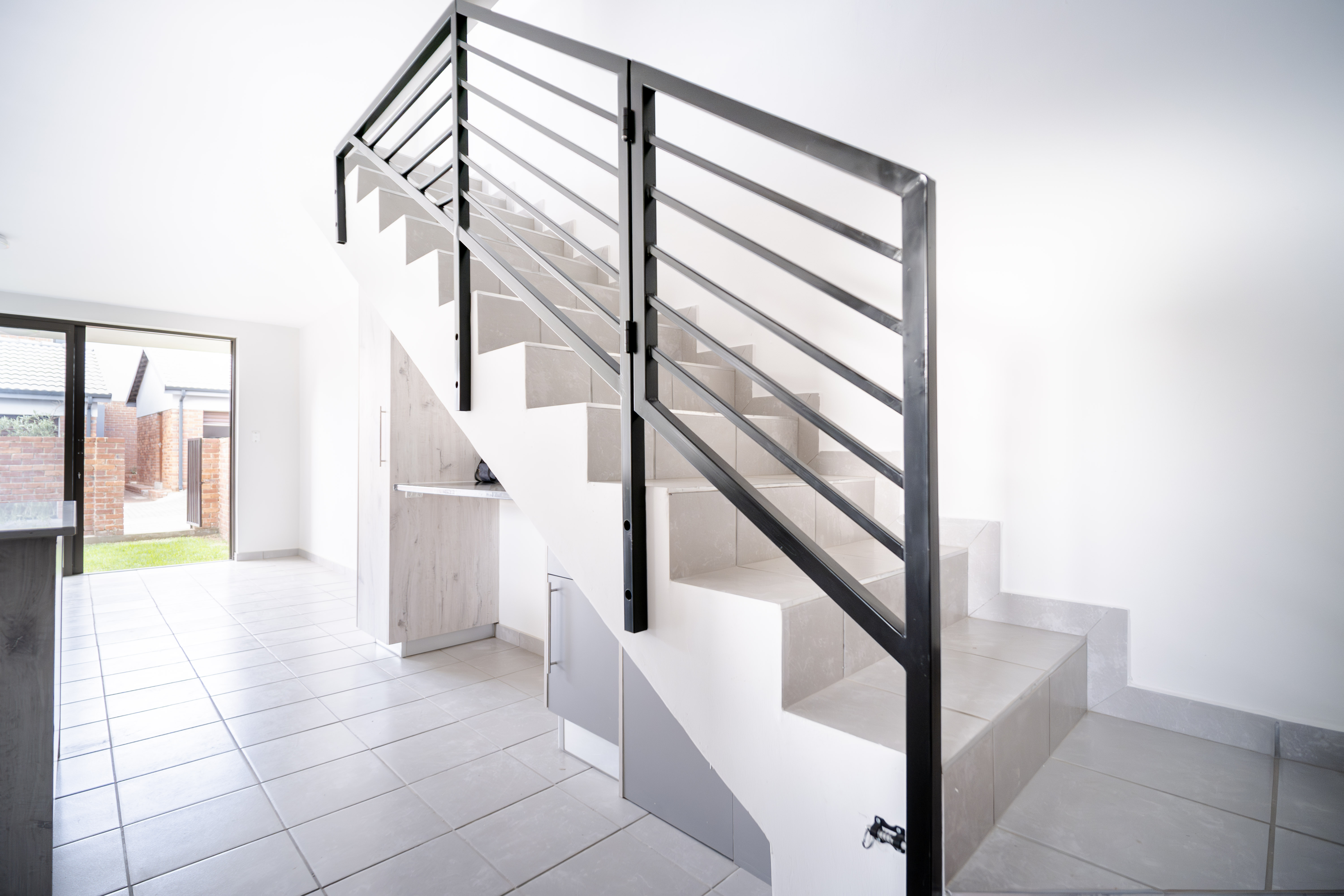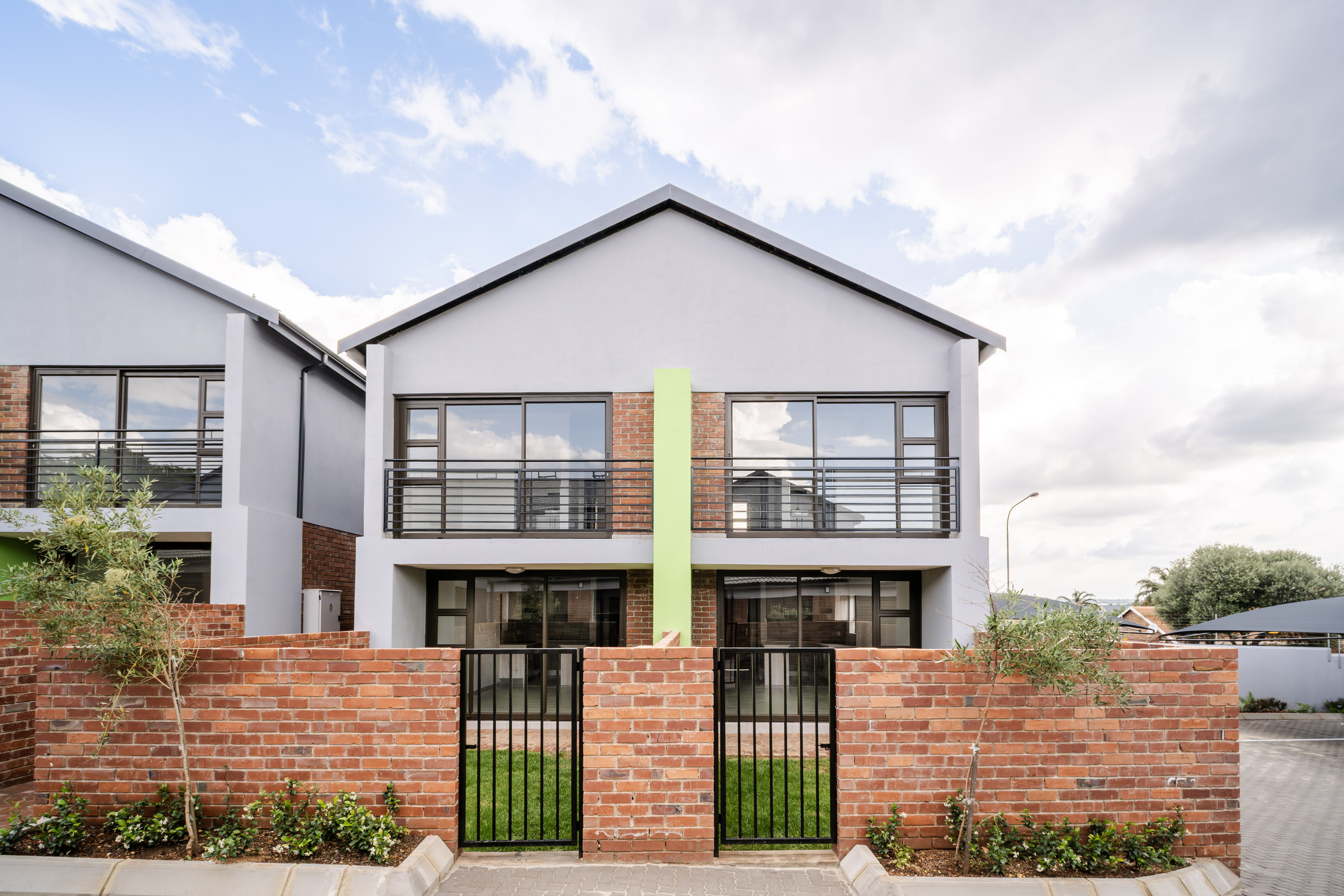 This modern, light-filled duplex offers a contemporary lifestyle with excellent natural light, quality finishes, and energy-efficient features. The open-plan living area is spacious and flows comfortably from the lounge into the kitchen, creating a bright and welcoming atmosphere. The kitchen offers generous cupboard space and a practical workstation nook situated neatly beneath the staircase — ideal for study, work-from-home setups, or even housing a tumble dryer. Sliding doors lead out to a private front garden, perfect for children, pets, and relaxed entertaining. Upstairs are two well-proportioned bedrooms, both fitted with generous built-in cupboards. The main bedroom features a Juliet Balcony - a charming, sliding door with safety railing that allows you to open up the room to fresh air and plenty of natural light whilst adding to the elegant architectural beauty. The main bedroom enjoys a modern bathroom fitted with a shower and basin, while the second upstairs bathroom offers a full bathing option for added comfort and convenience. A guest toilet is located downstairs, ensuring privacy and practicality when hosting visitors. The home includes a single lock-up garage plus a covered carport, offering secure and flexible parking. Energy-saving solar geysers help reduce monthly running costs, while the low-maintenance exterior provides long-term value. The development features beautifully landscaped communal green areas and pedestrian-friendly walkways, allowing residents to enjoy outdoor surroundings in a secure and peaceful environment. The location offers quick access to major freeways, nearby shopping centres, reputable schools, and top-class medical facilities — making everyday living effortless.
