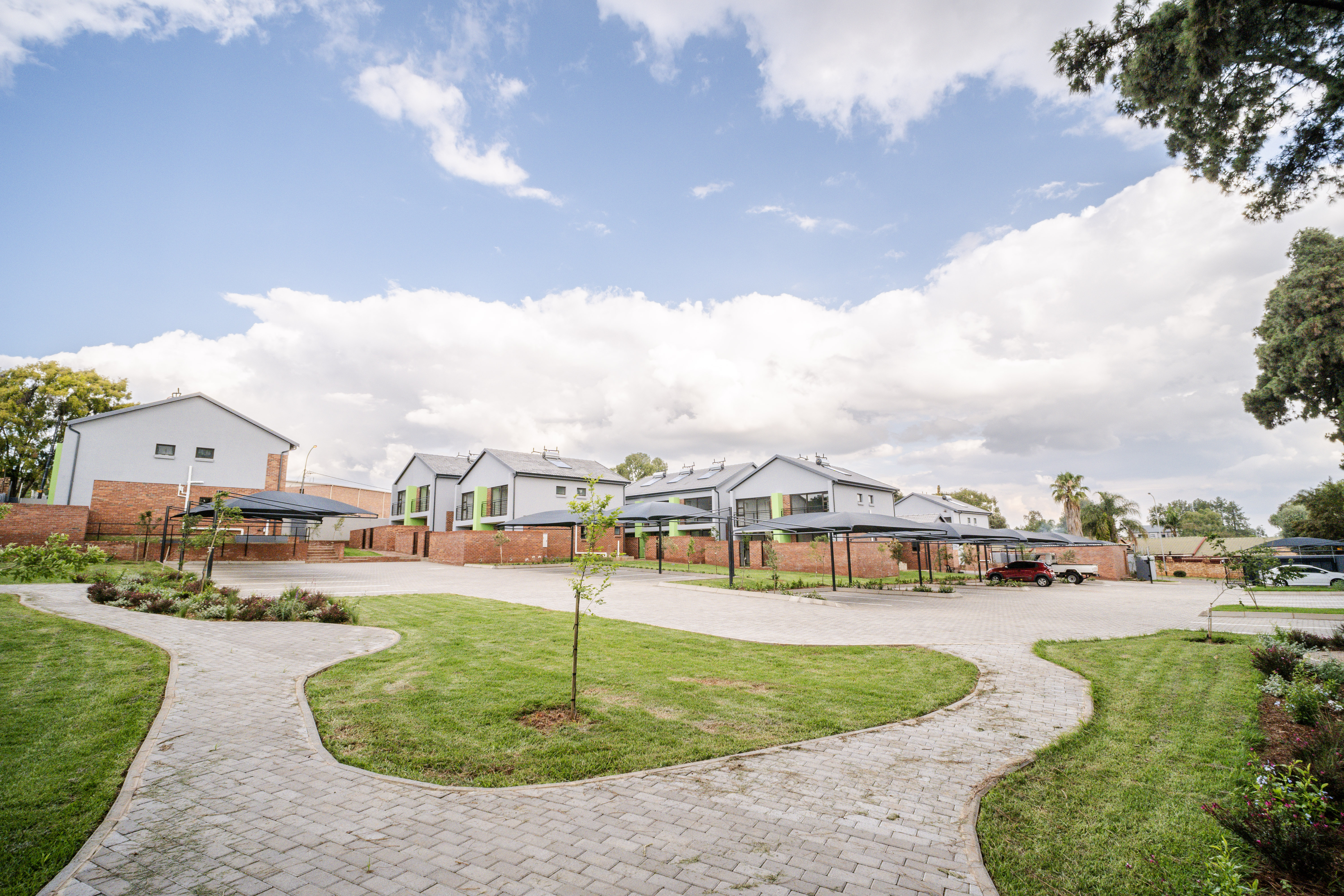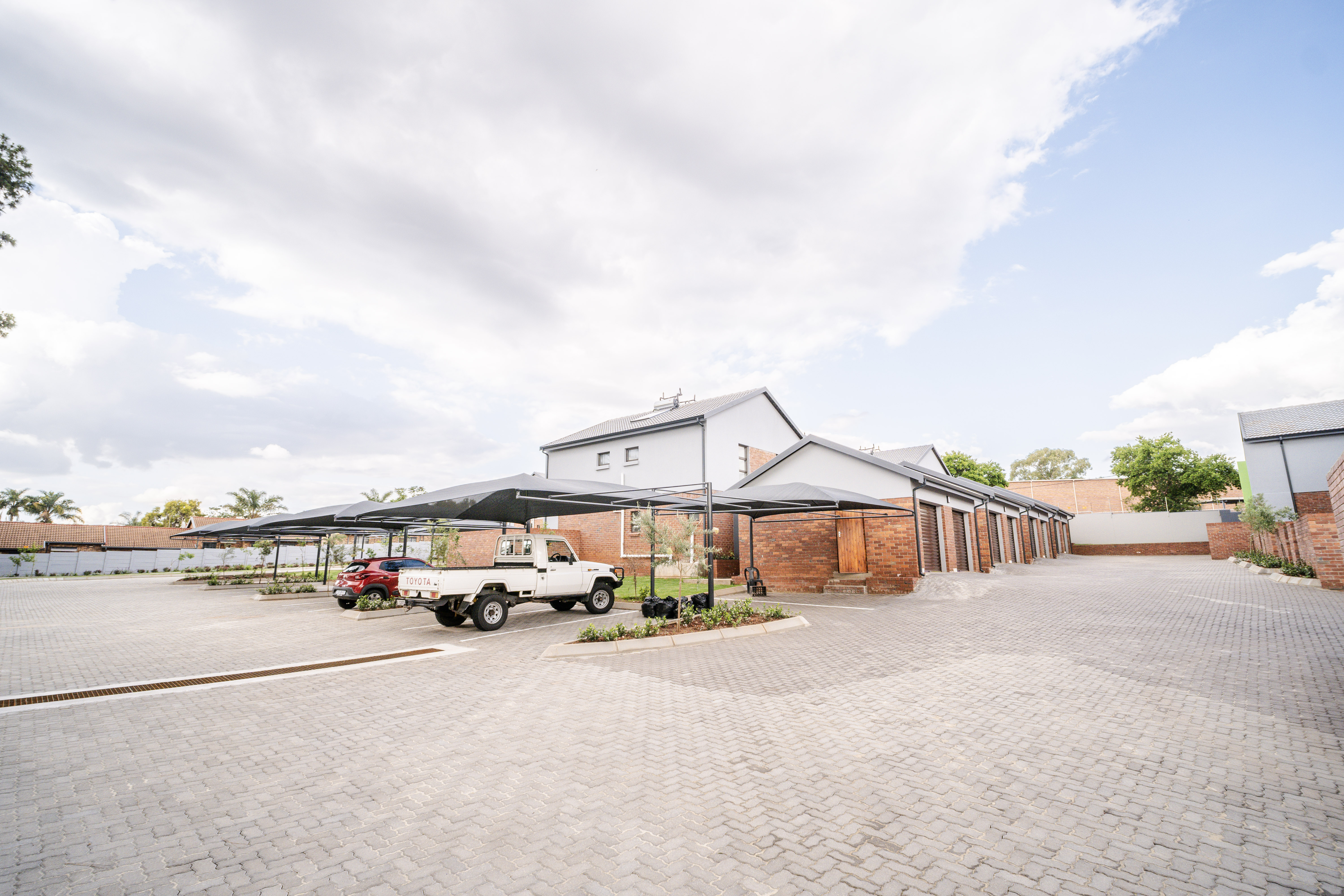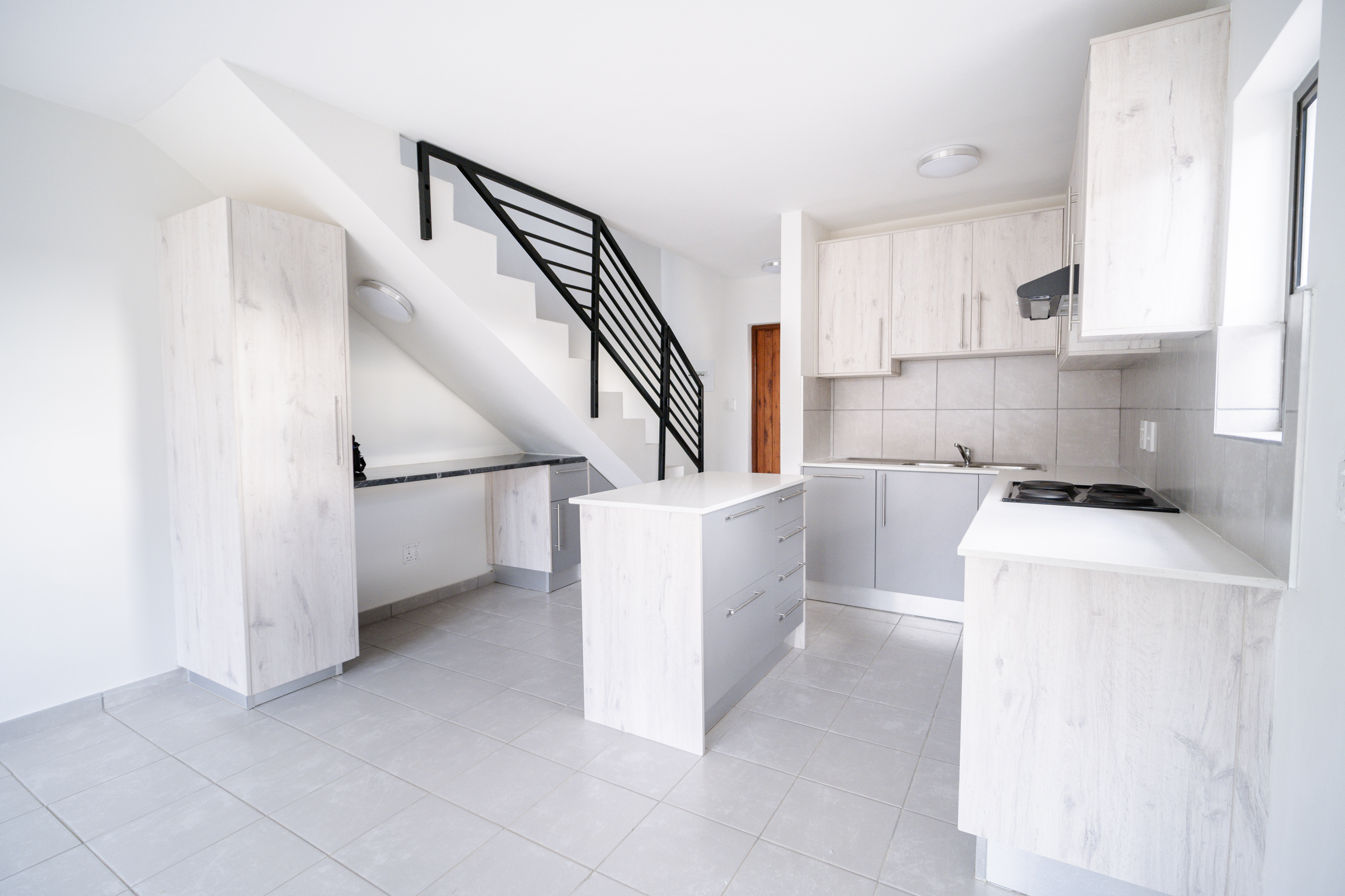 This modern, light-filled duplex offers a contemporary lifestyle with excellent natural light, quality finishes, and energy-efficient features. The open-plan living area is spacious and flows comfortably from the lounge into the kitchen, creating a bright and welcoming atmosphere. The kitchen offers generous cupboard space and a practical workstation nook situated neatly beneath the staircase — ideal for study, work-from-home setups, or even housing a tumble dryer. Sliding doors lead out to a private front garden, perfect for children, pets, and relaxed entertaining. Upstairs are two well-proportioned bedrooms, both fitted with generous built-in cupboards. The main bedroom features a Juliet Balcony - a charming, sliding door with safety railing that allows you to open up the room to fresh air and plenty of natural light whilst adding to the elegant architectural beauty. The main bedroom enjoys a modern bathroom fitted with a shower and basin, while the second upstairs bathroom offers a full bathing option for added comfort and convenience. A guest toilet is located downstairs, ensuring privacy and practicality when hosting visitors. The home includes a single lock-up garage plus a covered carport, offering secure and flexible parking. Energy-saving solar geysers help reduce monthly running costs, while the low-maintenance exterior provides long-term value. The development features beautifully landscaped communal green areas and pedestrian-friendly walkways, allowing residents to enjoy outdoor surroundings in a secure and peaceful environment. The location offers quick access to major freeways, nearby shopping centres, reputable schools, and top-class medical facilities — making everyday living effortless.