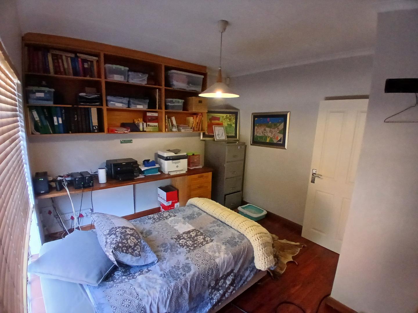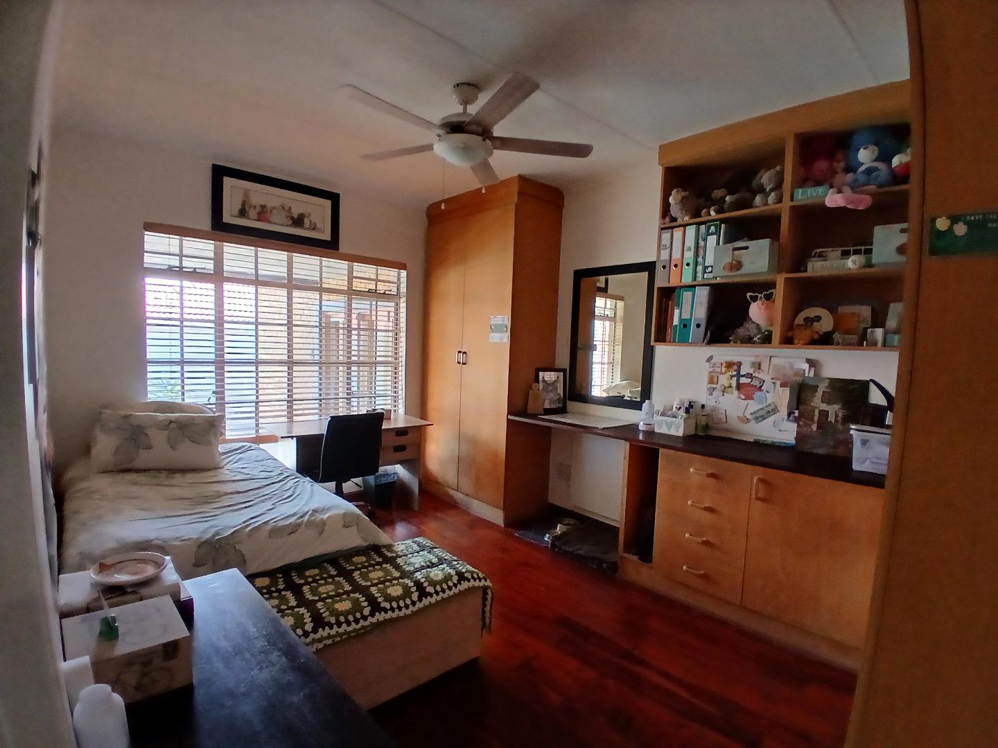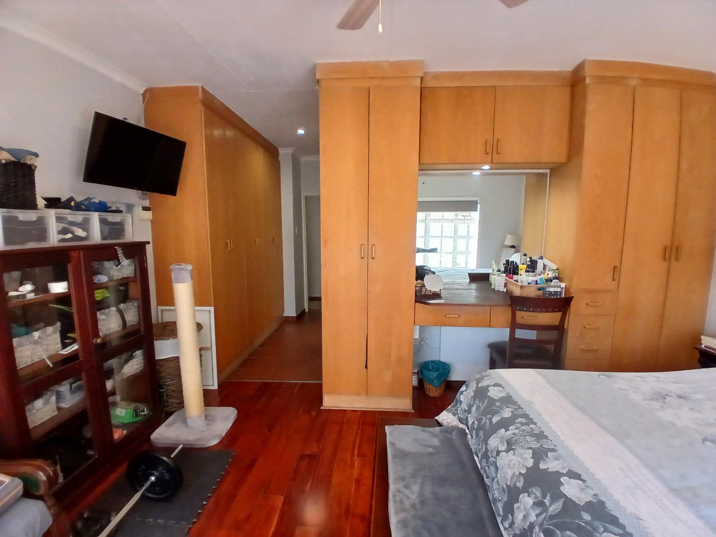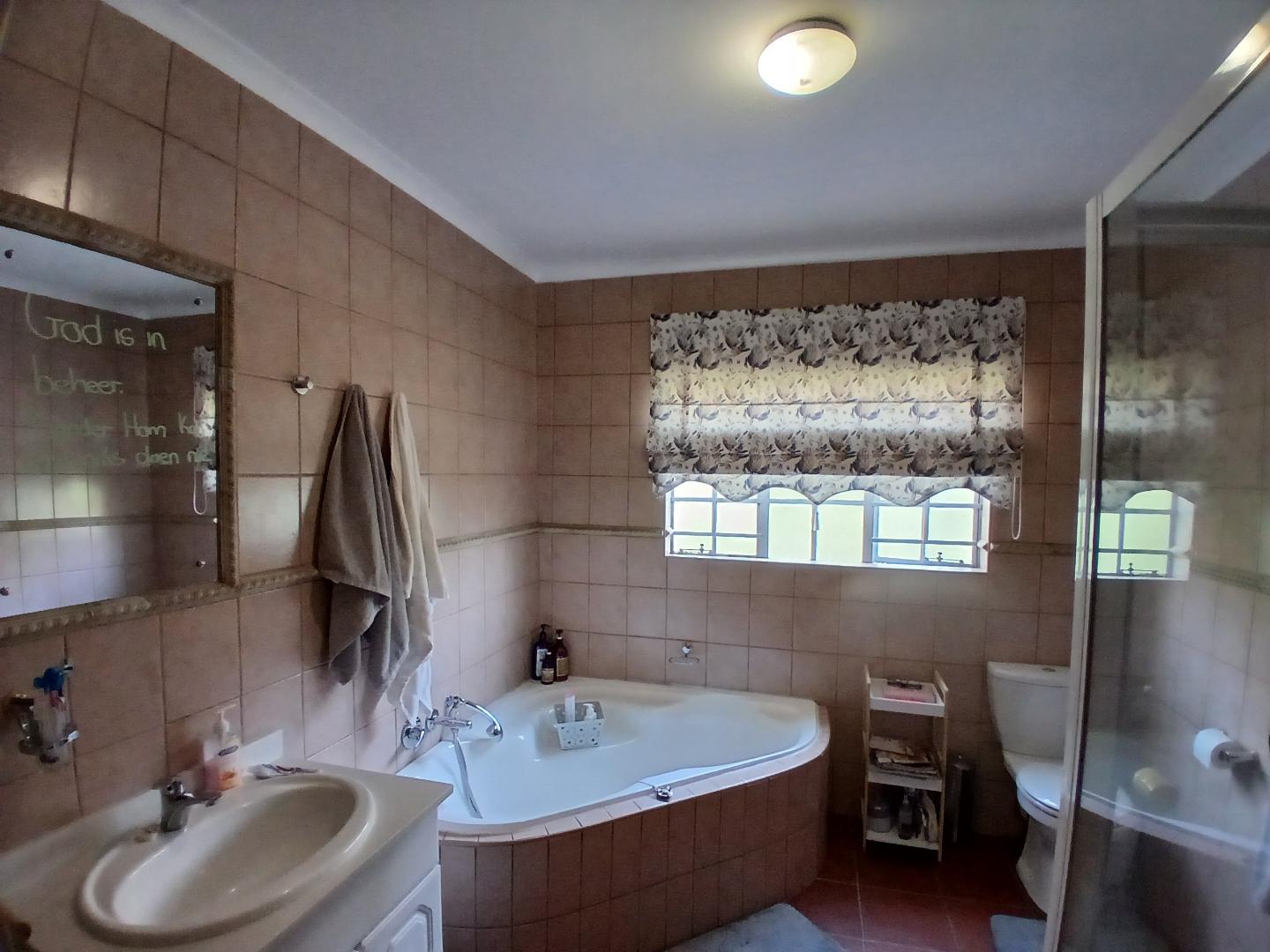 This stunning 4-bedroom, 3-bathroom property in Centurion offers a perfect blend of comfort, entertainment, and security. Boasting 270m2 of floor space, the property features an open-plan living area with a kitchen equipped with wooden cabinets and a breakfast bar. The dining area includes a dark wooden table with leather chairs and a cozy nook with a blue armchair.