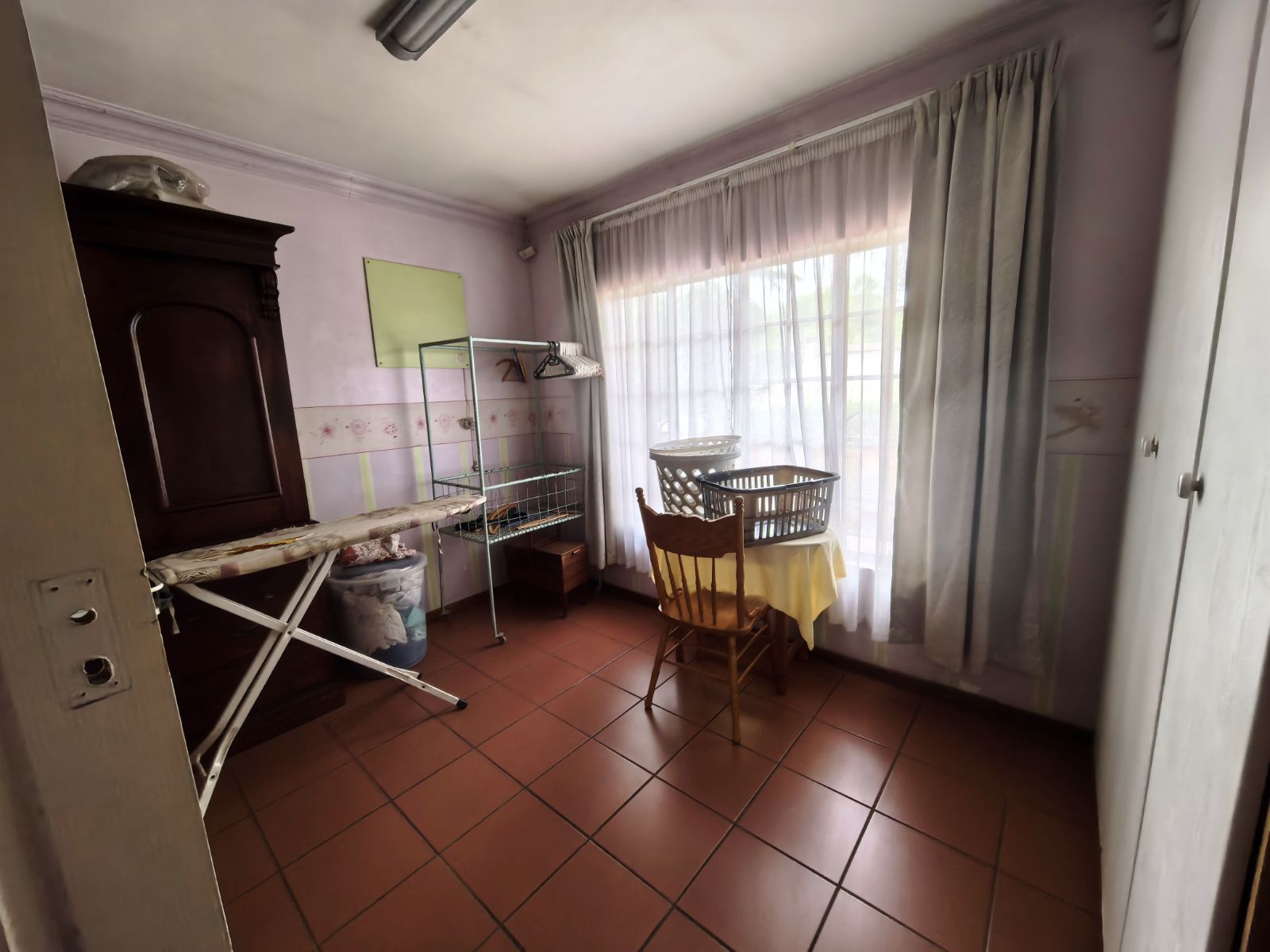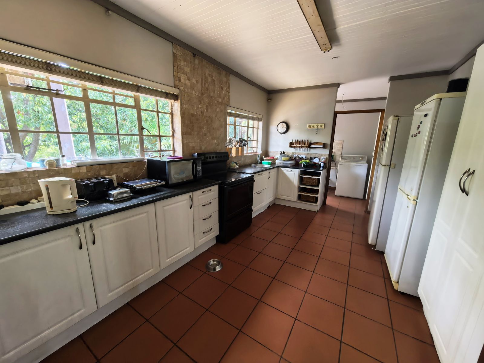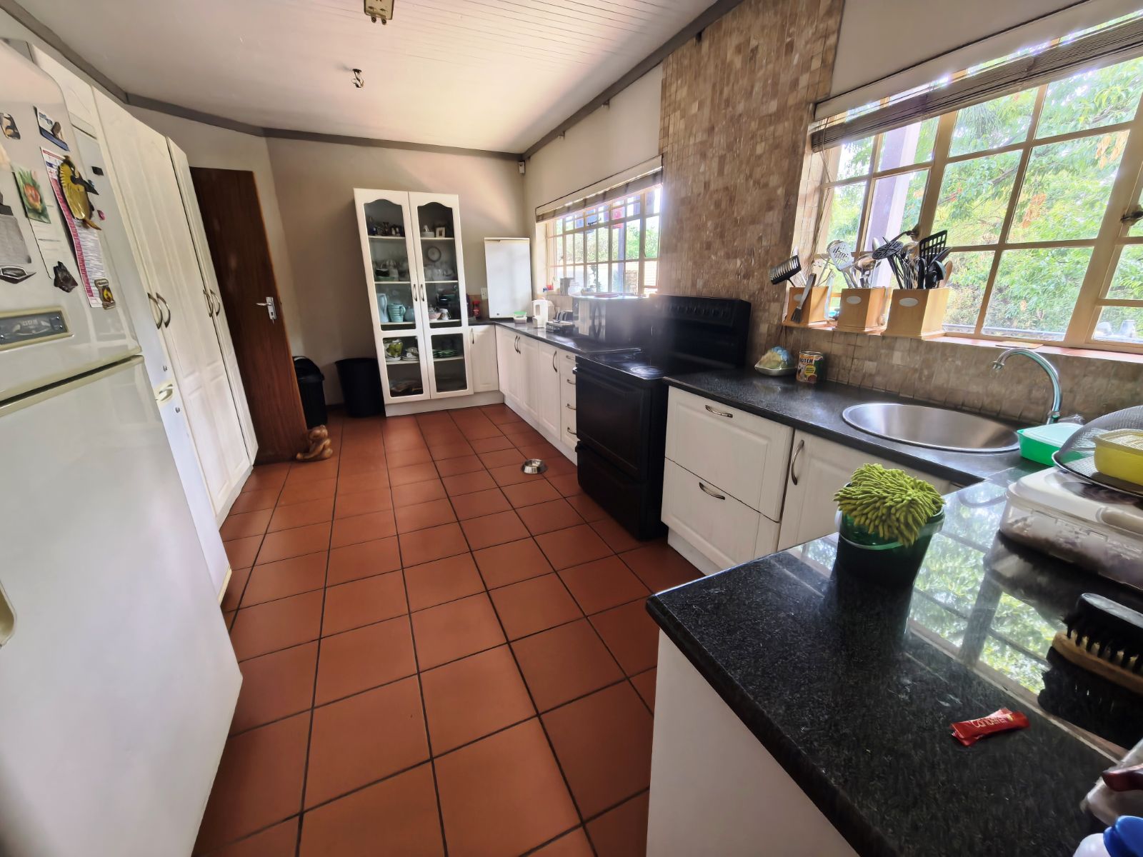 The spacious kitchen is thoughtfully designed with ample cupboard space, generous work surfaces, and a separate scullery to ensure functionality and organization. A dedicated study adds further value, making this home ideal for professionals working remotely. In addition to the main house, the property includes a private one-bedroom flatlet, perfect for extended family, guests, or rental income. Five garages offer exceptional parking and storage capacity, while the large stand enhances the overall versatility and appeal of this outstanding family home.