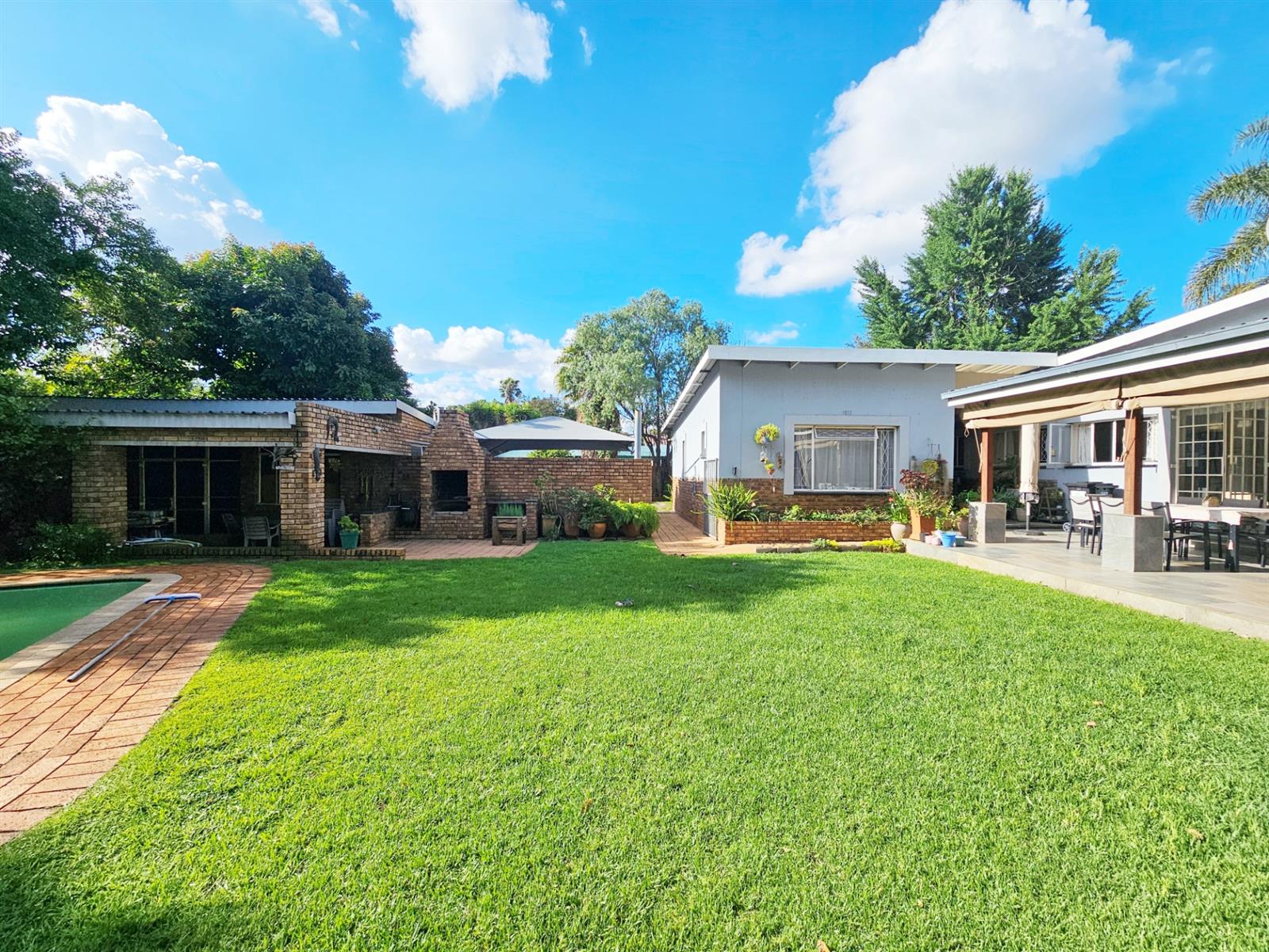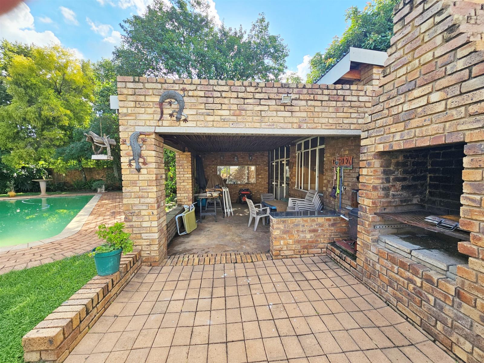 Outside, the fun continues. The long, covered patio (with drop down awnings) is perfect for Sunday braais or just relaxing while the kids splash in the pool. There is a pool/braai room next to the pool with a built-in braai and the garden is beautifully lush and private, There is a laundry and domestic quarters as well as extra storage areas.