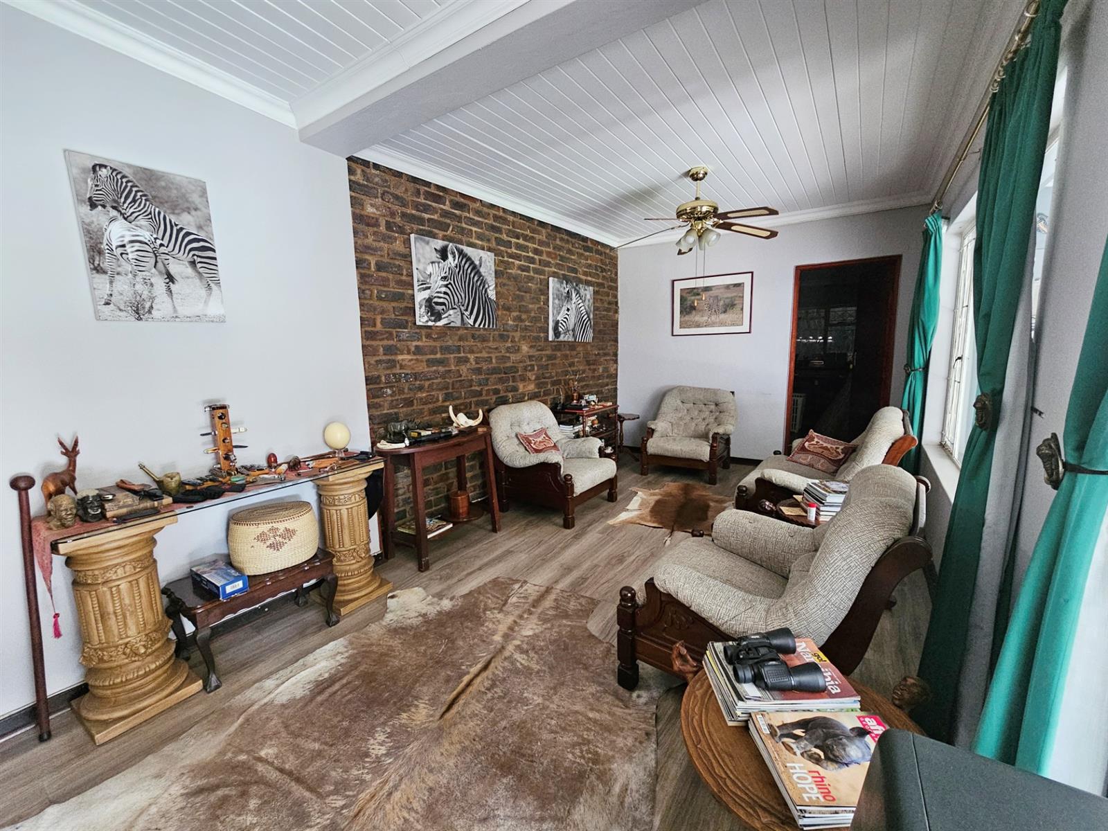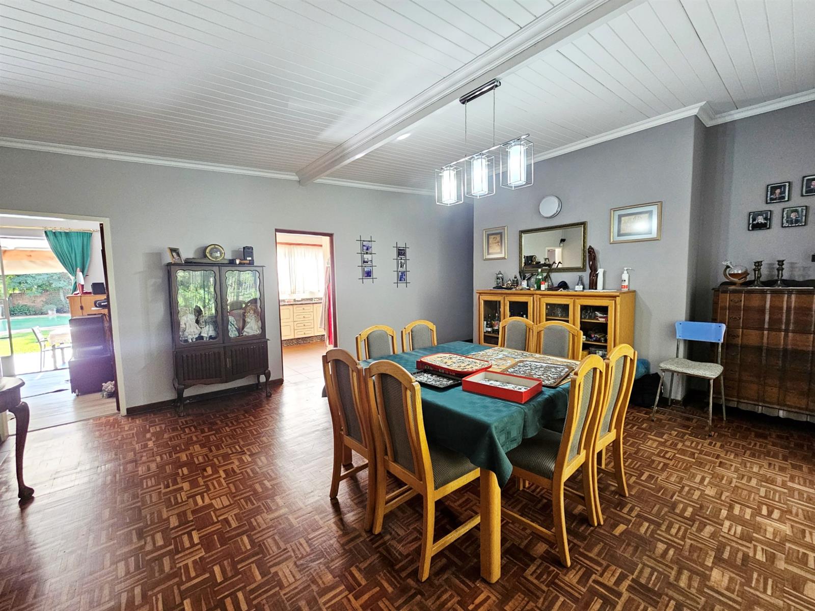 The lounge has laminated flooring and an overhead fan plus the fireplace. Adjacent to this is a spacious office for a work from home scenario or as a hobby room.The dining room is spacious and sunny and features gorgeous, original parquet flooring.