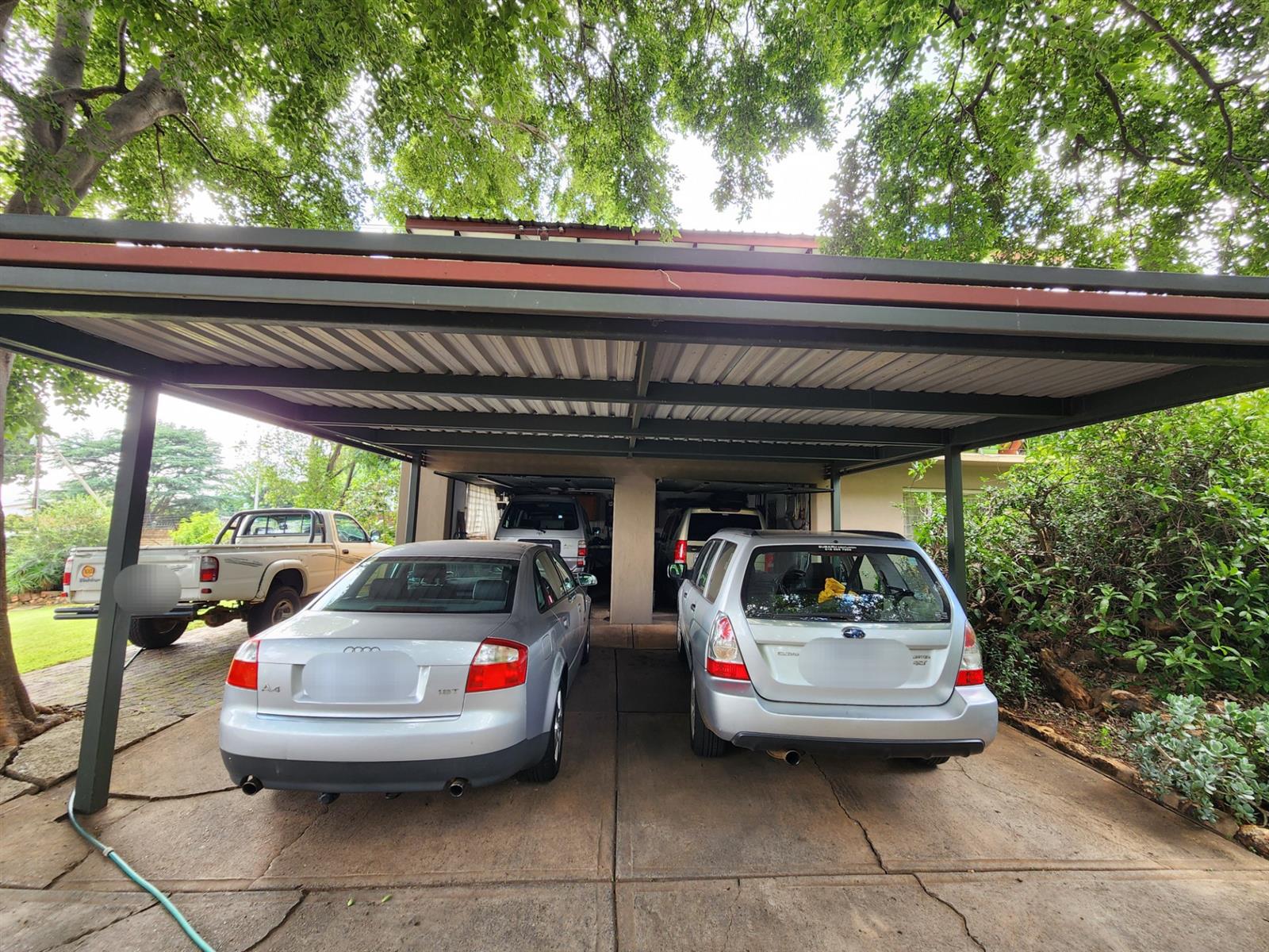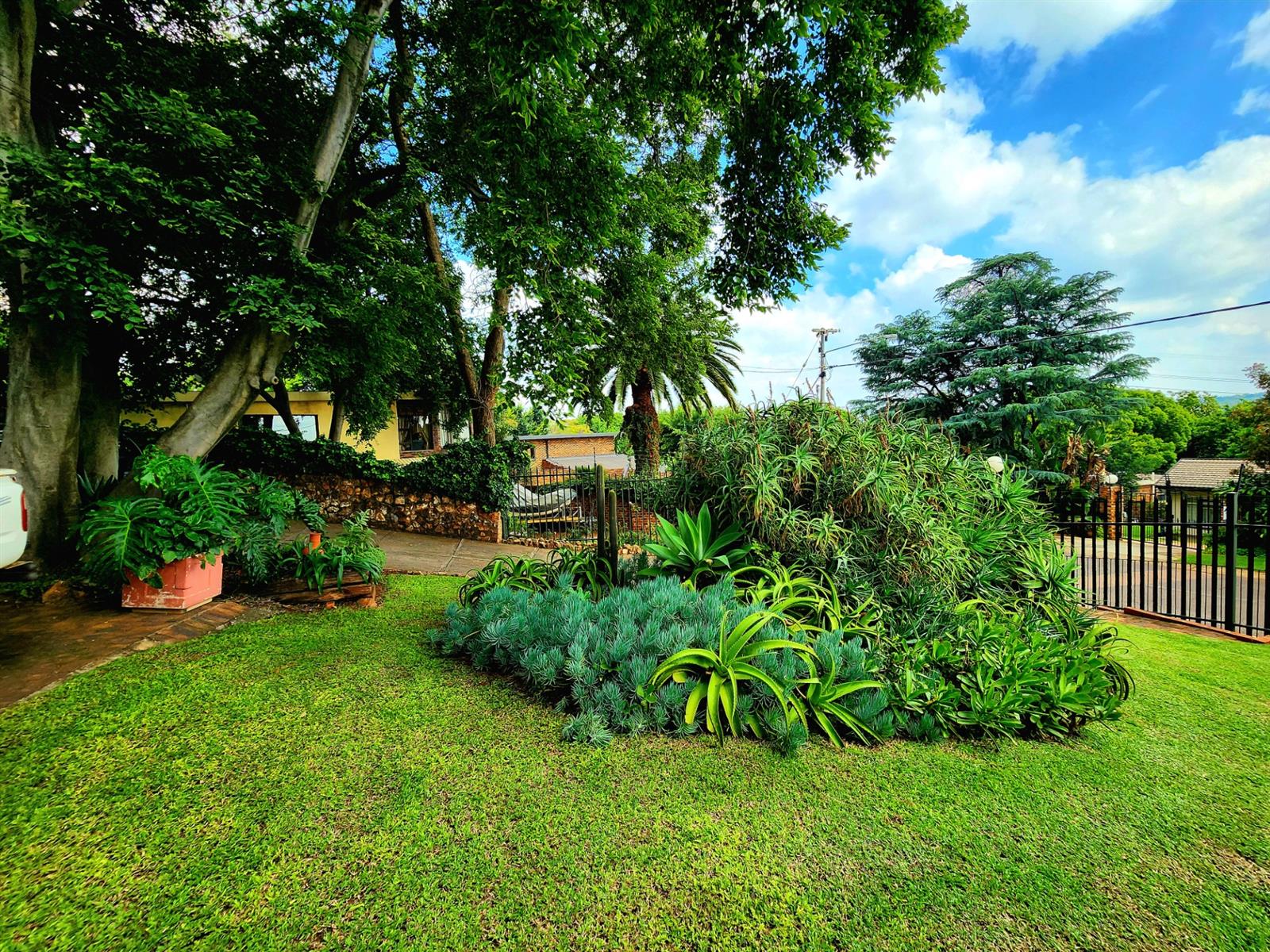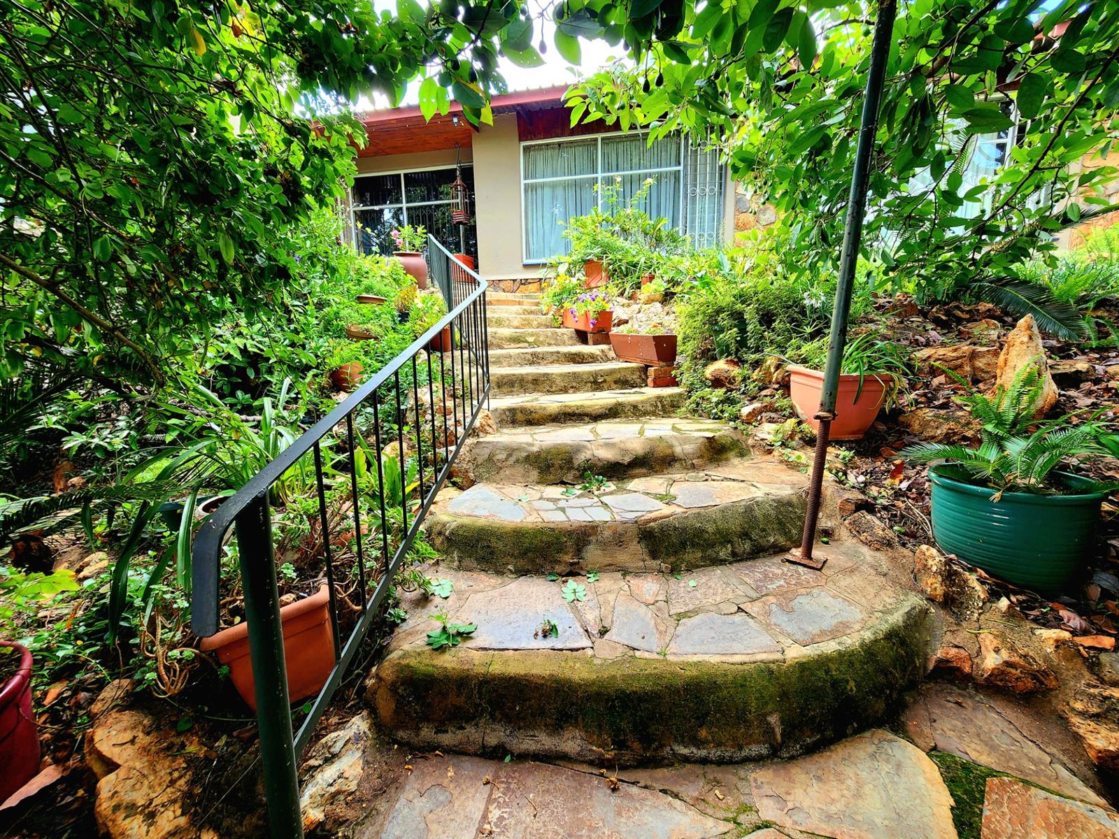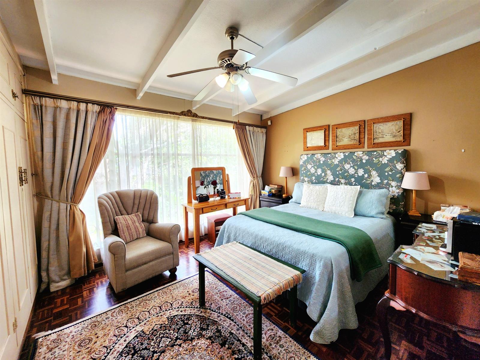 This charming home offers generous space, exotic garden and modern convenience and exceptional comfort. The interior features four bedrooms, two bathrooms (including an en-suite), an inviting entrance hall, two spacious living areas, a dining room, a study and a walk-in linen closet. The kitchen is fitted with a gas stove and is complemented by a separate laundry and pantry. Additional conveniences include a fireplace, pre-paid electricity, a storeroom or domestic room with an outside toilet, plus a double garage and double carport.
