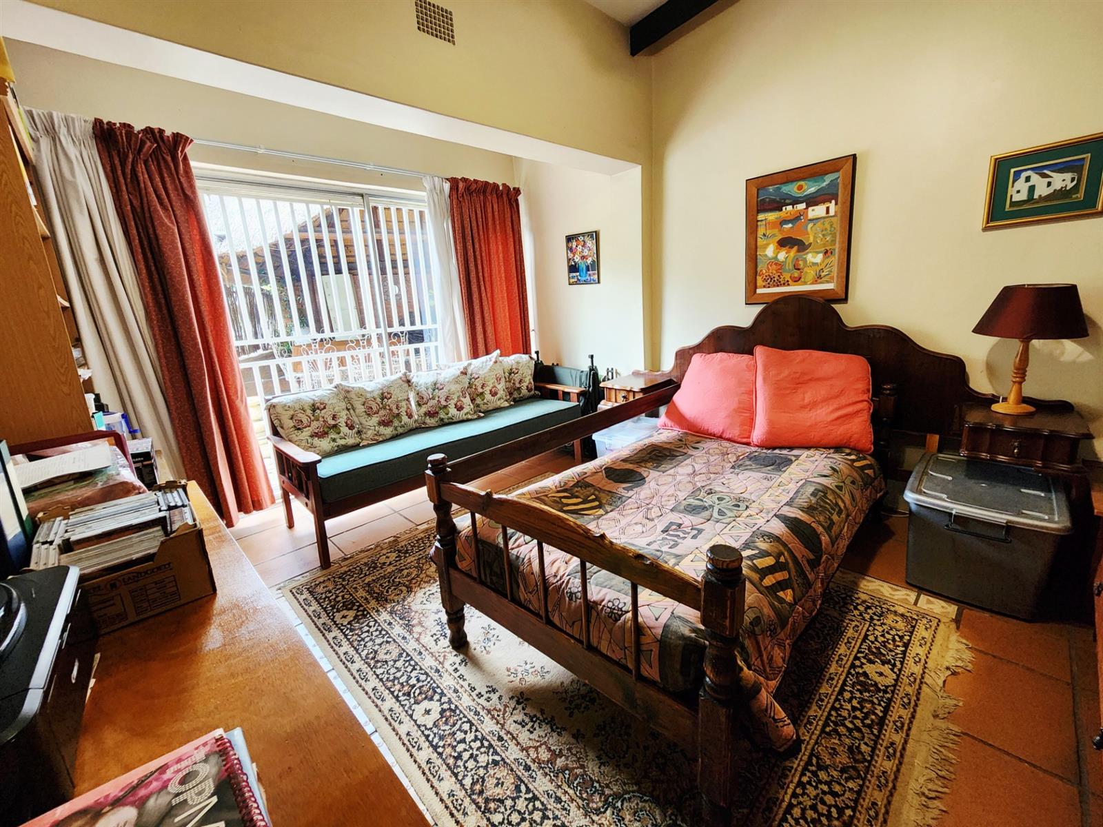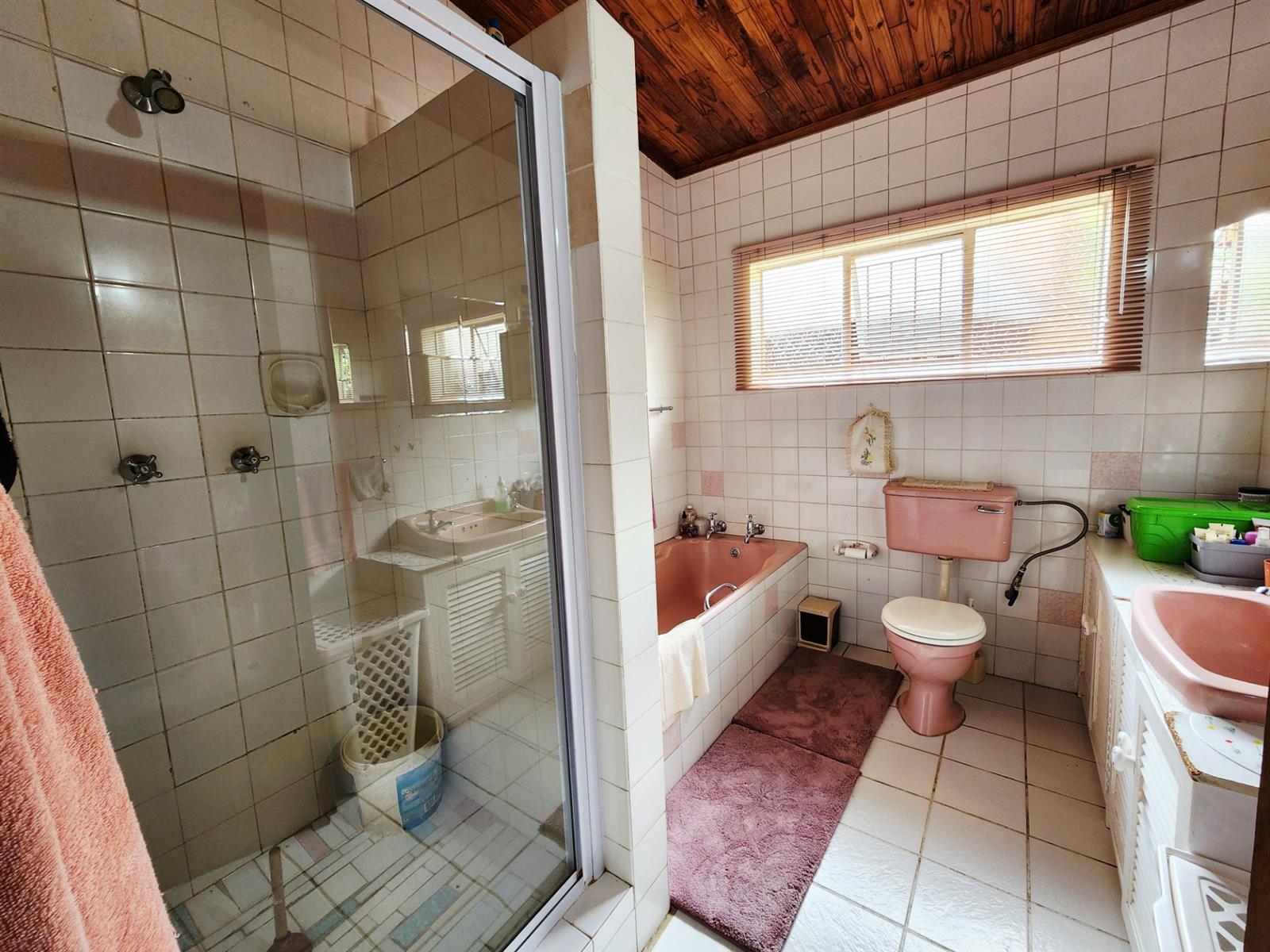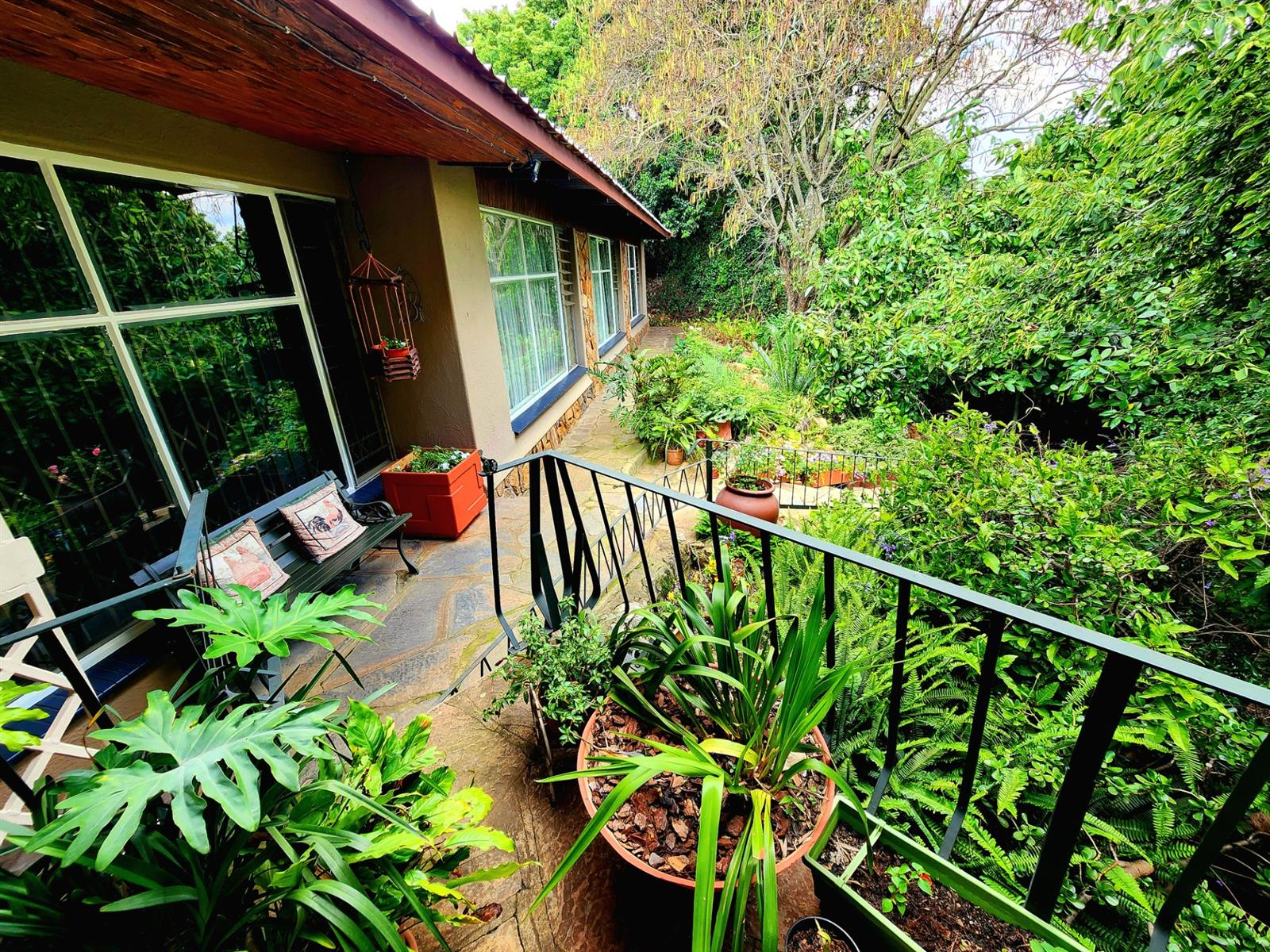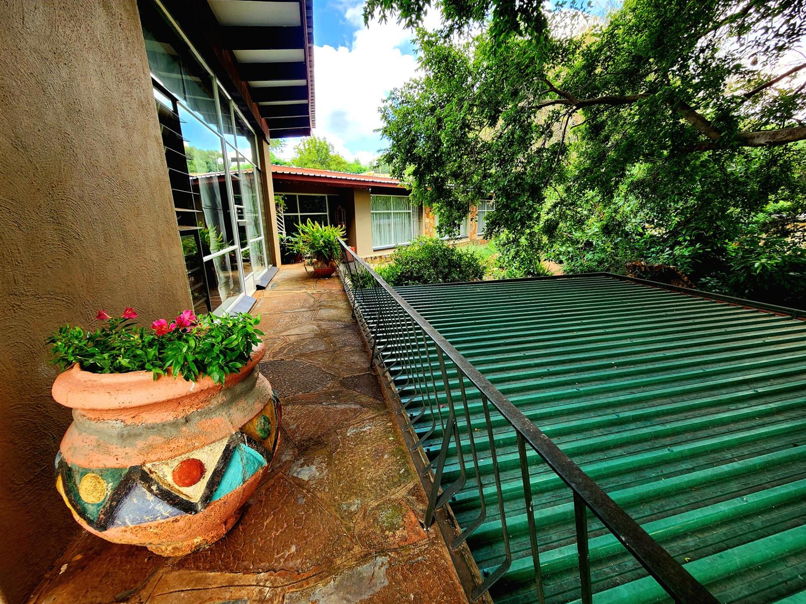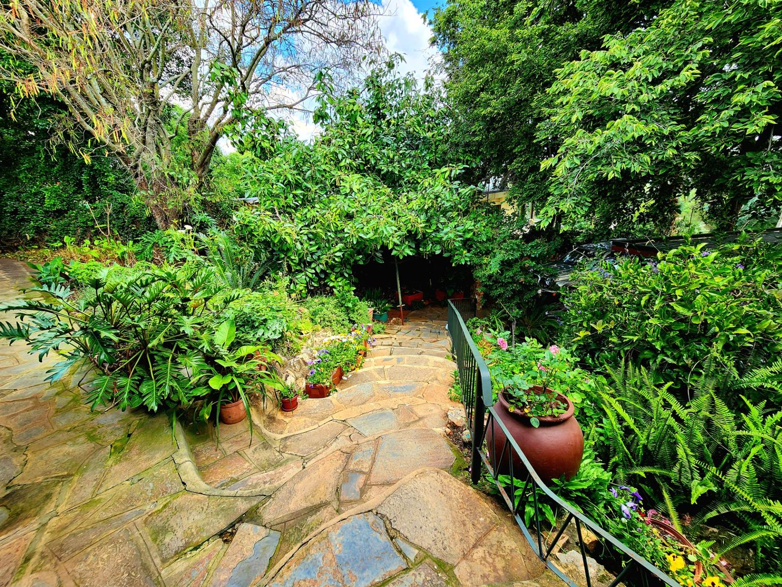 This charming home offers generous space, exotic garden and modern convenience and exceptional comfort. The interior features four bedrooms, two bathrooms (including an en-suite), an inviting entrance hall, two spacious living areas, a dining room, a study and a walk-in linen closet. The kitchen is fitted with a gas stove and is complemented by a separate laundry and pantry. Additional conveniences include a fireplace, pre-paid electricity, a storeroom or domestic room with an outside toilet, plus a double garage and double carport.