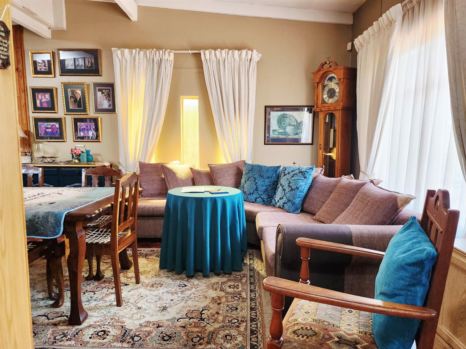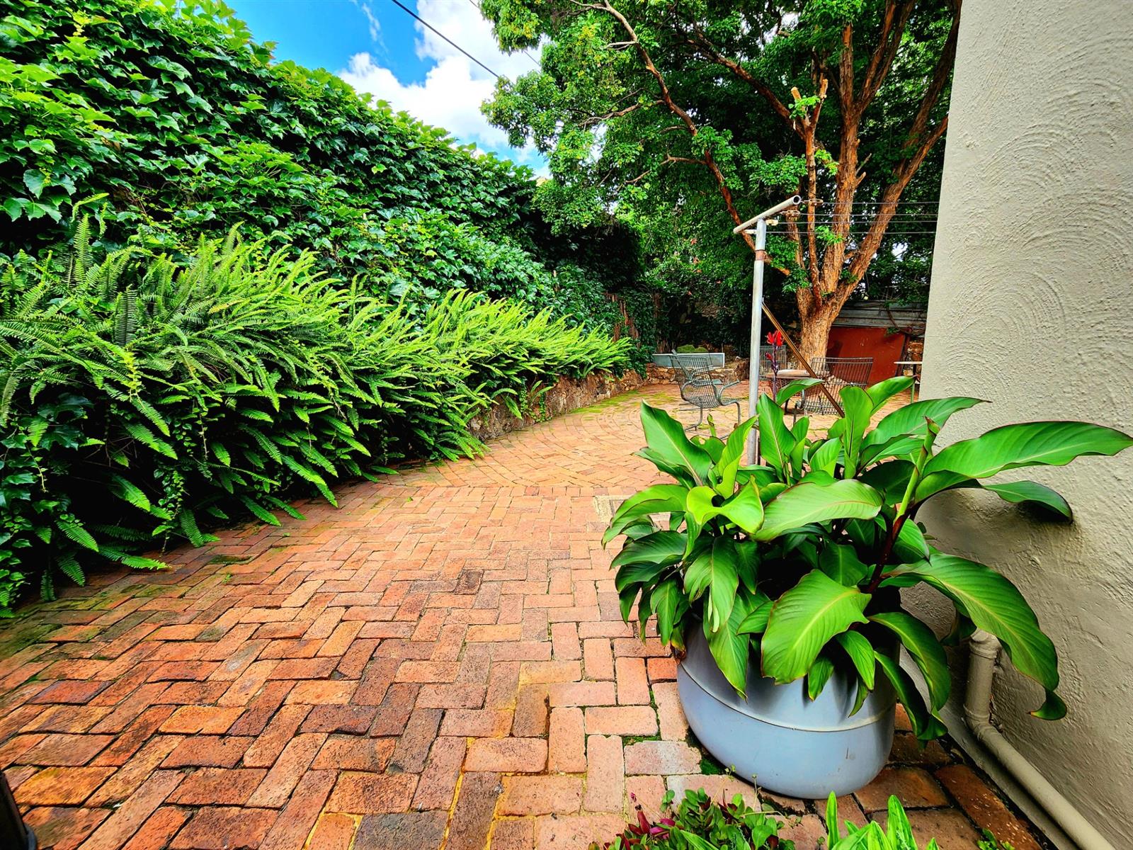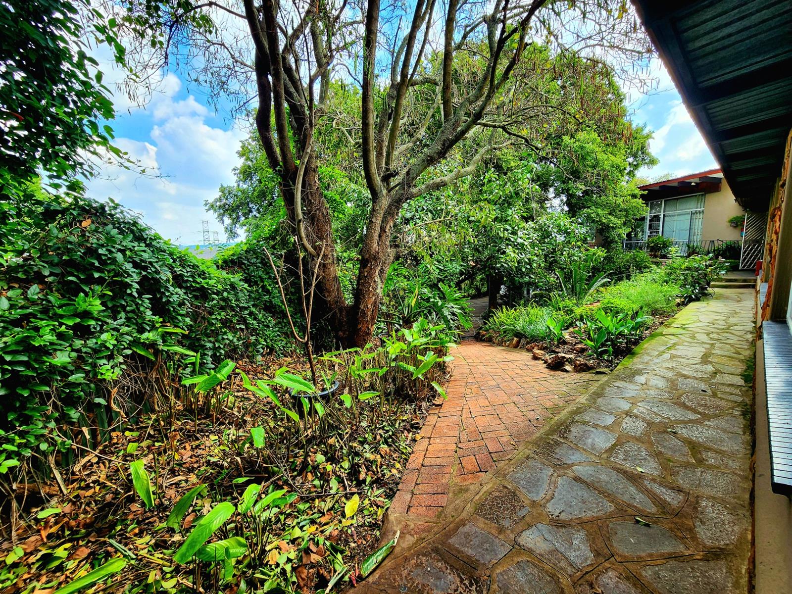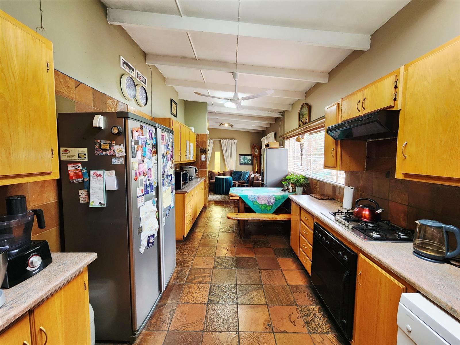 This charming home offers generous space, exotic garden and modern convenience and exceptional comfort. The interior features four bedrooms, two bathrooms (including an en-suite), an inviting entrance hall, two spacious living areas, a dining room, a study and a walk-in linen closet. The kitchen is fitted with a gas stove and is complemented by a separate laundry and pantry. Additional conveniences include a fireplace, pre-paid electricity, a storeroom or domestic room with an outside toilet, plus a double garage and double carport.