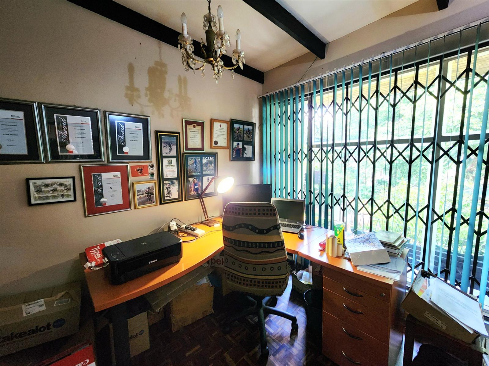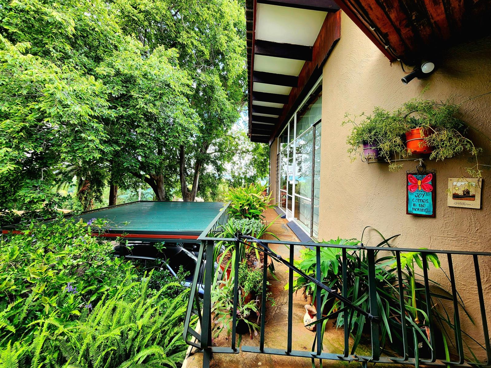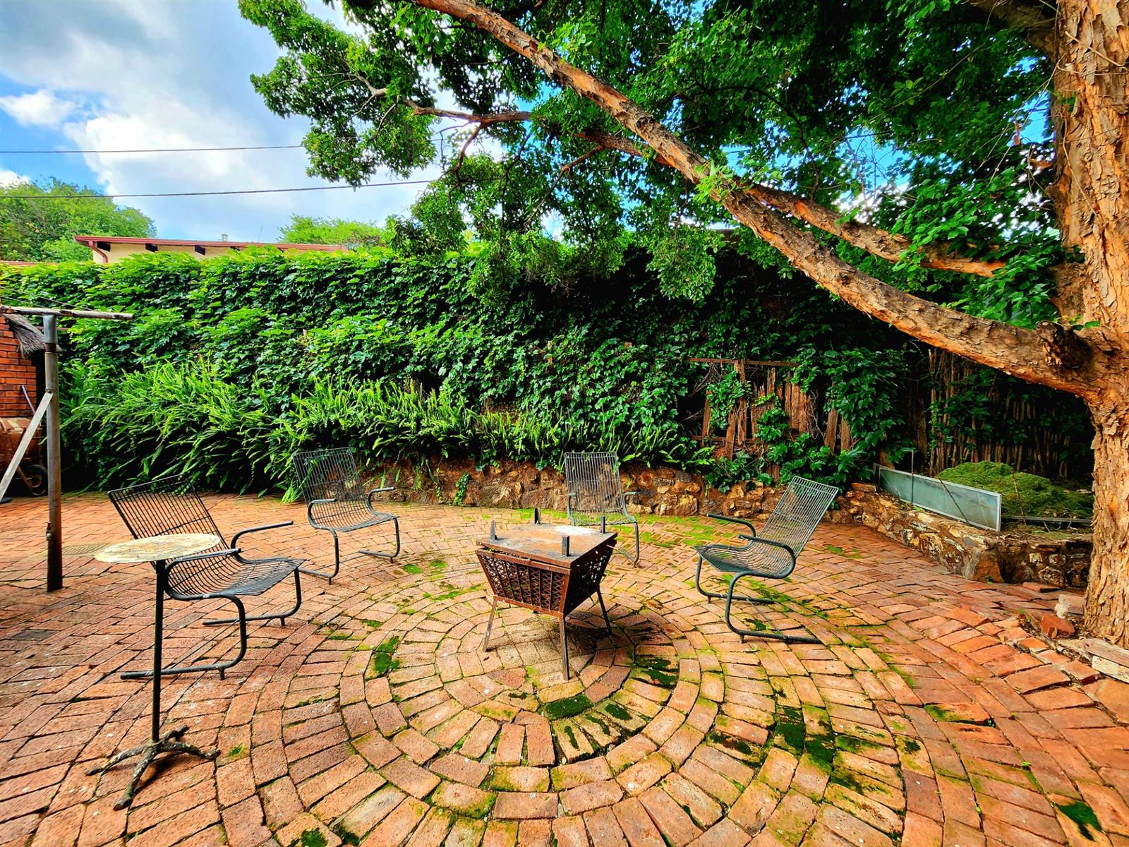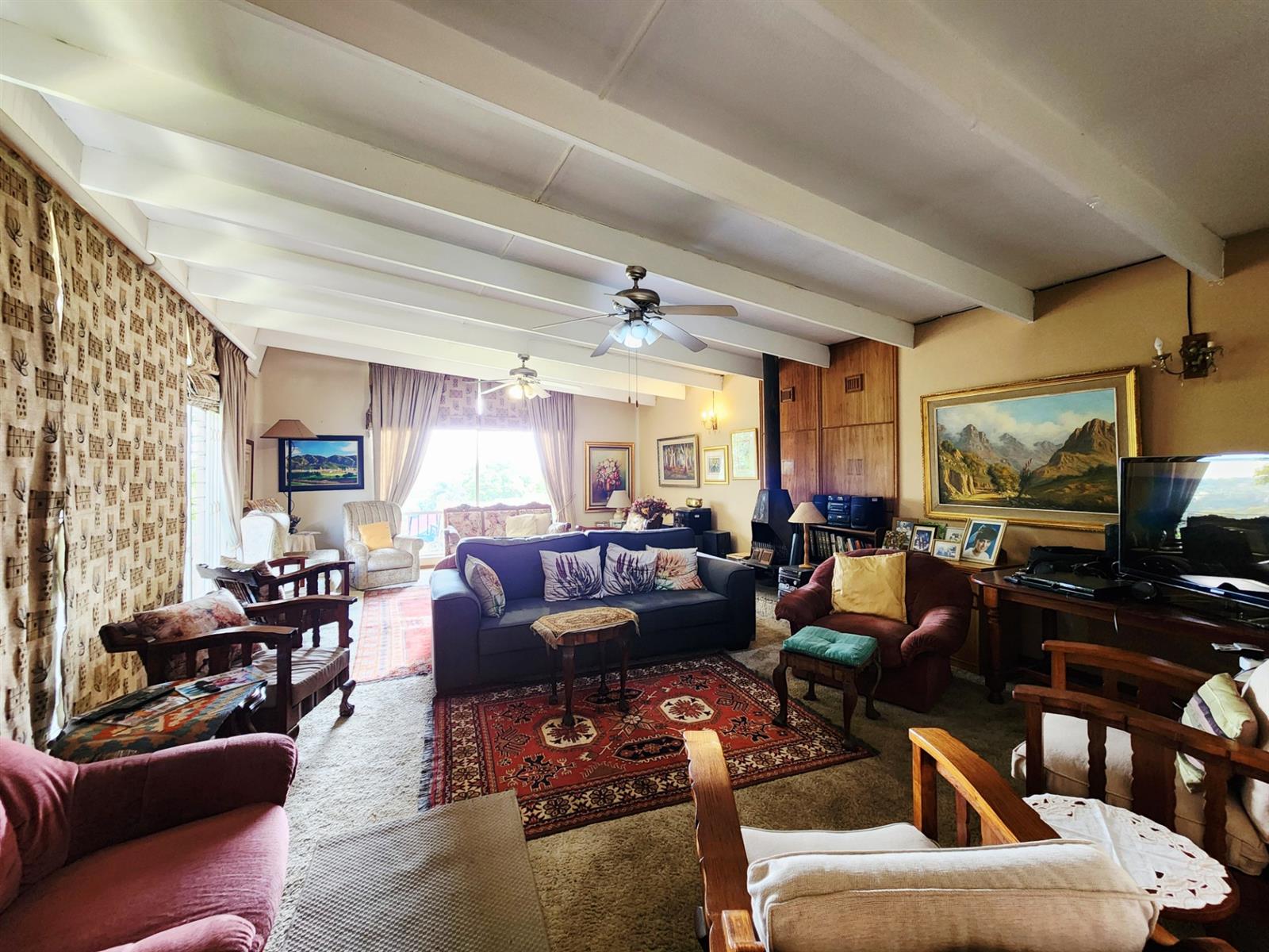 This charming home offers generous space, exotic garden and modern convenience and exceptional comfort. The interior features four bedrooms, two bathrooms (including an en-suite), an inviting entrance hall, two spacious living areas, a dining room, a study and a walk-in linen closet. The kitchen is fitted with a gas stove and is complemented by a separate laundry and pantry. Additional conveniences include a fireplace, pre-paid electricity, a storeroom or domestic room with an outside toilet, plus a double garage and double carport.
