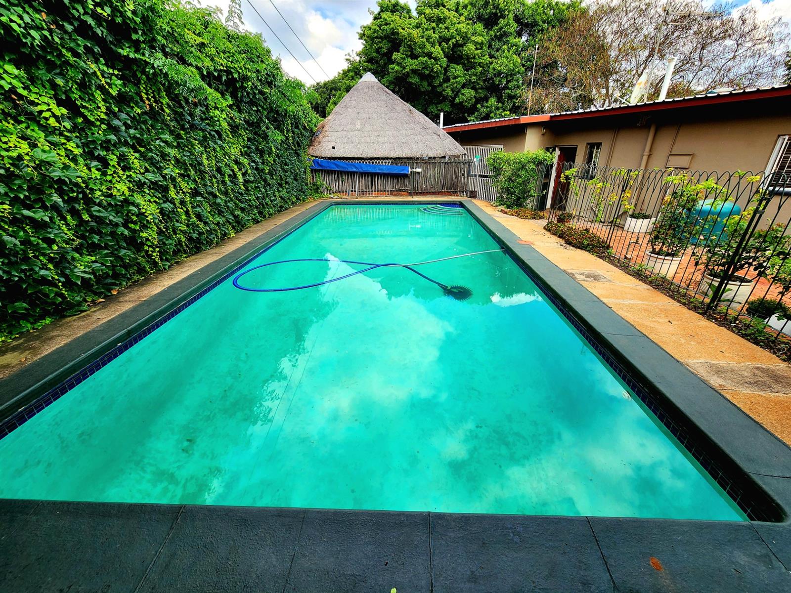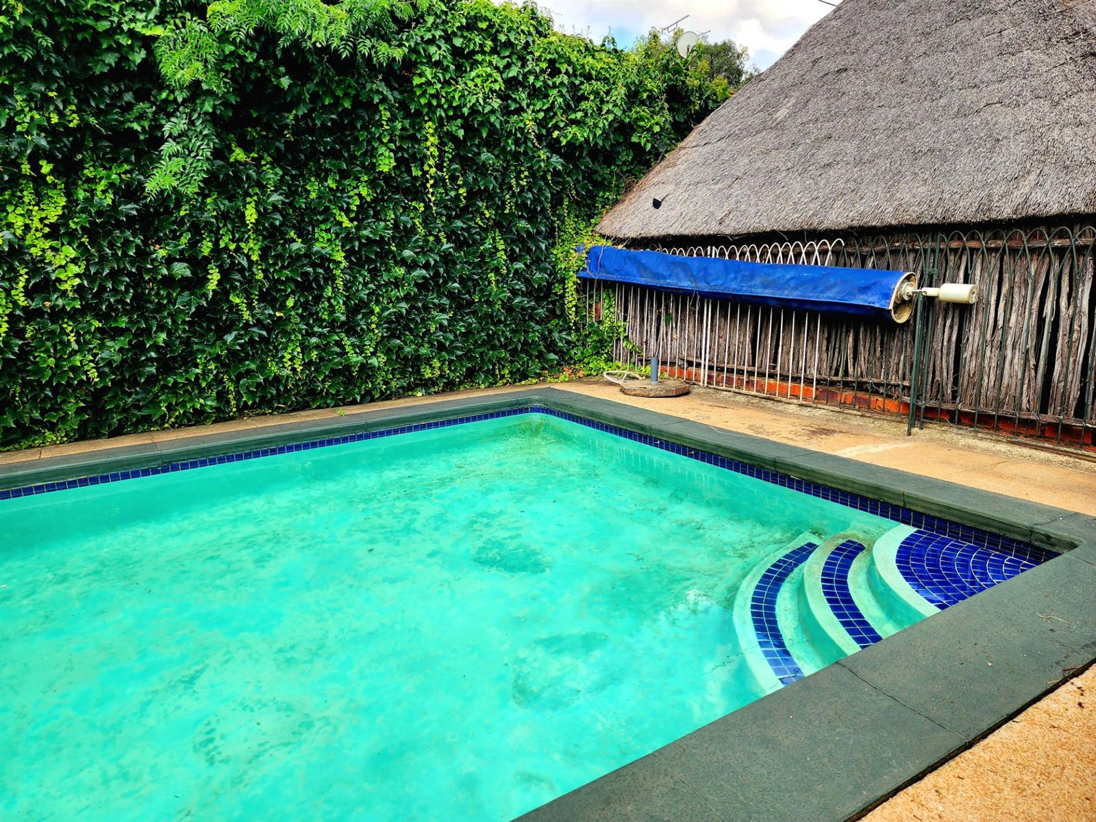 Outside, the property offers excellent entertainment and lifestyle features, including a sparkling swimming pool, a lapa with a braai area, a cozy boma area, a neat garden and a Wendy house. Security is prioritized with an electric fence in front, electric gate and a fitted alarm system. The home is fibre-ready and offers a south-facing aspect, a flat seamless zinc roof, and a blend of tile, wooden block and carpet flooring.