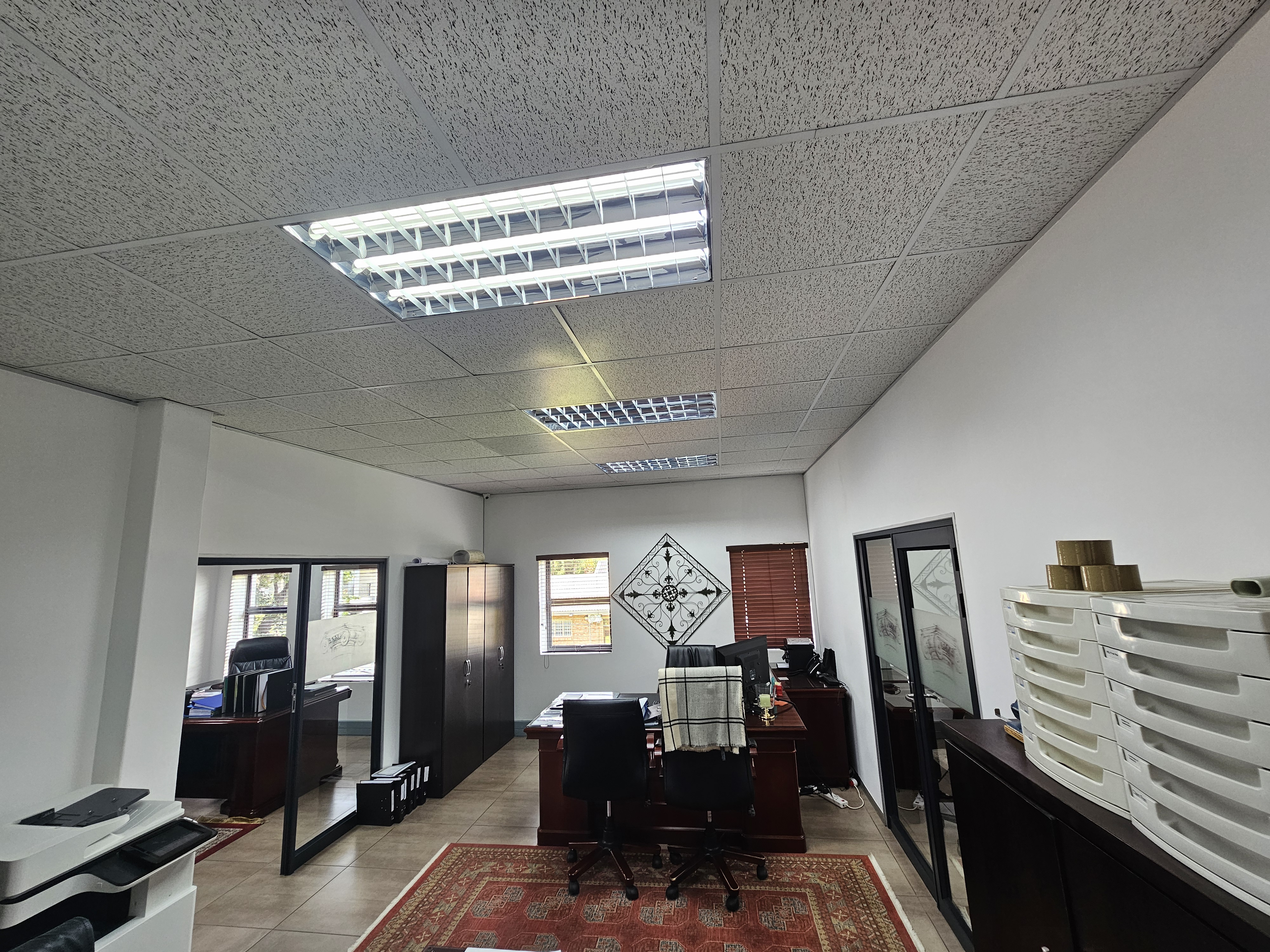 The unit consist of a welcoming reception area, 1 large board room and 2 seperate open plan offices, storeroom with its own kitchen and ablution and patio/balcony. With backup generator.