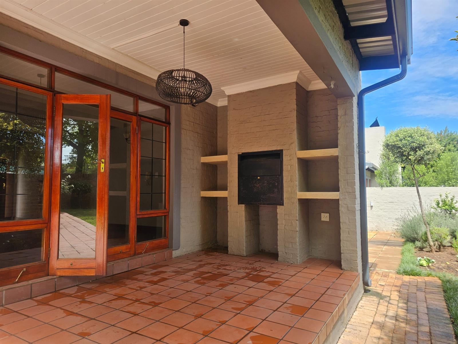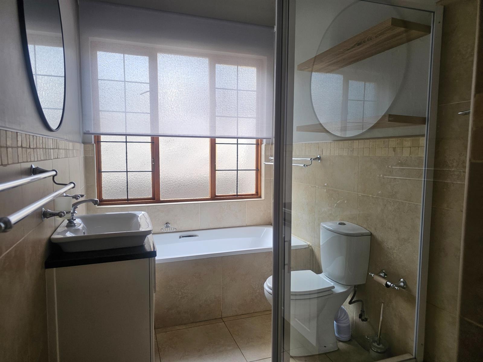Superbly designed for effortless modern living, the open-plan lounge and dining area flow seamlessly onto a private patio with a built-in braai, creating the ideal space for relaxed entertaining. The contemporary kitchen is both elegant and practical, complemented by a separate scullery, while a cozy TV room on the upper level offers a quiet retreat for family time.