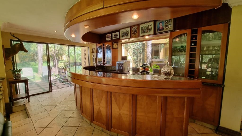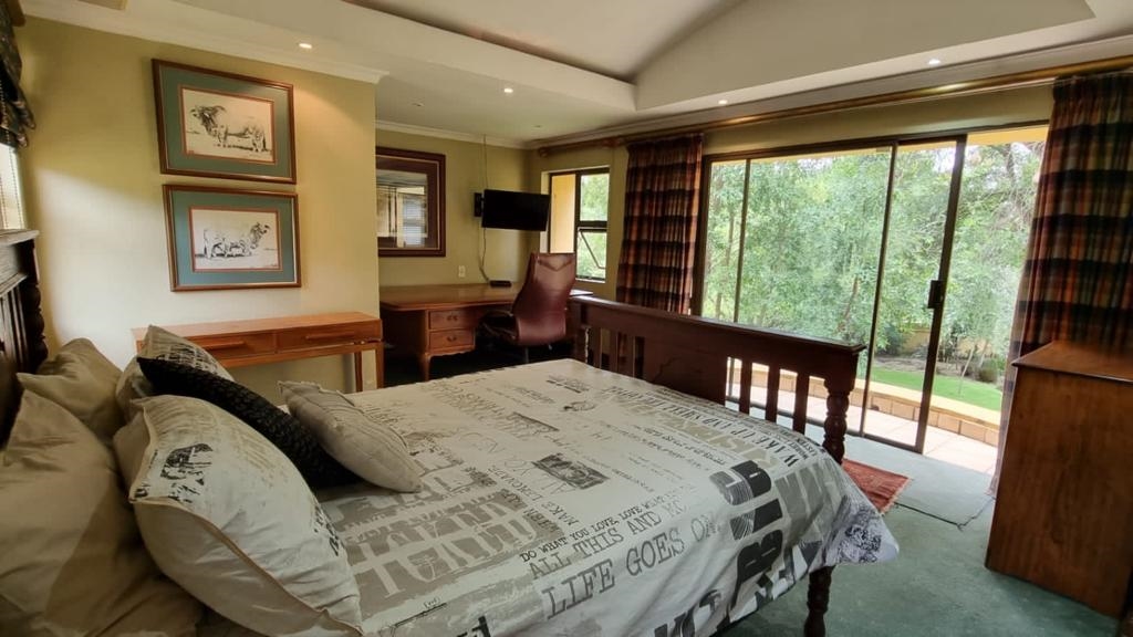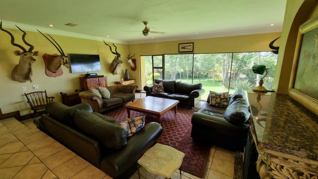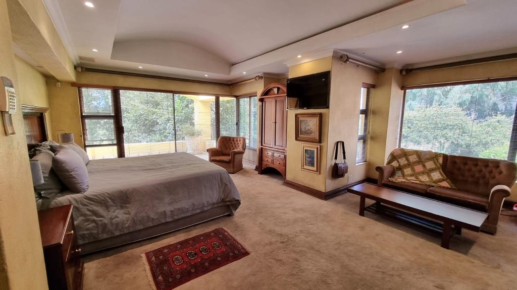 The colossal erf, with access to, and amazing view of the Golf Course, has manicured gardens, water features, Koi dam, outside boma area for family gatherings! There is also a covered entertainment area - great for serving breakfast in the fresh air!