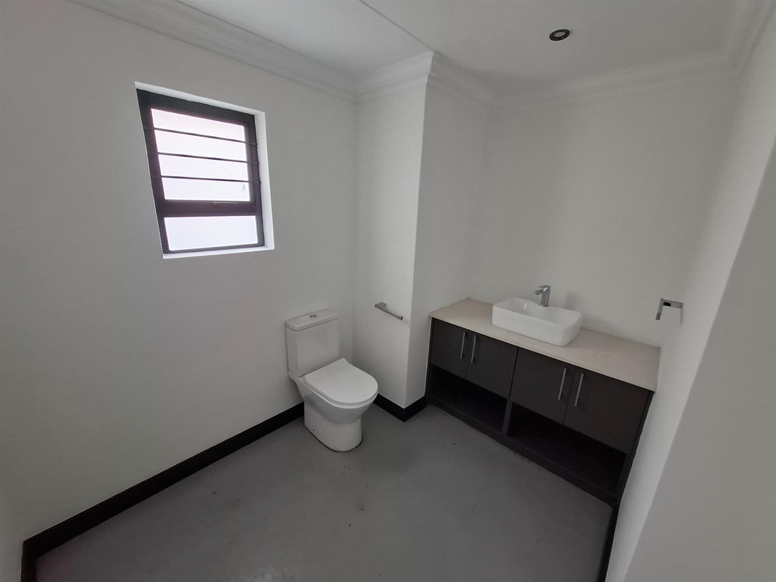 The kitchen is a modern masterpiece, finished in chic grey tones with Caesarstone countertops, a gas oven, and a centre island perfect for family gatherings. A combined scullery and laundry add practicality, while a stylish guest cloakroom is tucked away downstairs. With aluminium windows and doors throughout, durability and elegance are guaranteed.