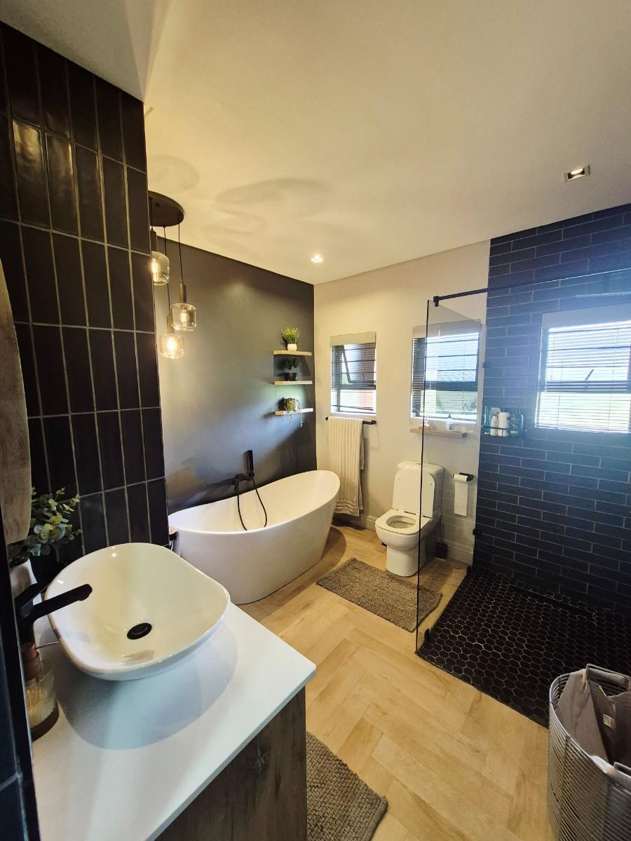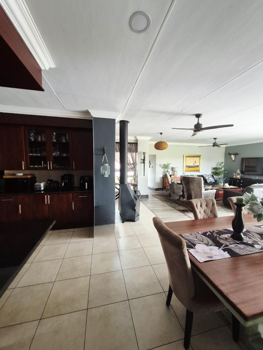 All four spacious bedrooms open out onto a covered stoep through sliding doors—perfect for enjoying early-morning coffee with views of the dam or watching the sunset in complete tranquillity. The home also offers three modern bathrooms and a private office, ideal for working from home.