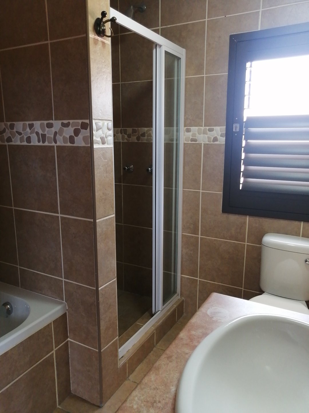 The lounge, dining area is open plan with a fitted kitchen. The living area opens onto a large covered balcony that can be totally enclosed with stack shutters.
