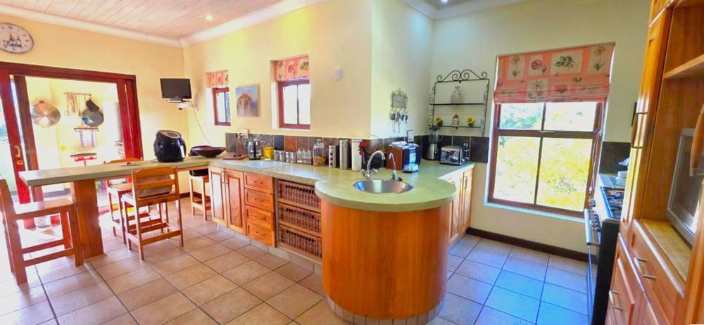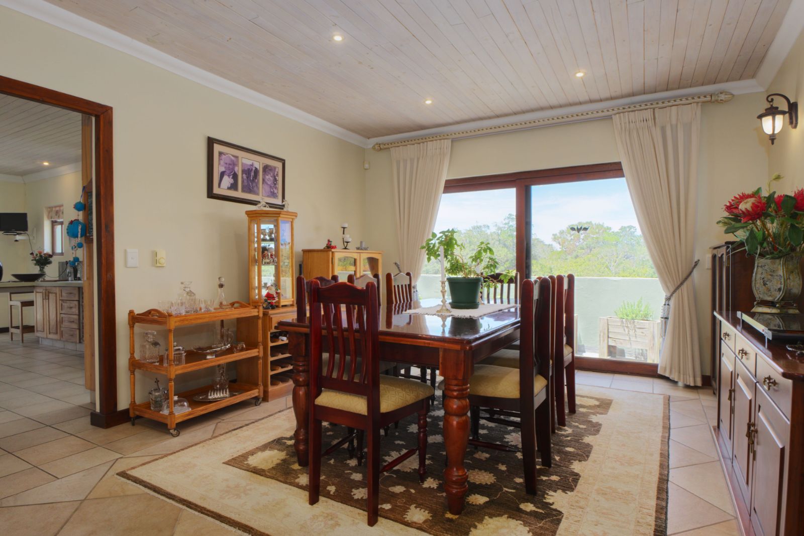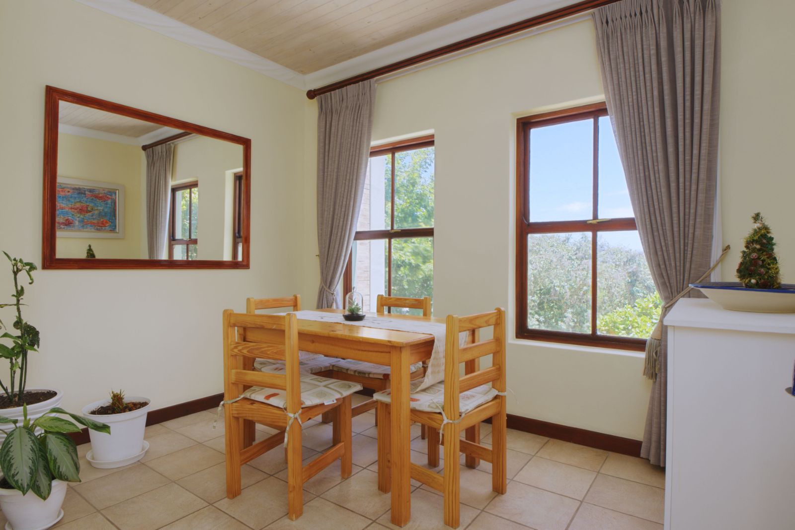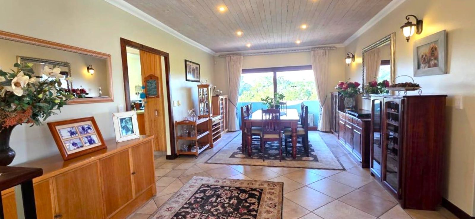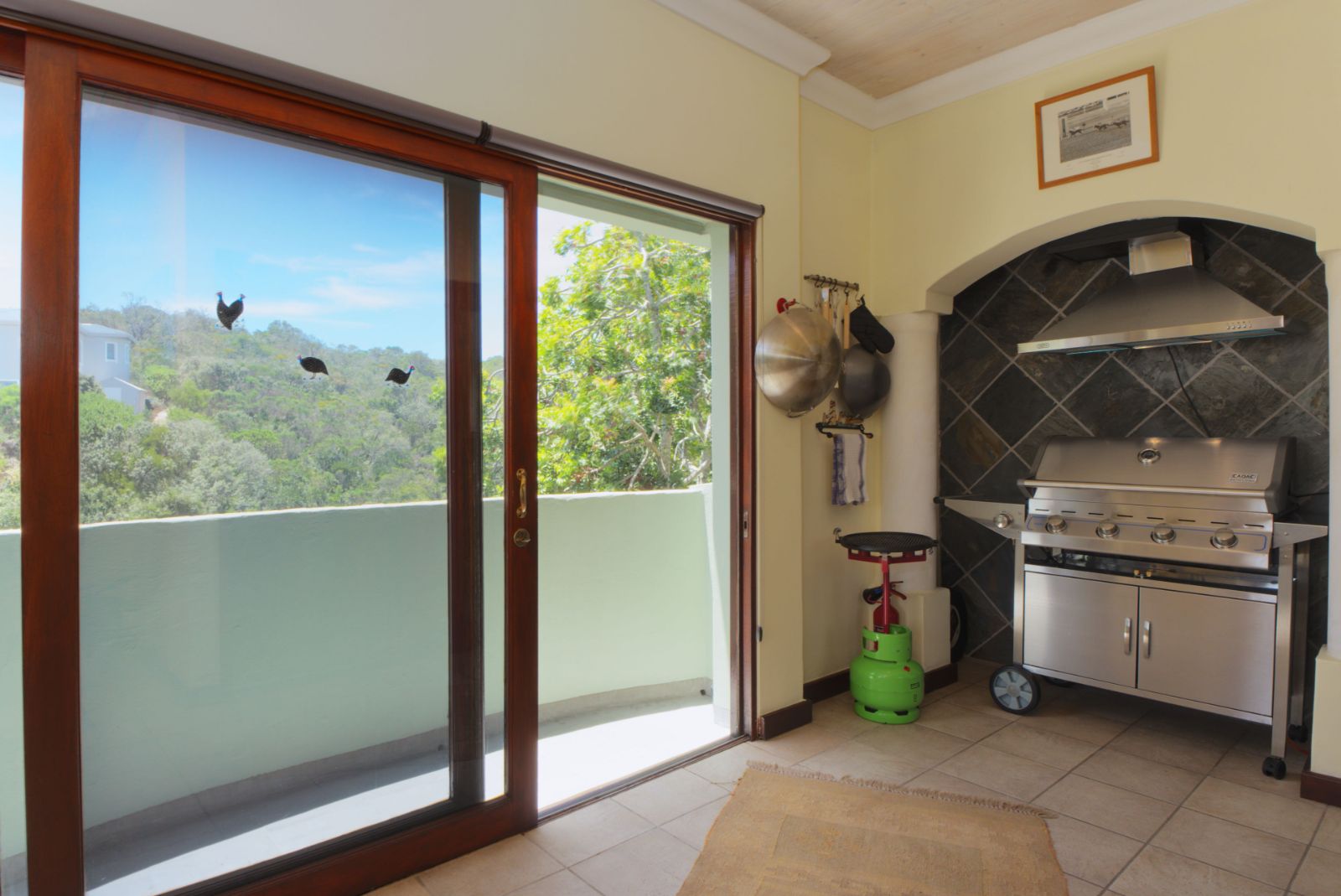 Flowing from the kitchen is a BREAKFAST ROOM and enclosed balcony featuring a built-in braai and a sunrise viewing deck – perfect for your morning sunrise coffee and space to enjoy the beauty of your garden and view.