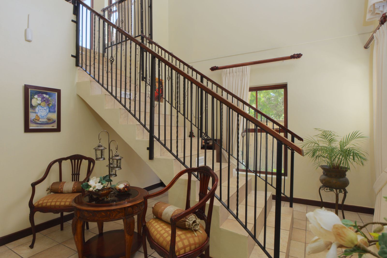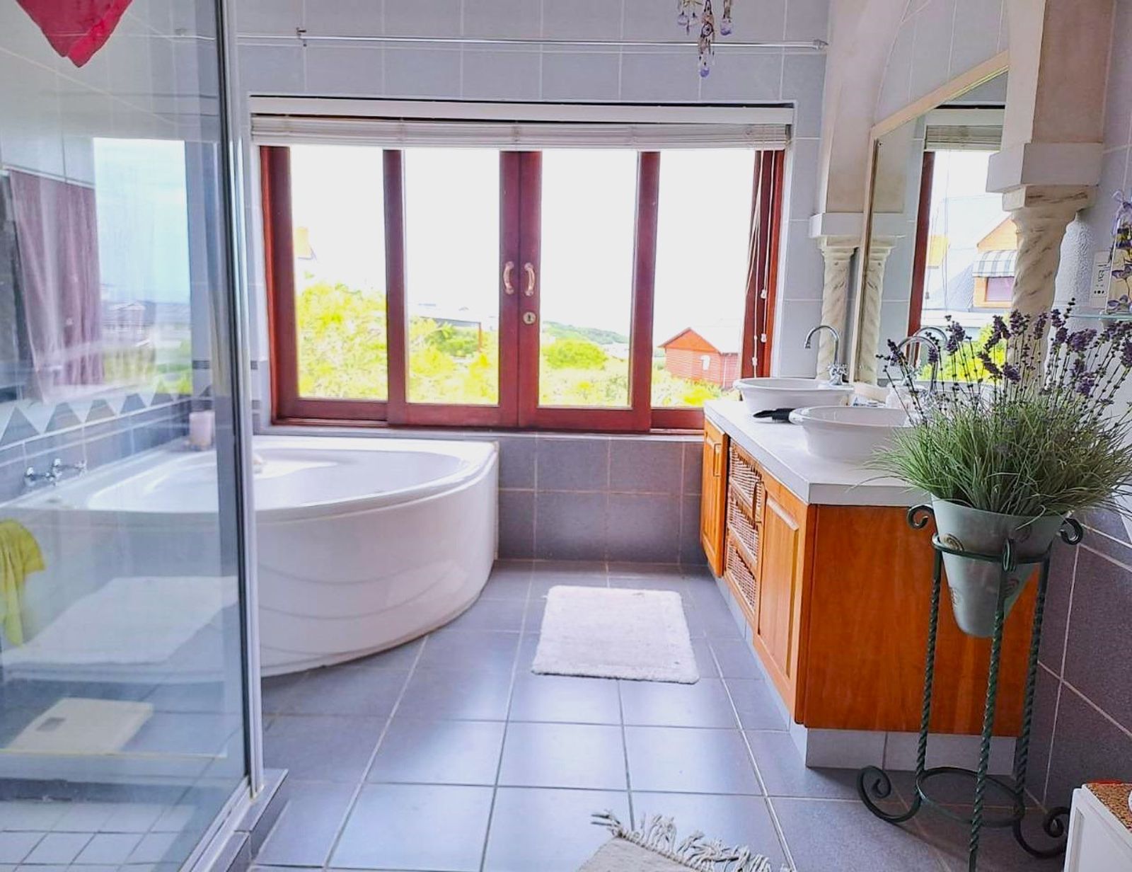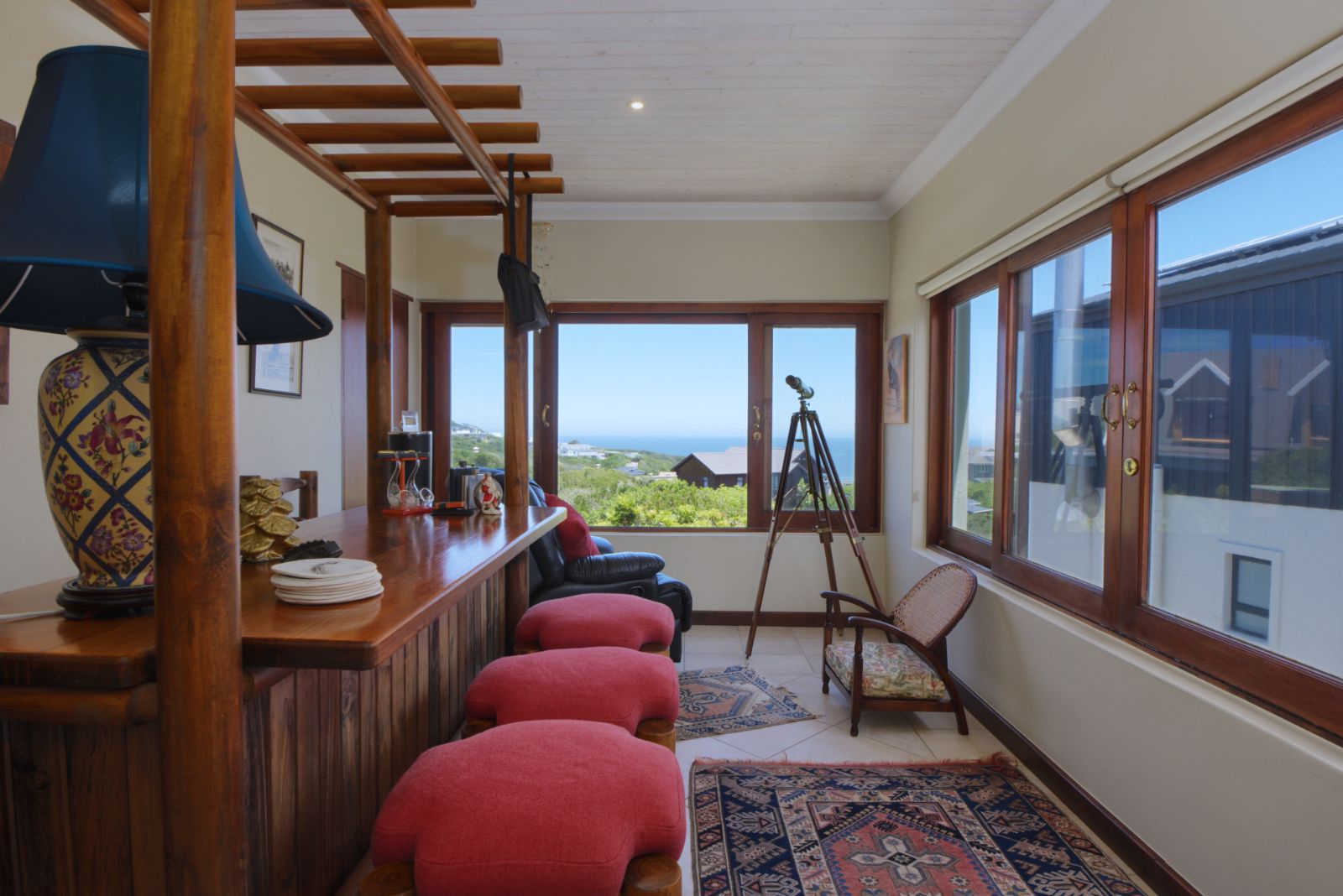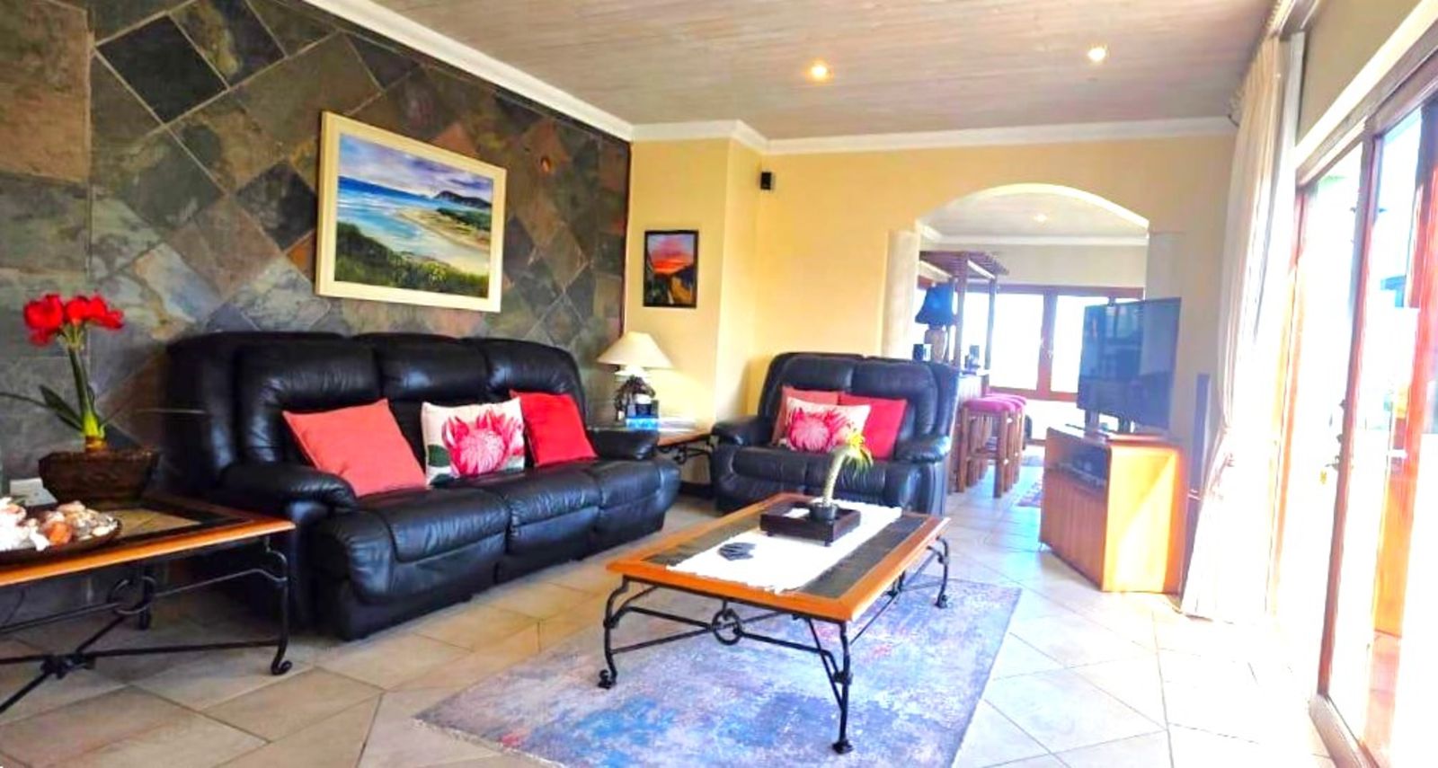Flowing from the kitchen is a BREAKFAST ROOM and enclosed balcony featuring a built-in braai and a sunrise viewing deck – perfect for your morning sunrise coffee and space to enjoy the beauty of your garden and view.