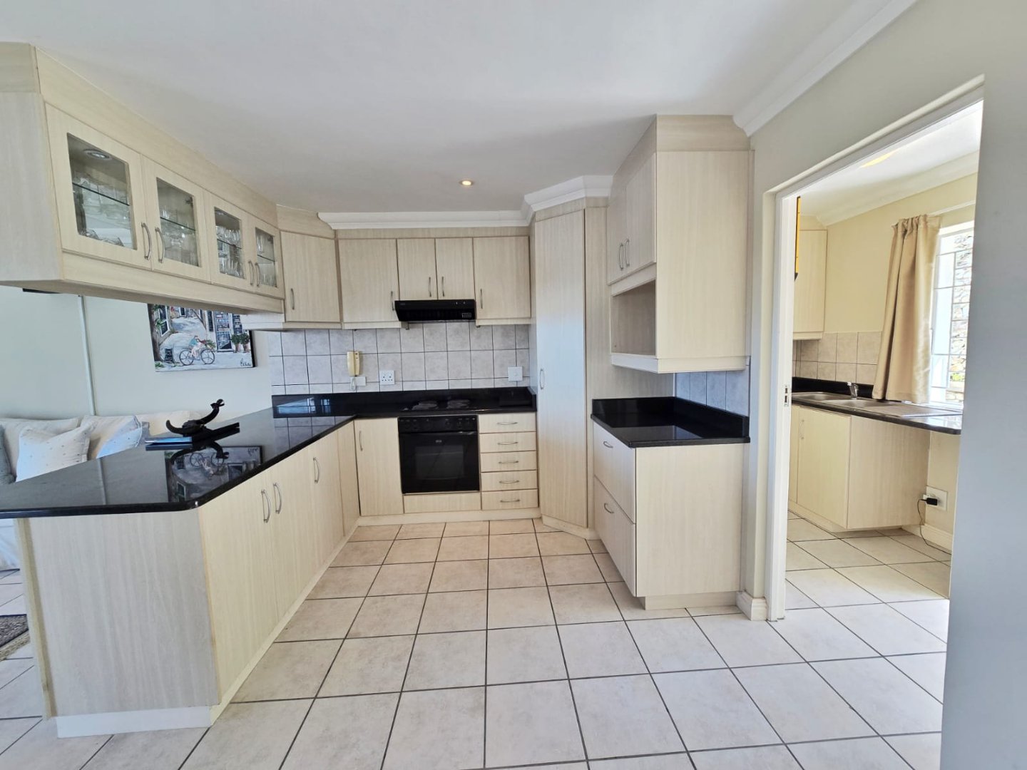 The entire ground level is a rare luxury in a coastal townhouse, offering extensive garaging and storage with automated access — ideal for vehicles, water sports equipment, bicycles, and all the extras that come with beachside living. It’s practical, secure, and designed for convenience. The main living level is where this home truly shines. A light-filled open-plan living area flows seamlessly into a sleek granite-topped kitchen with abundant cabinetry and clean modern finishes. The separate scullery, complete with double sink and space for two appliances, keeps the main space uncluttered while leading out to a private rear courtyard with an outdoor shower and direct road access — a thoughtful feature that makes post-beach rinses and grocery unloading effortless. A 5kW inverter with battery assist adds valuable peace of mind and energy efficiency. One of the home’s most desirable features is the expansive wraparound patio, fully enclosed with large sliding windows and roll-down blinds. This creates a versatile all-season entertainment lounge bathed in natural light — perfect for relaxed breakfasts, remote working, or evening gatherings regardless of the weather. Unusually for the complex, this residence also offers a guest toilet on the living level, enhancing comfort for visitors. Situated within sought-after Milkwood Ridge, this layout stands out.
