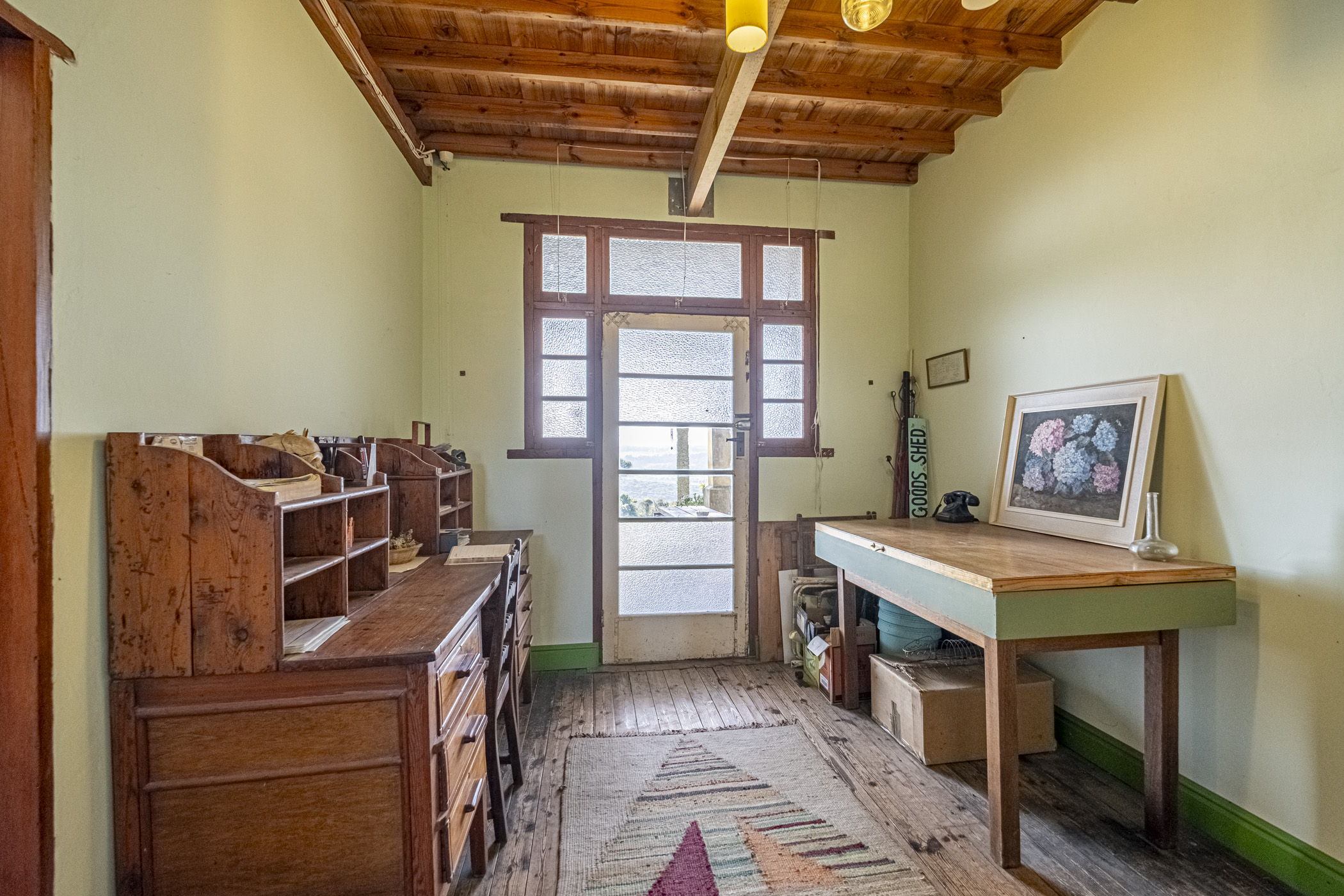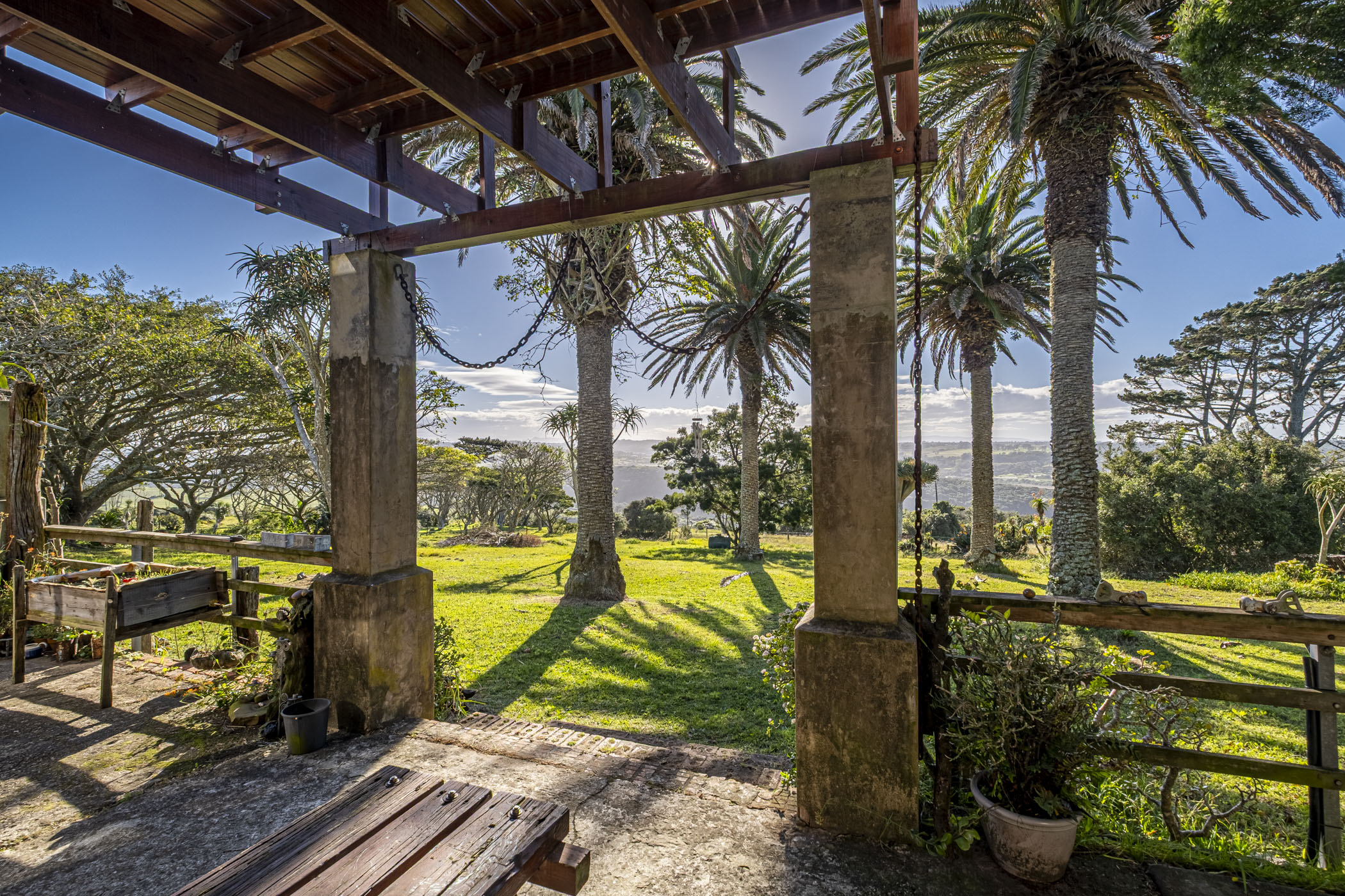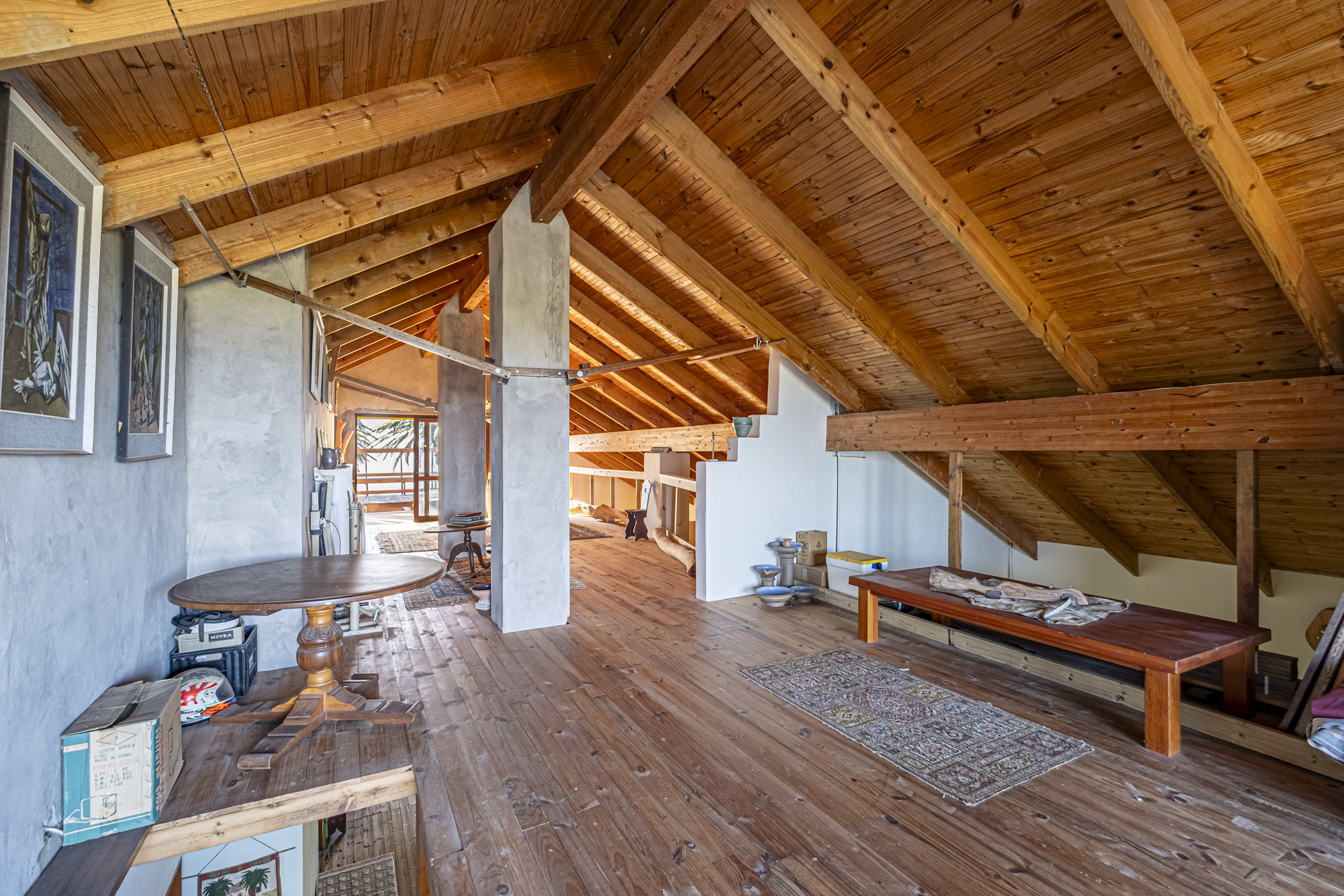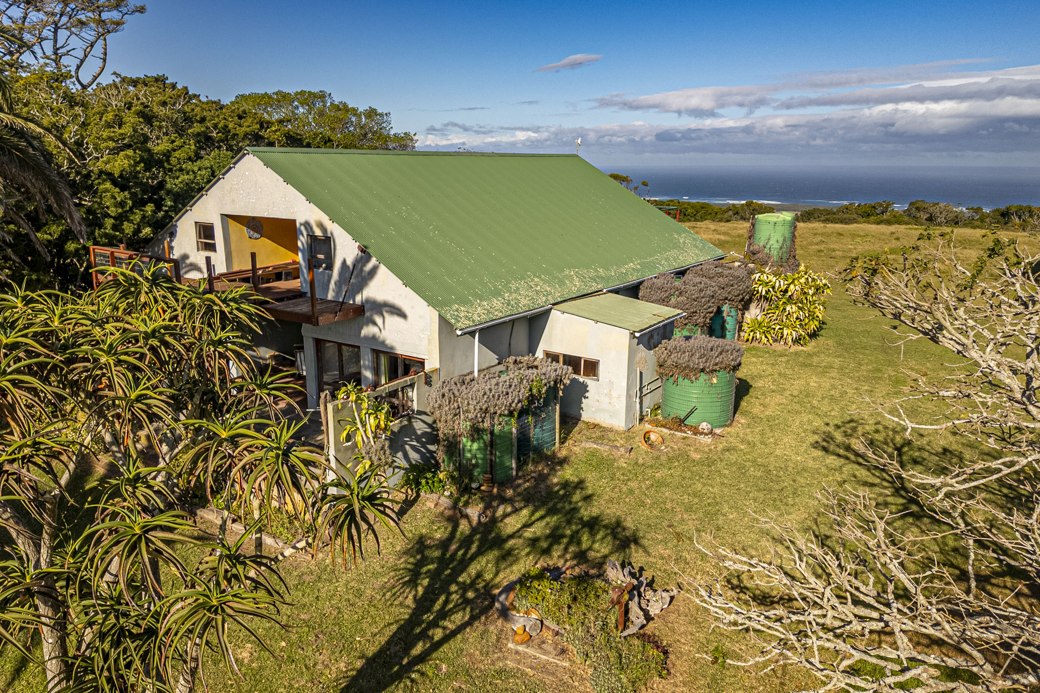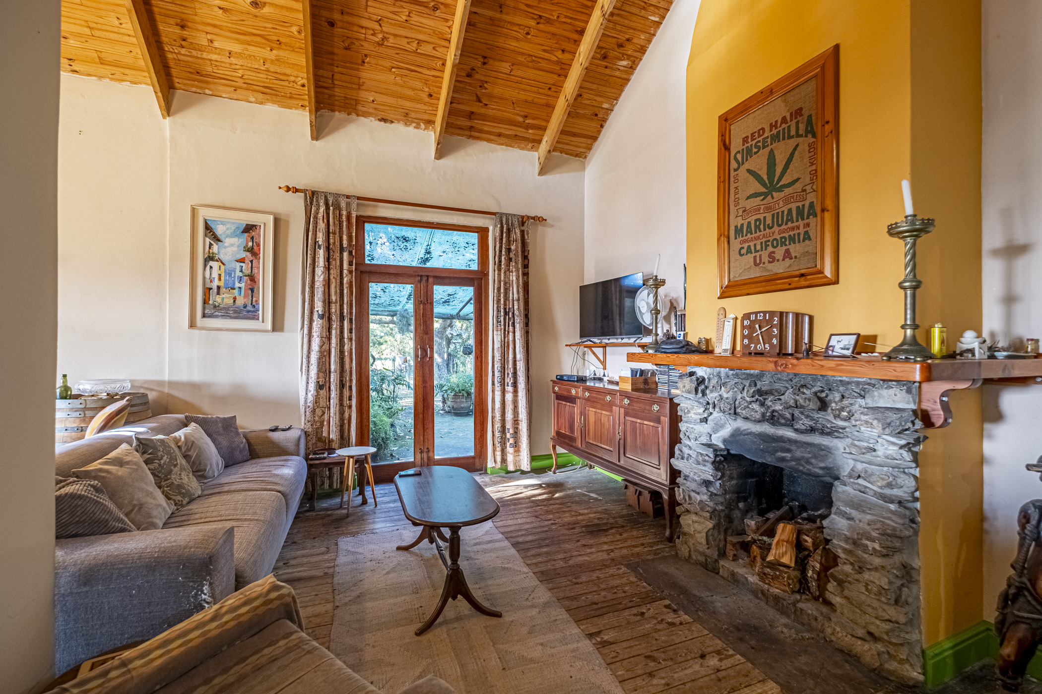 Originally built in 1912 as a stockman’s cottage on Buffelsfontein Farm, and lovingly expanded in 1946 with reclaimed English timber, the home is a rich tapestry of heritage and heart. The current owners, who have cherished this property since 1980, completed a sensitive renovation, adding a mezzanine level and a new roof while preserving the original charm. The result is a home of high ceilings, warm acoustics, and large timber decks that open out to sweeping views of mountain, forest, lake, and sea—where even whales can sometimes be spotted, and the distant roar of the ocean heard.
