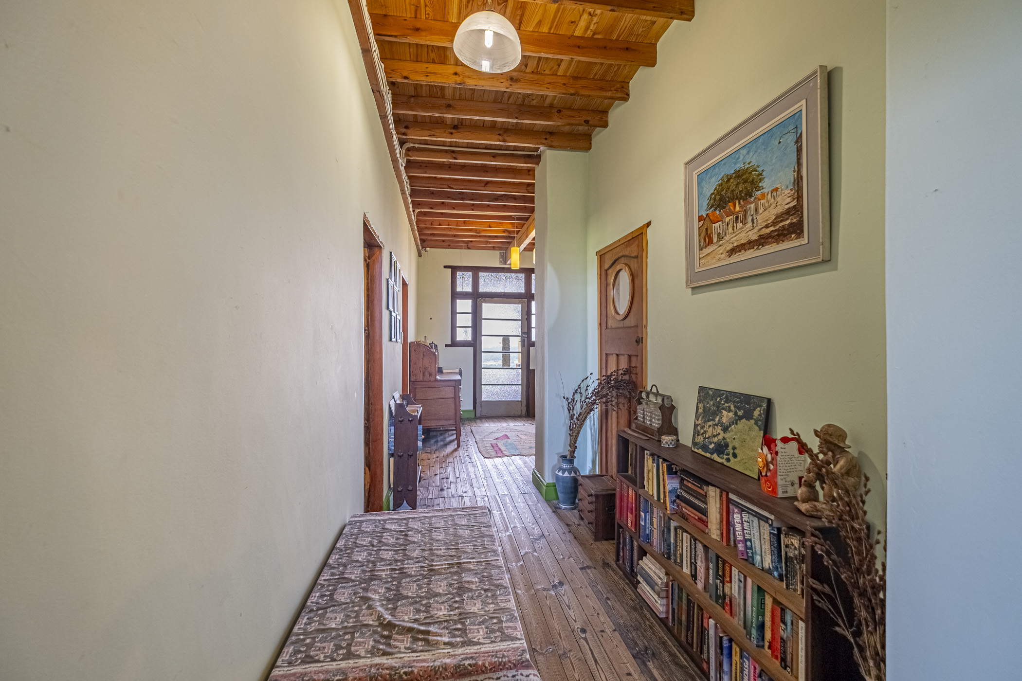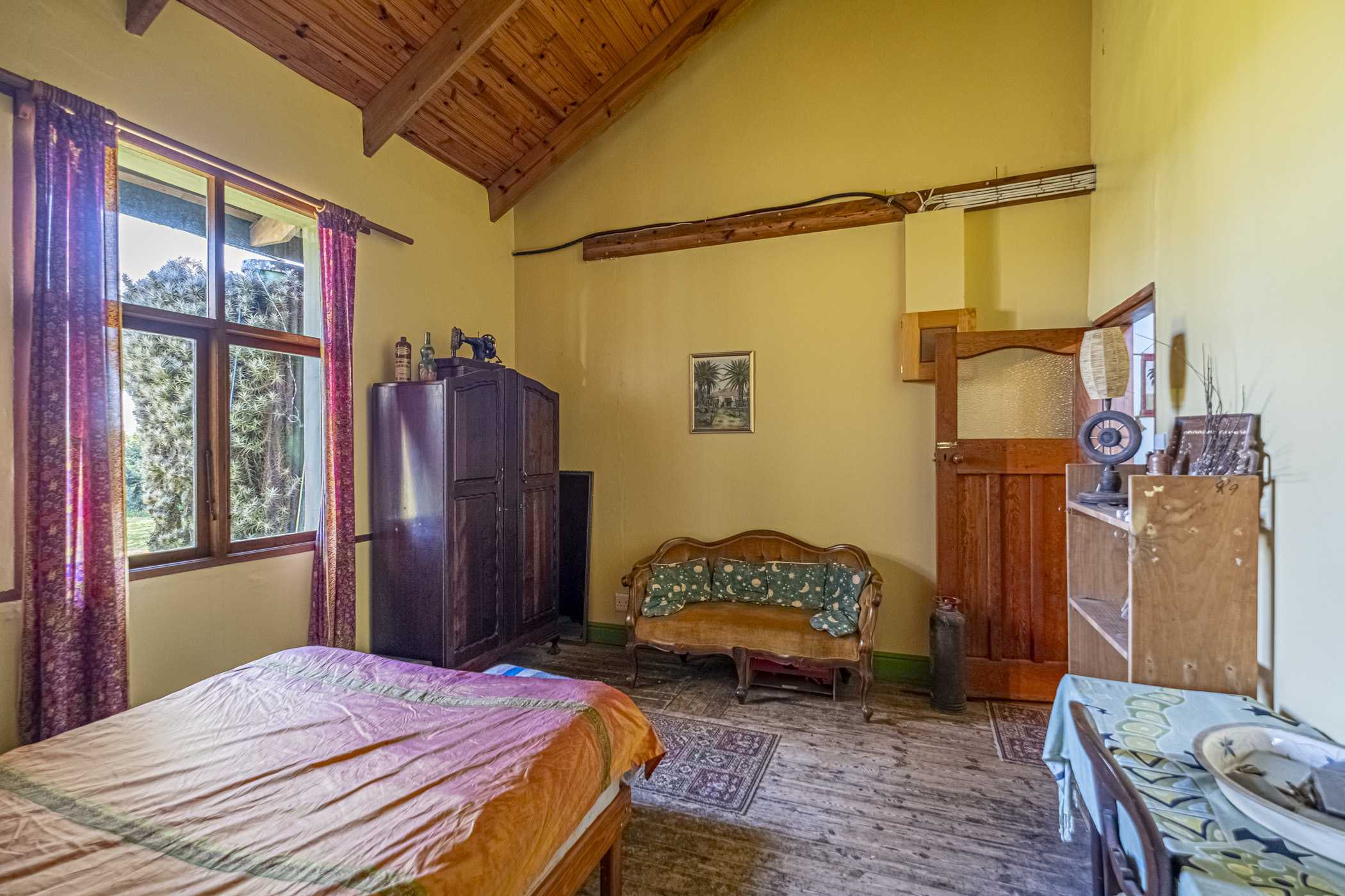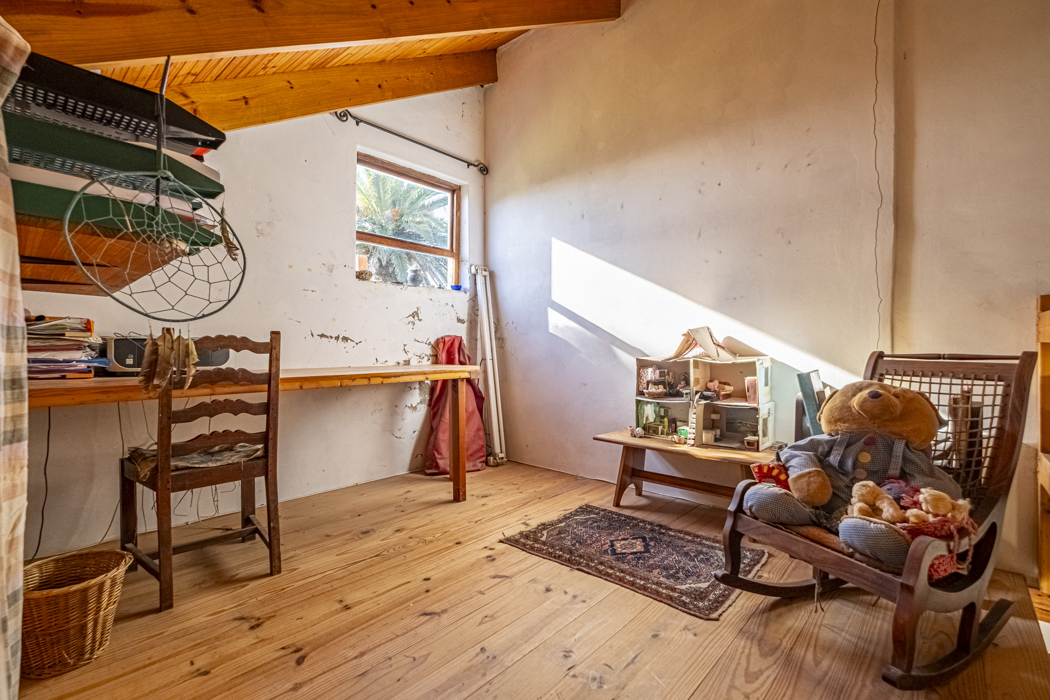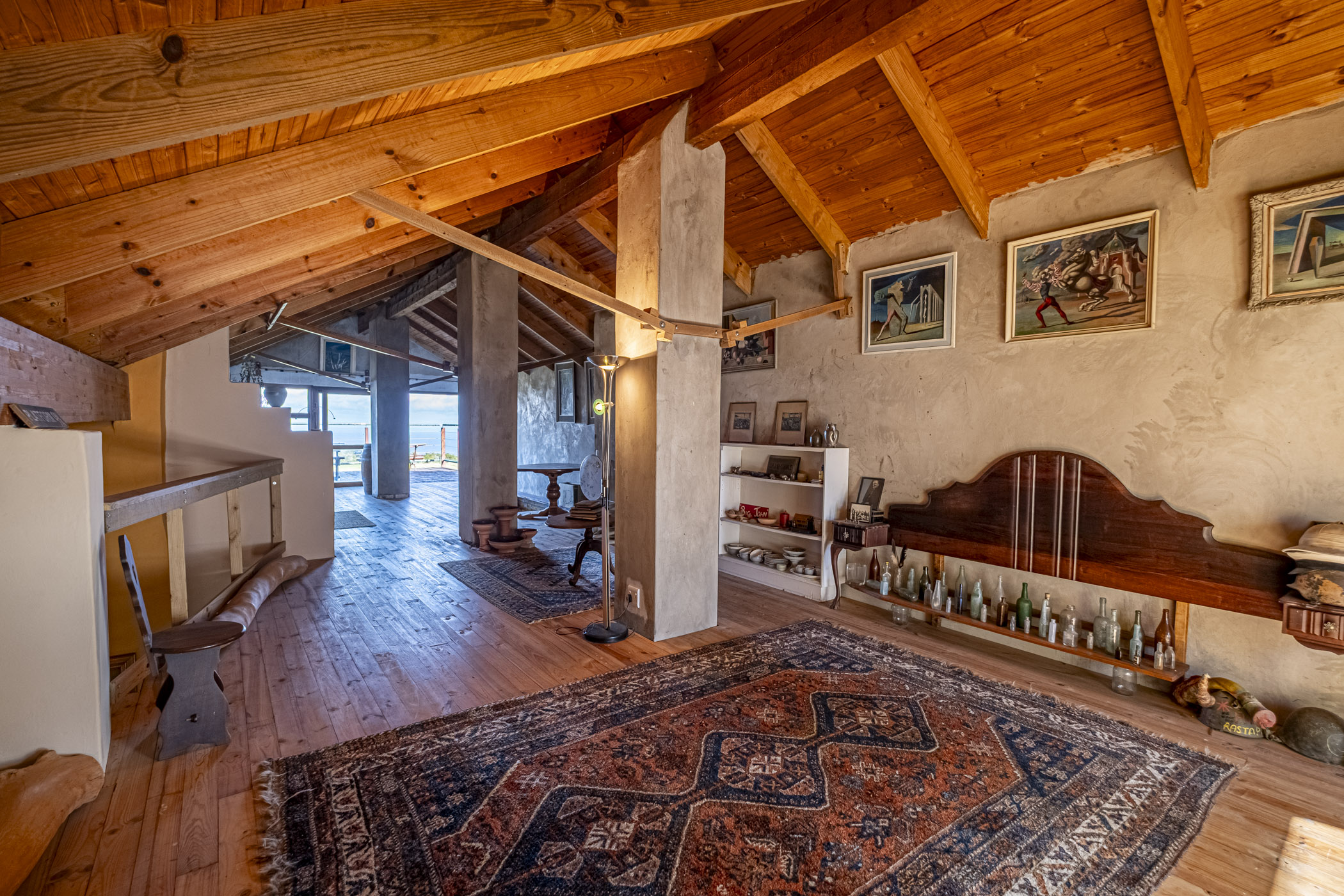Originally built in 1912 as a stockman’s cottage on Buffelsfontein Farm, and lovingly expanded in 1946 with reclaimed English timber, the home is a rich tapestry of heritage and heart. The current owners, who have cherished this property since 1980, completed a sensitive renovation, adding a mezzanine level and a new roof while preserving the original charm. The result is a home of high ceilings, warm acoustics, and large timber decks that open out to sweeping views of mountain, forest, lake, and sea—where even whales can sometimes be spotted, and the distant roar of the ocean heard.