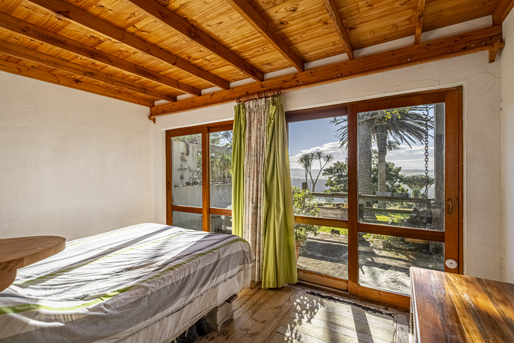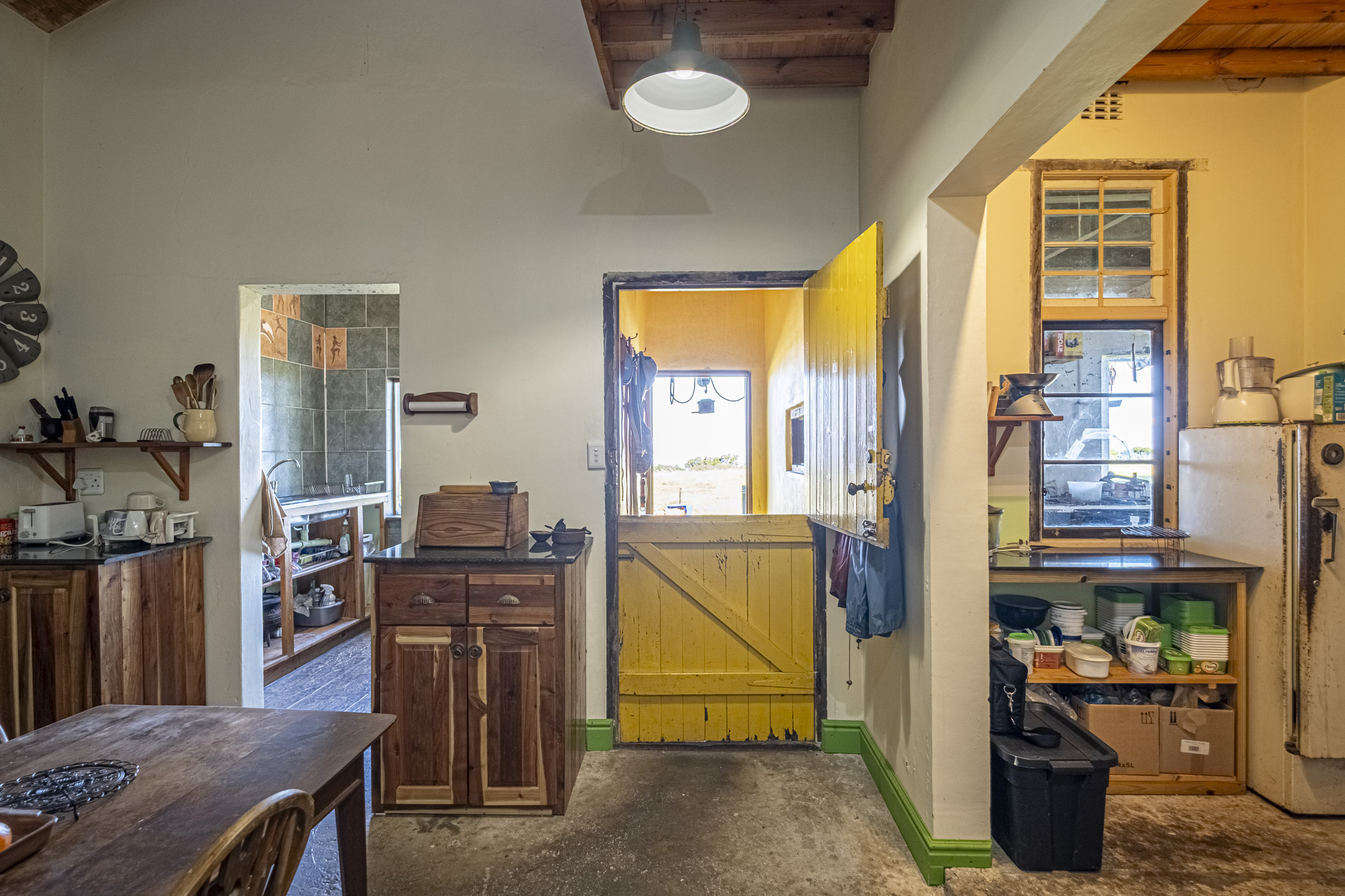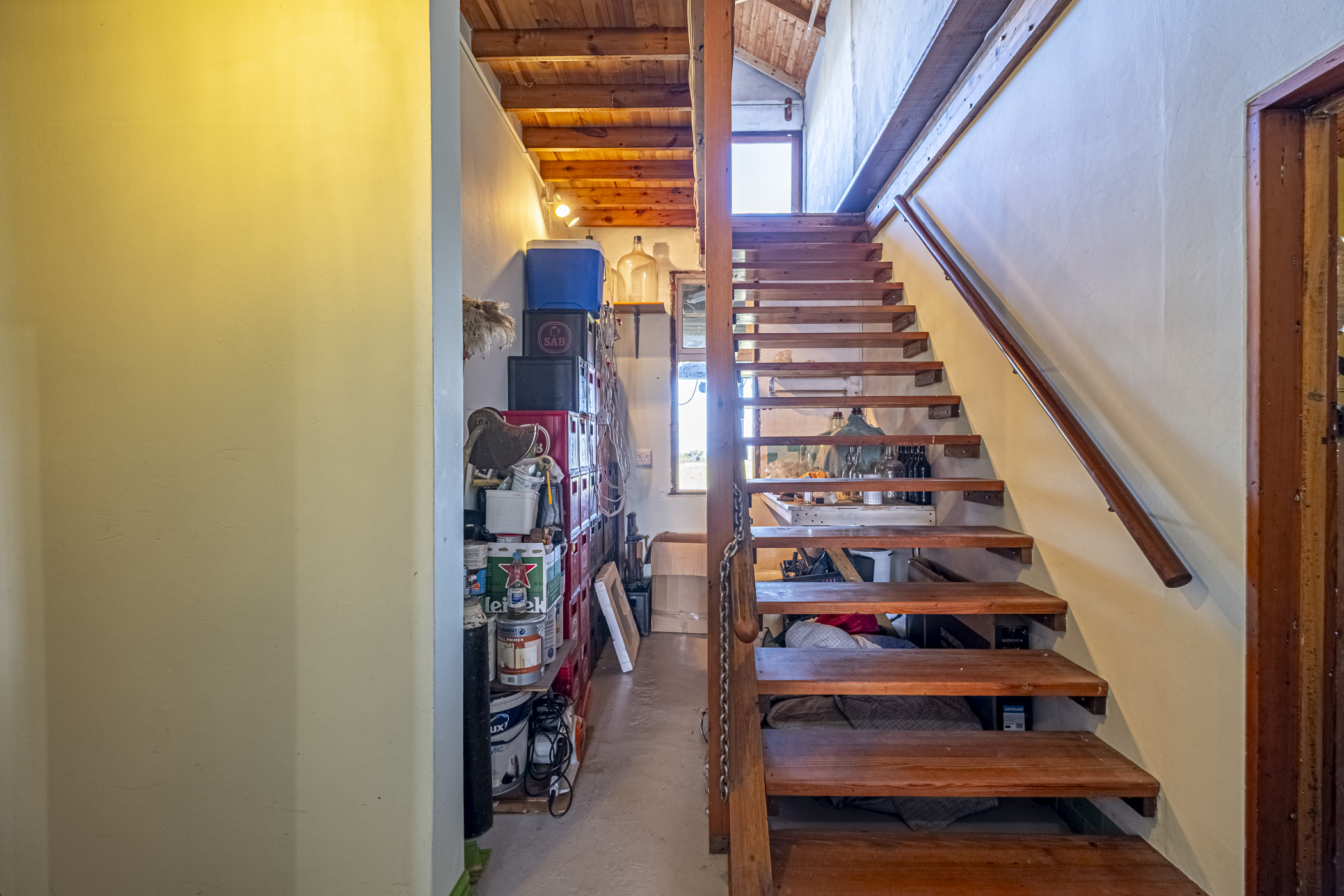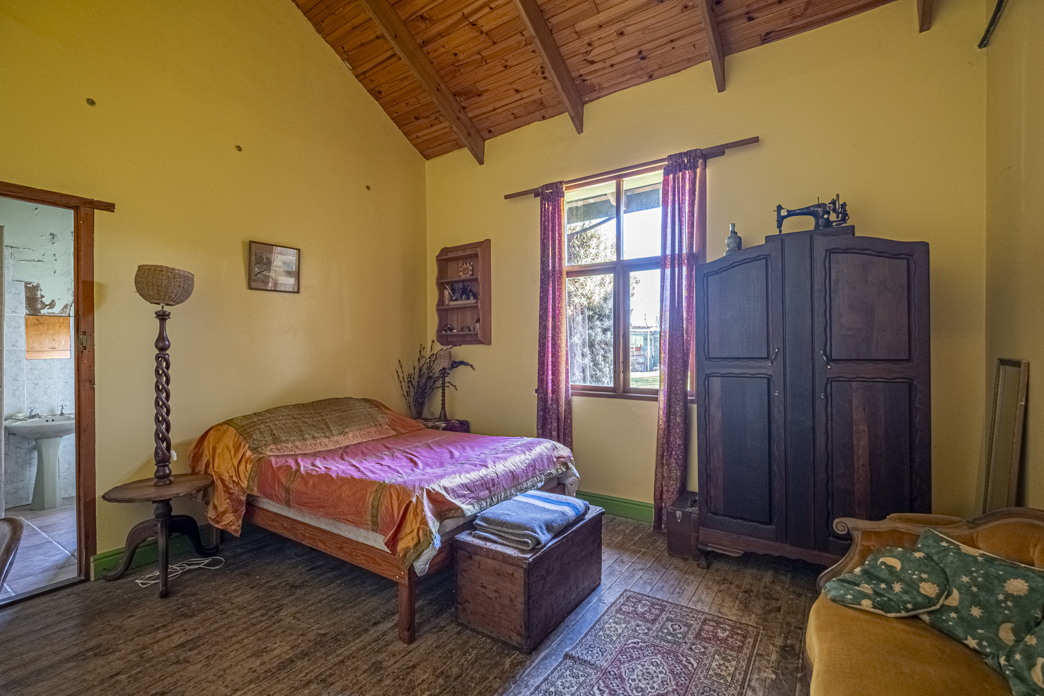 Originally built in 1912 as a stockman’s cottage on Buffelsfontein Farm, and lovingly expanded in 1946 with reclaimed English timber, the home is a rich tapestry of heritage and heart. The current owners, who have cherished this property since 1980, completed a sensitive renovation, adding a mezzanine level and a new roof while preserving the original charm. The result is a home of high ceilings, warm acoustics, and large timber decks that open out to sweeping views of mountain, forest, lake, and sea—where even whales can sometimes be spotted, and the distant roar of the ocean heard.