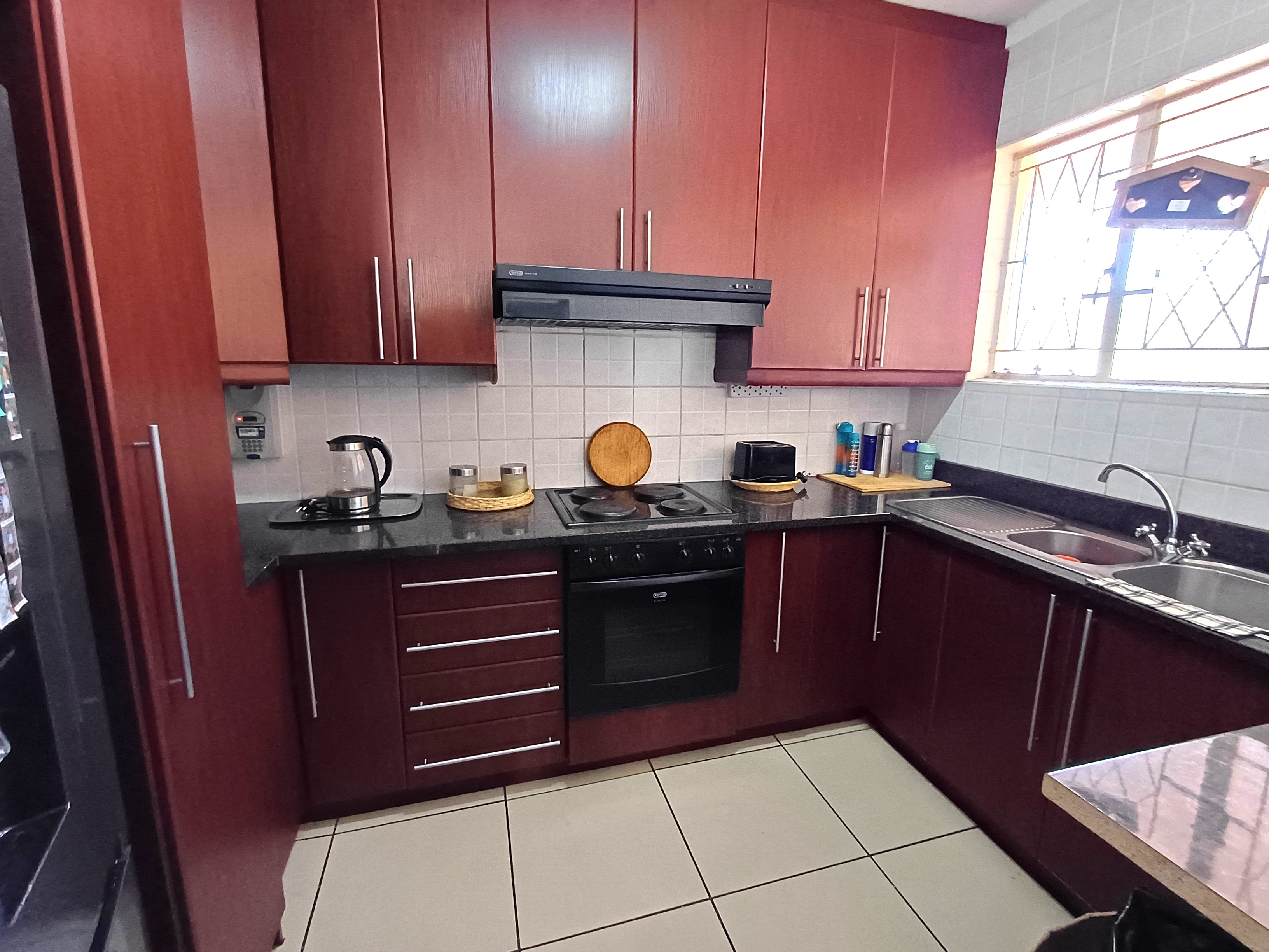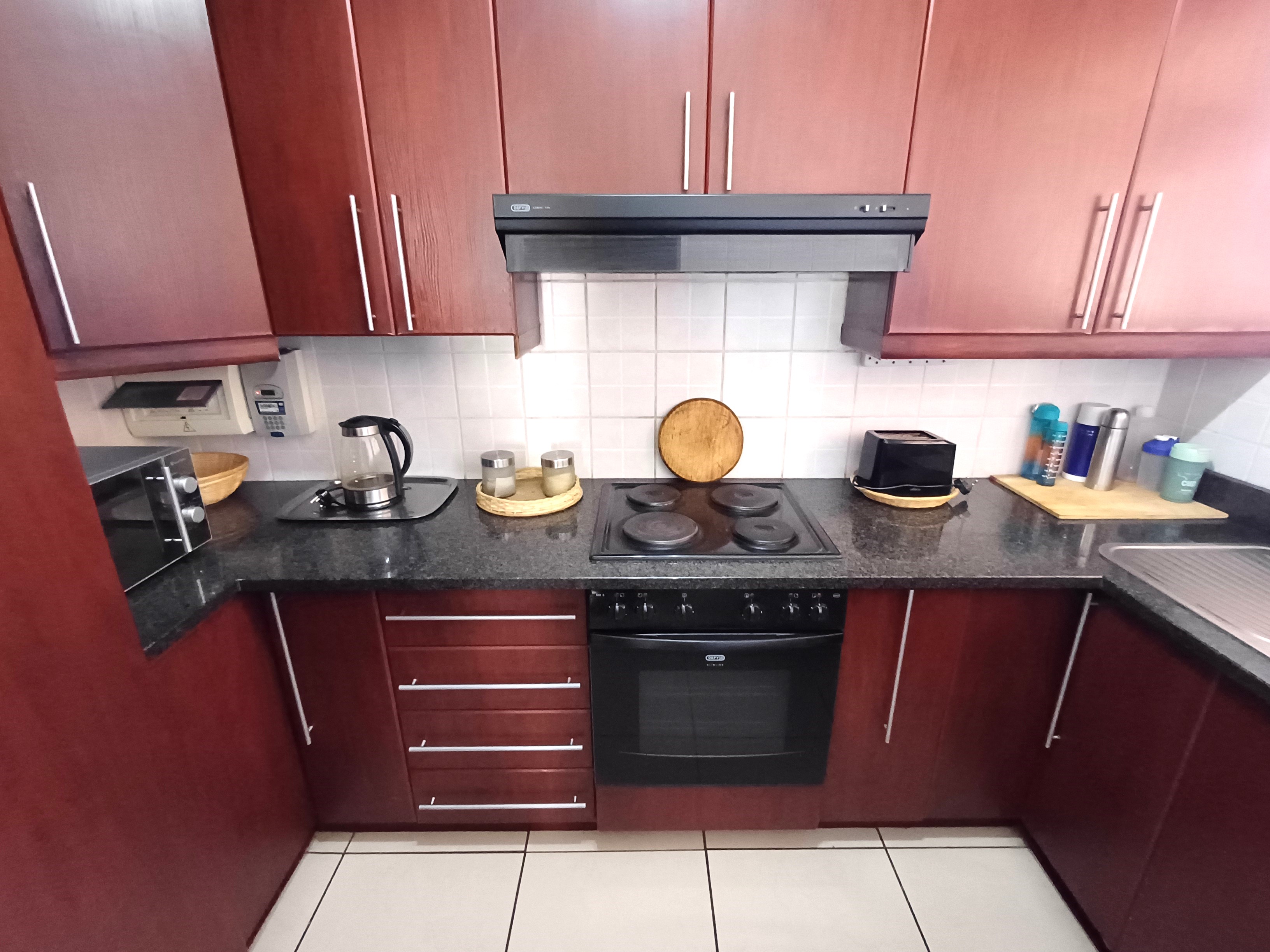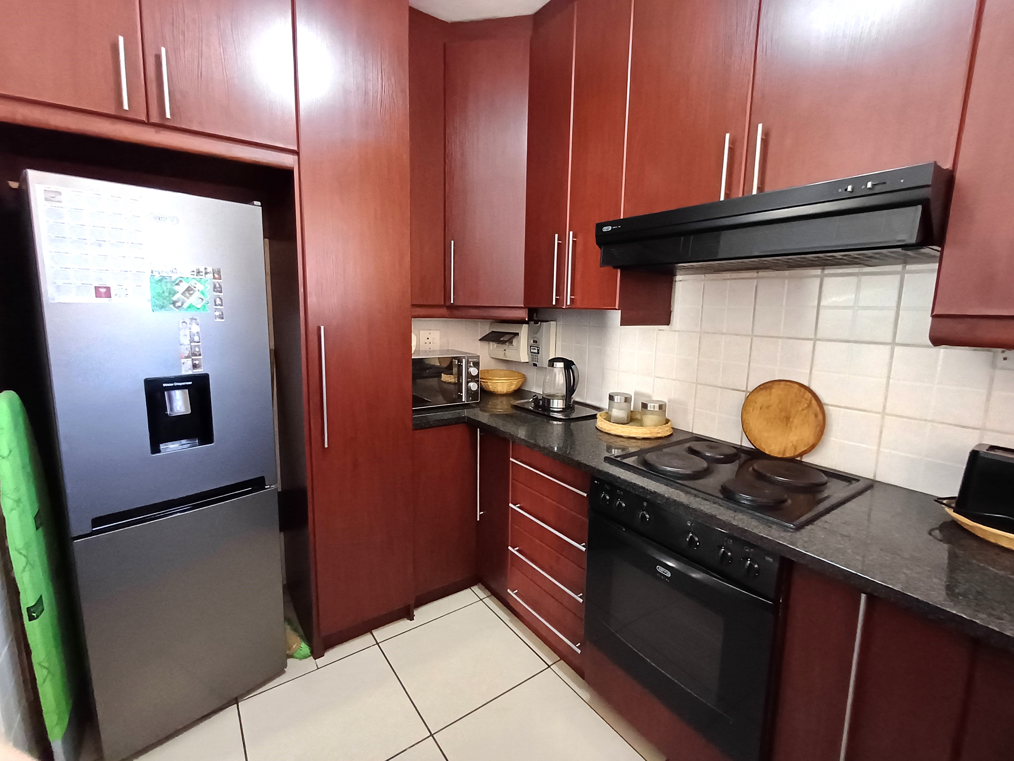 The unit features two spacious bedrooms, both fitted with built-in cupboards and ceiling fans. A large lounge flows seamlessly onto a private balcony. The beautiful modern kitchen is equipped with ample cupboard space and quality finishes. Bathroom with bath, toilet & basin.