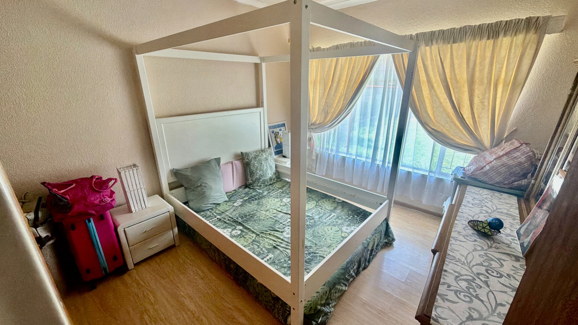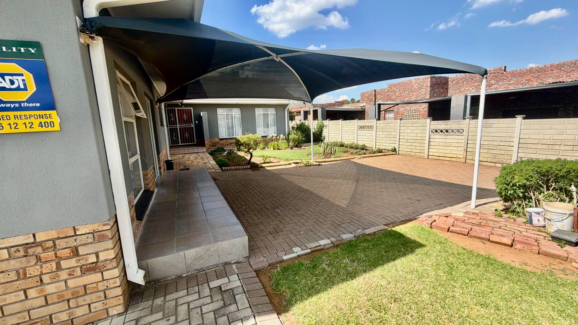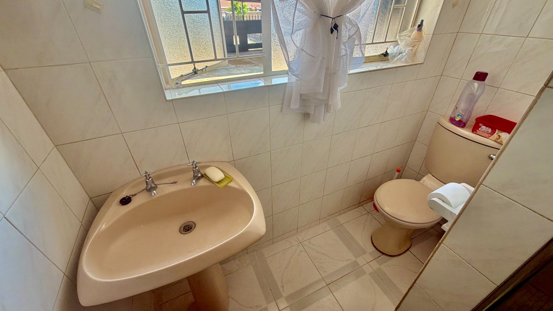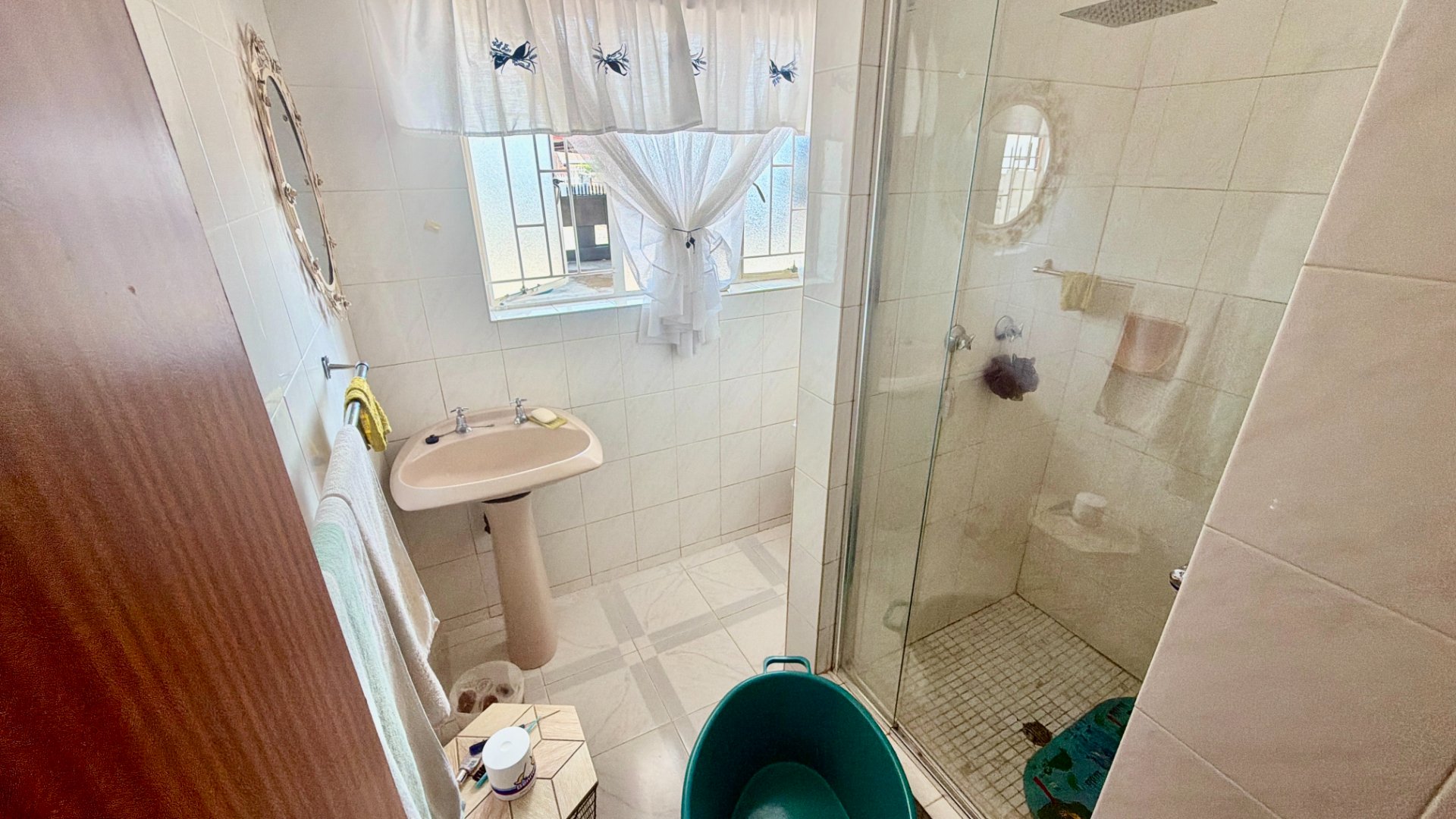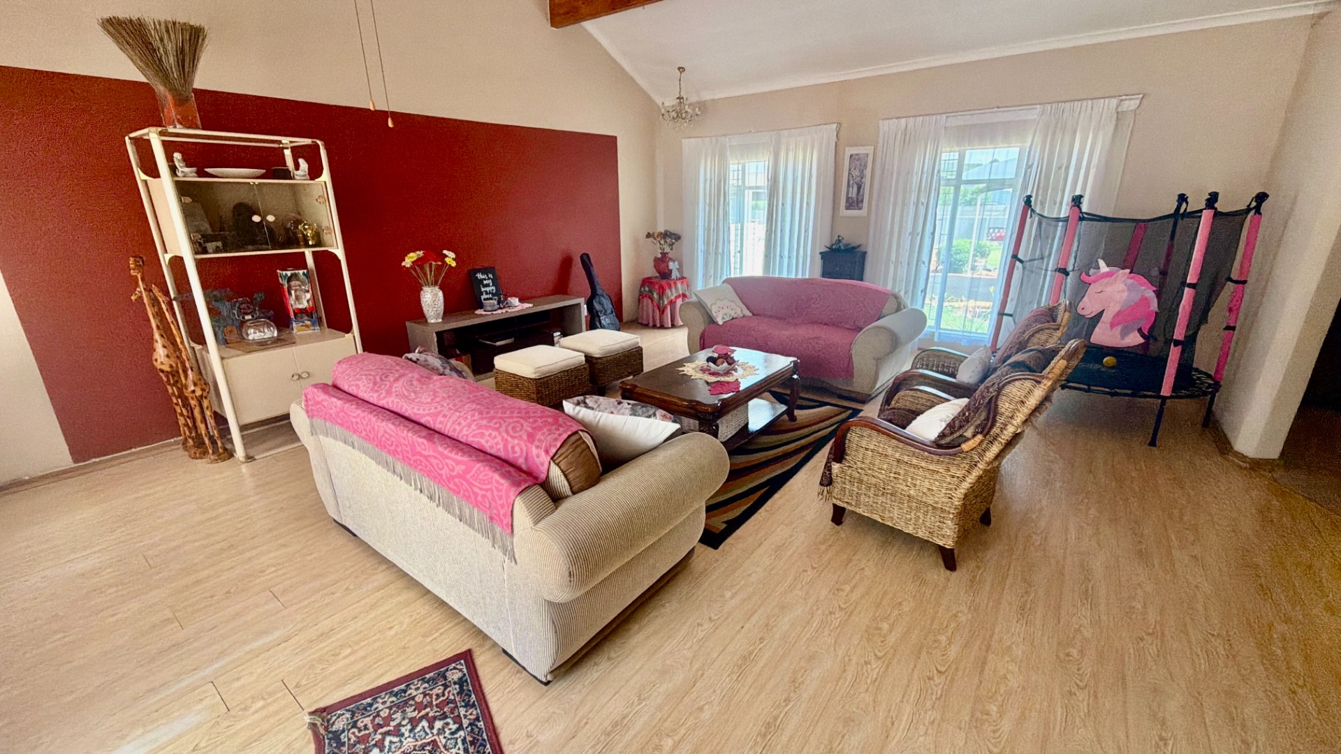 The main house features three spacious bedrooms, all fitted with laminated flooring and built-in cupboards. There are two neat bathrooms and a very spacious open-plan kitchen and dining area, flowing seamlessly into an equally spacious living room. The home is neatly painted and exceptionally well looked after, creating a warm and welcoming atmosphere throughout.